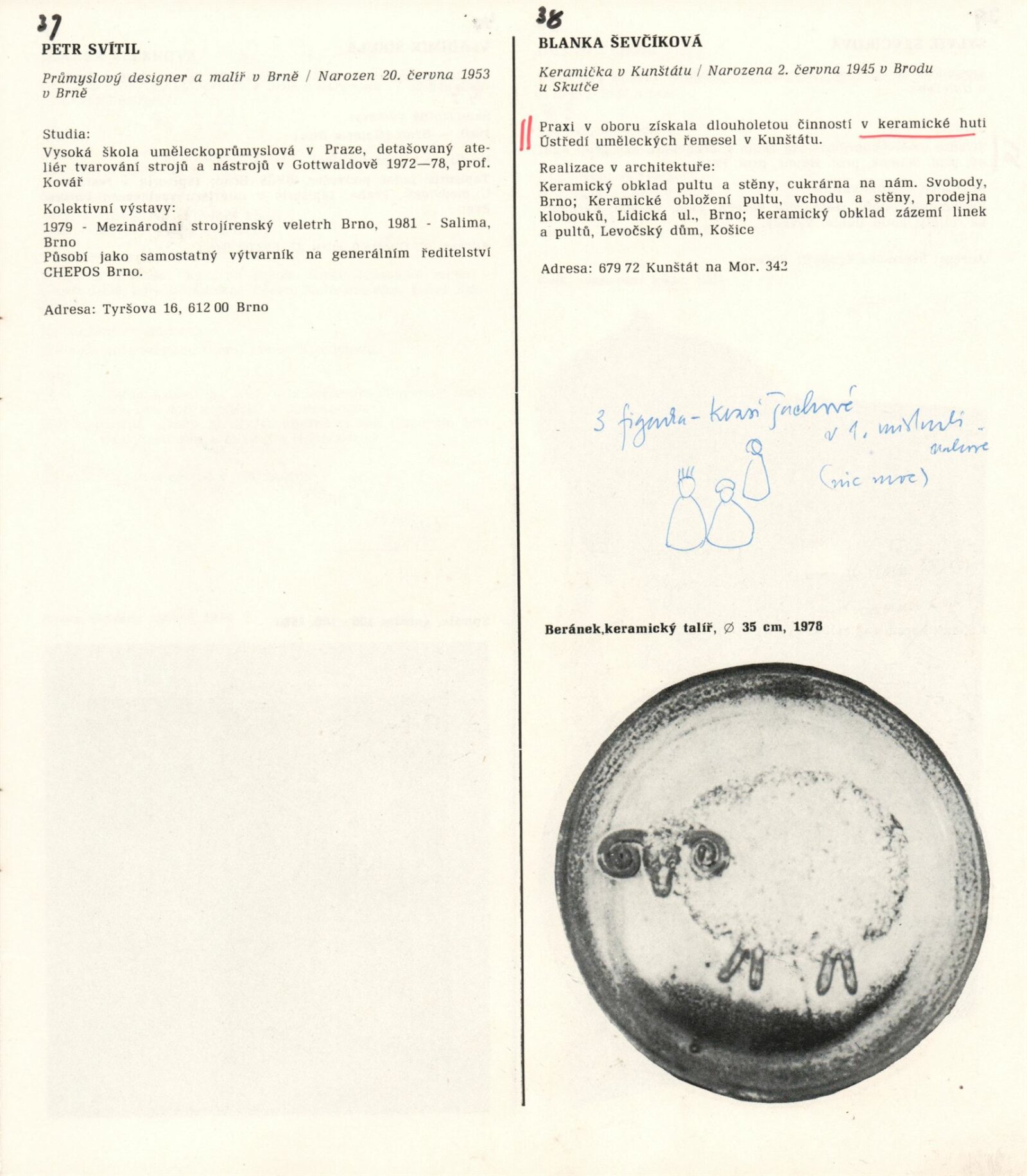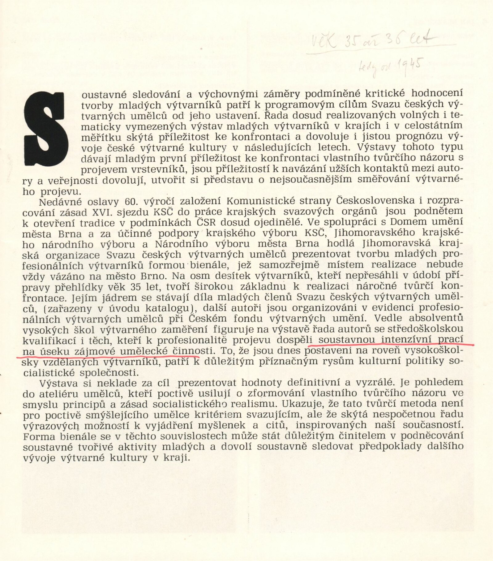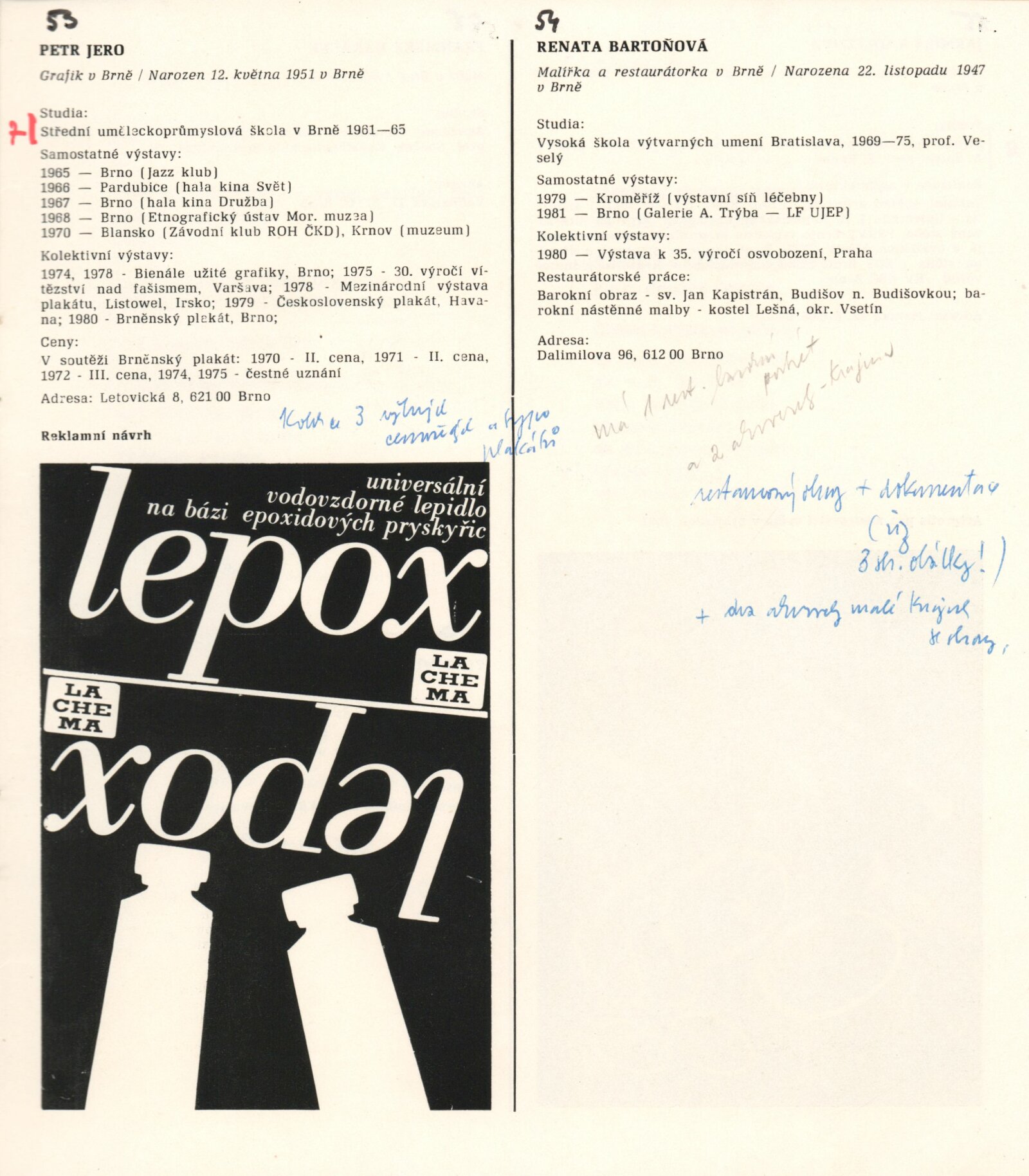 pozvánka na výstavu a pořad Hudba mezi obrazy, katalog (s poznámkami Igora Zhoře), podmínky a přihláška na bienále, básně, seznamy děl, seznam výtvarníků do 35 let v Jihomoravském kraji, provozní korespondence (SČVU), žádost o povolení výstavy, dopis ředitele DU výboru KO SČVU, recenze v tisku, propagační materiál k výstavě v Pavlově