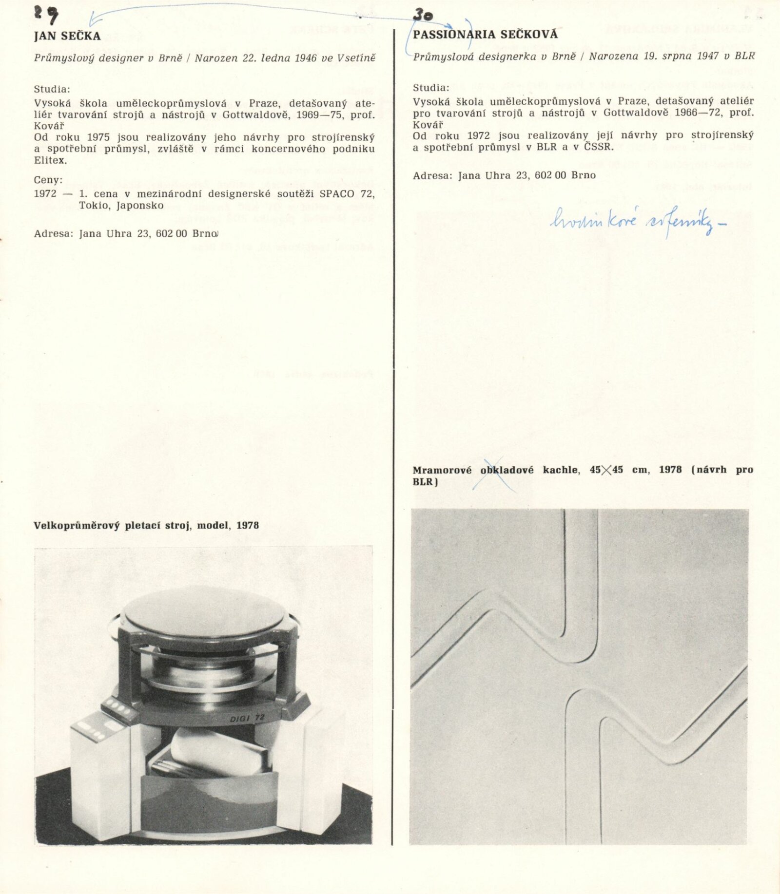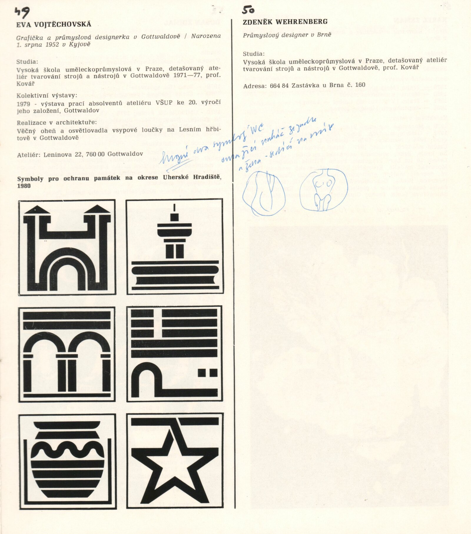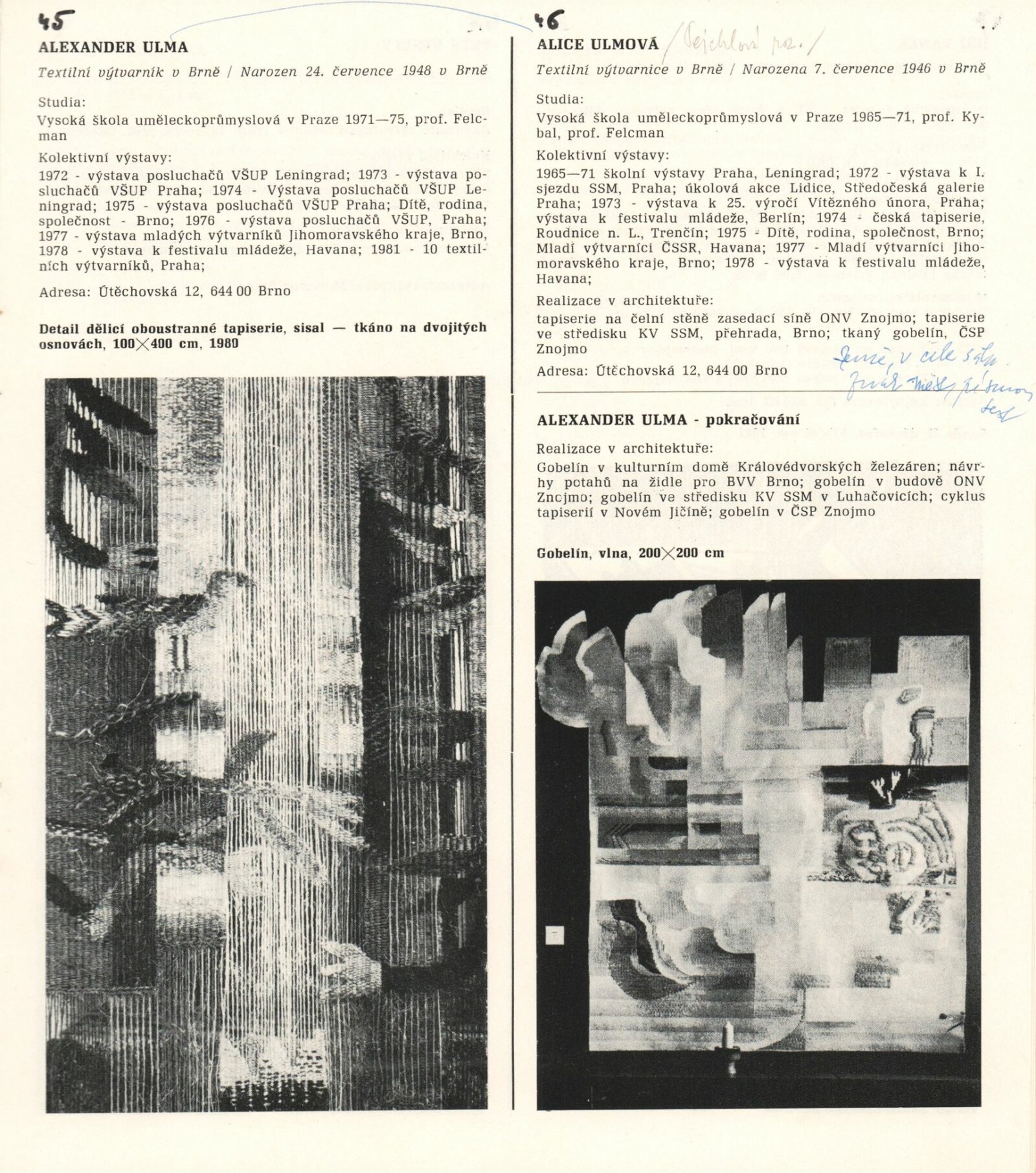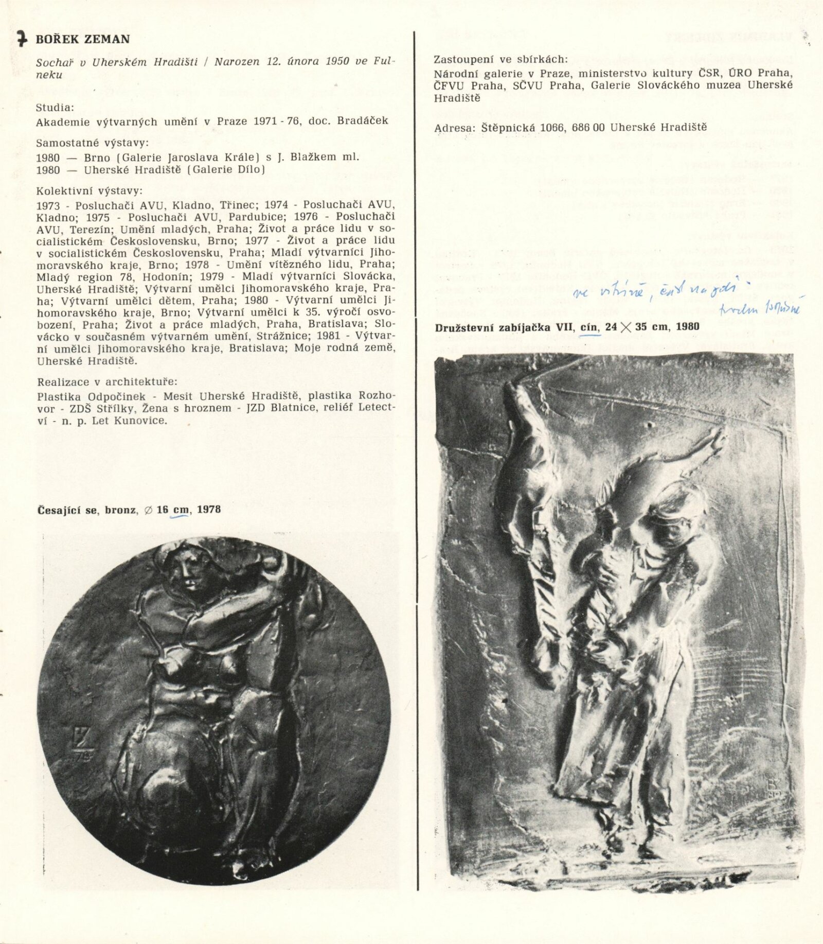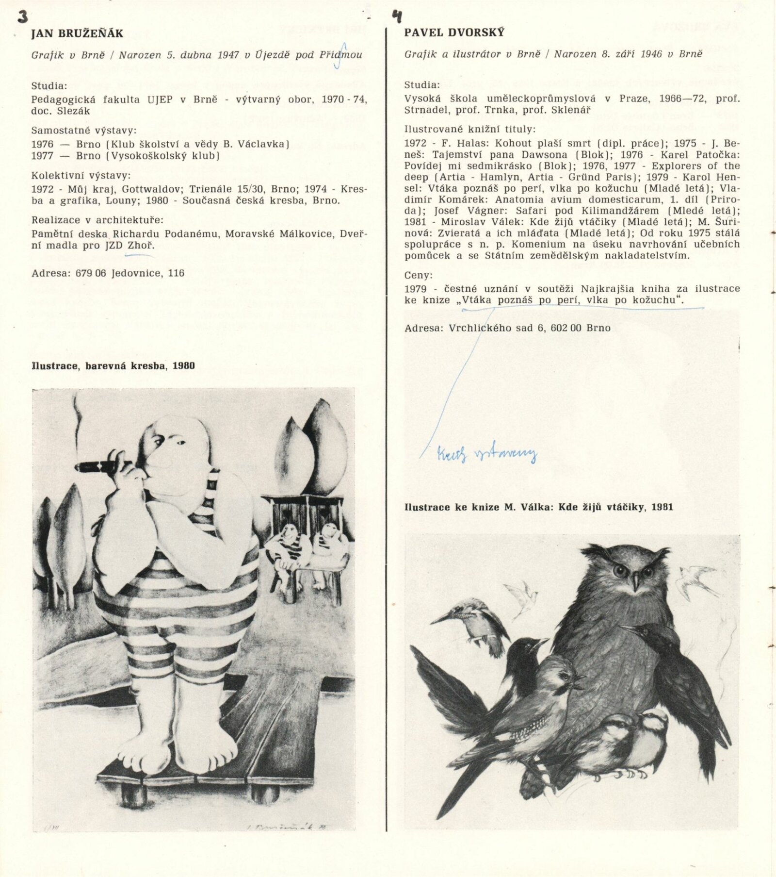 1. Bienále tvorby mladých výtvarníku jihomoravského kraje: Dům umění města Brna 5. 7. – 2. 3. 1981 / Text Zdeněk Čubrda. – Brno: DUmB, 1981. – 40 s., obr., životní data vystavujících, DU 732. – MZK; MG