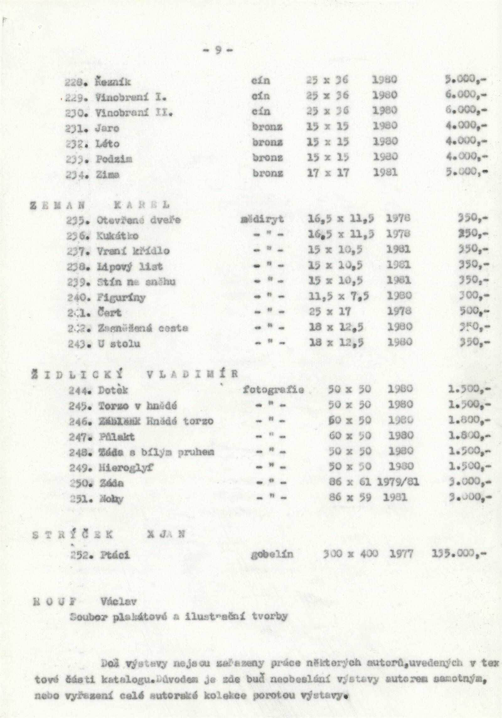 Výstavu uvedl Zdeněk Čubrda. Obrazy Pavla Luffera zřejmě byly vystaveny, ale katalog je nezahrnuje.