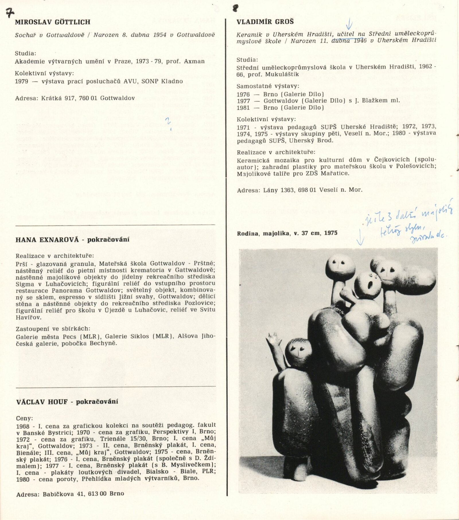Renata Bartoňová, Jan Blažek ml., Jan Brož, Eva Brožová, Jiří Brtnický, Jan Bružeňák, Pavel Dvorský, Jiří Eliška, Hana Exnarová, Miroslav Göttlich, Vladimír Groš, František Hanáček, Jiří Havlíček, Václav Houf, Zdenka Höhmová, Petr Jedlička, Petr Jero, Arnoštka Juračková, Jarmila Kadlecová, Jaromíra Knoblochová, Karel Kobosil, Vladimír Kokolia, Miroslav Kovářík, Pavel Kryl, Jaroslava Lázníčková-Velebová, Dana Marková, Zdeněk Matyáš, Tomáš Měšťánek, Boris Mysliveček, Otakar Nesvadba, Antonín Nový, Marie Plotěná, Zdeněk Pokorný, Jan Rajlich ml., Oldřich Rujbr, Zdeněk Řehořík, Jan Sečka, Passionaria Sečková, Vladimíra Sedláková, Petr Schenk, Václav Skořepa, Jiří Sobotka, Jan T. Strýček, Jiřina Strýčková, Petr Svítil, Blanka Ševčíková, Sylvie Ševčíková, Vladimír Šikula, Blanka Šperková, Dušan Tejkal, Oldřich Toman, Jarmila Tvrzníková, Alexander Ulma, Alice Ulmová, Jiří Vaněk, Pavel Vavrys, Petr Veselý, Jiří Vlach, Eva Vojtěchovská, Zdeněk Wehrenberg, Saša Zahradník, Bořek Zeman, Karel Zeman, Dušan Ždímal, Vladimír Židlický