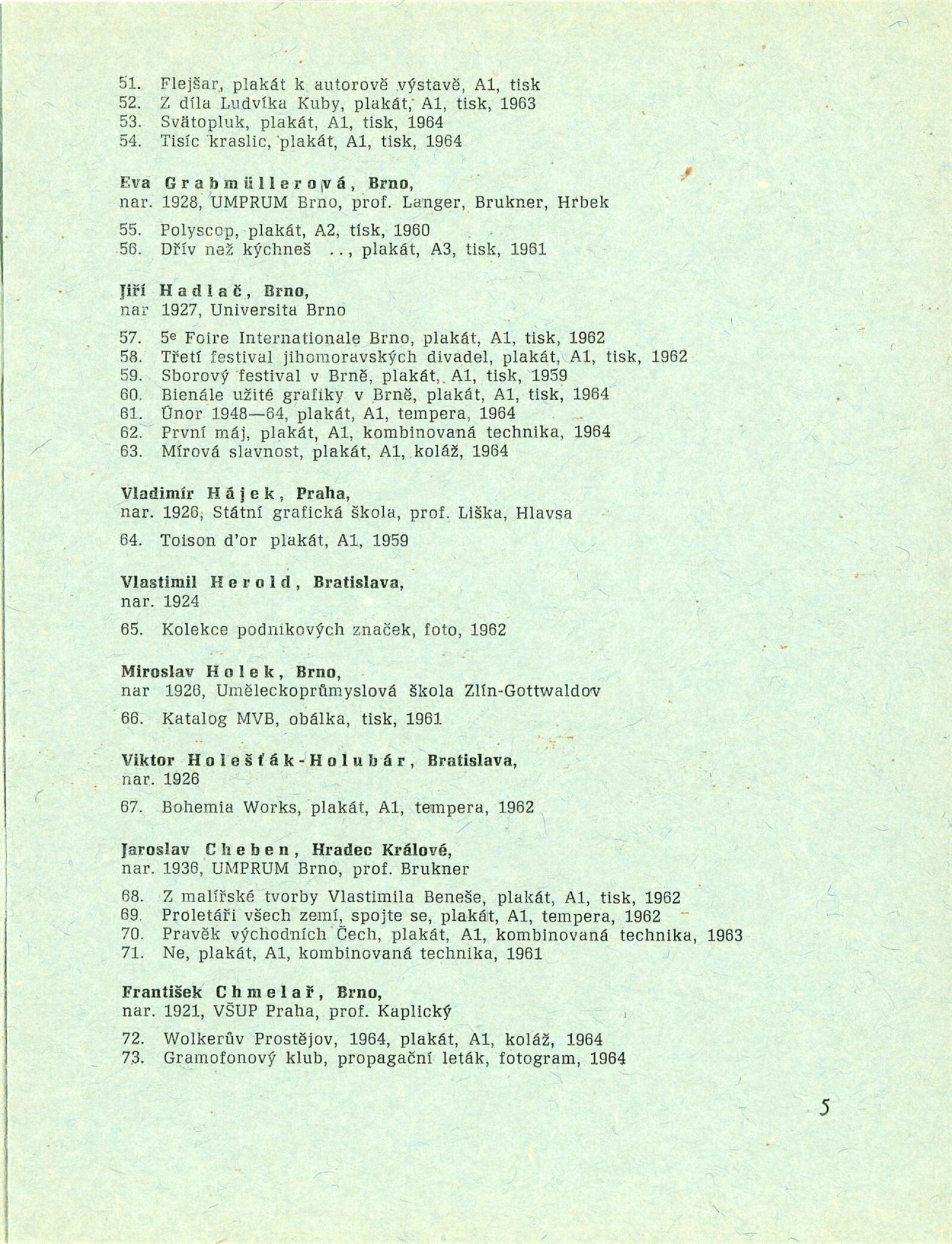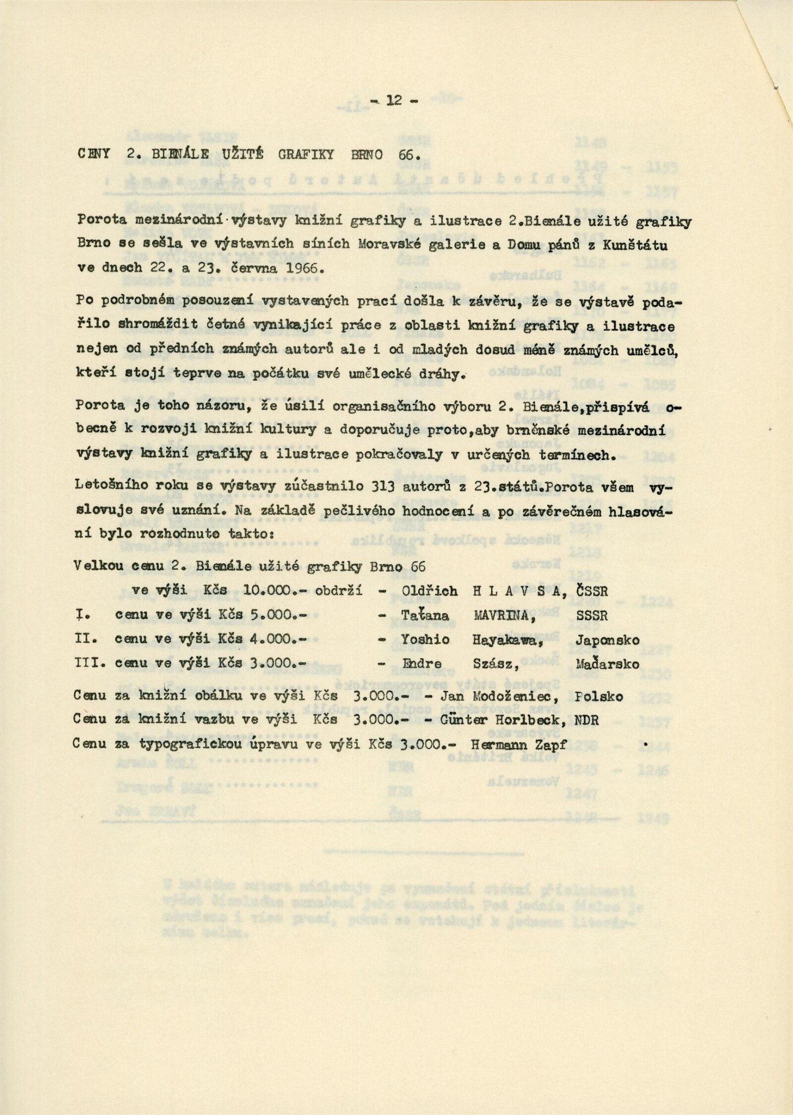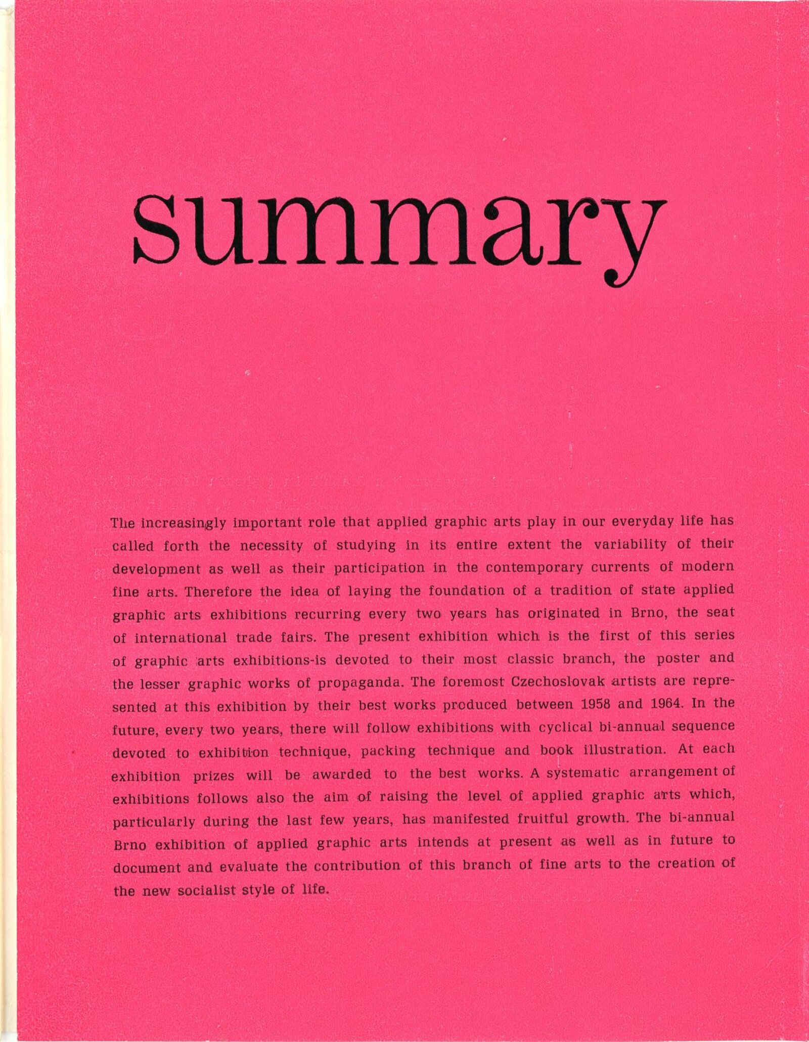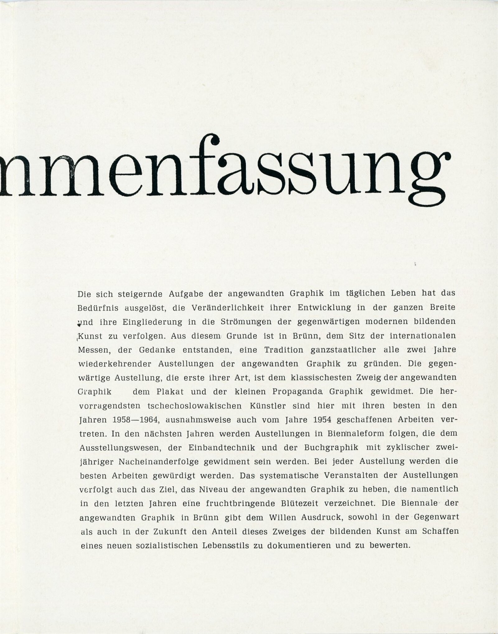 Mezinárodní výstava knižní grafiky a ilustrace. 2. bienále užité grafiky Brno 1966: Dům umění města Brna / Dům pánů z Kunštátu, Moravská galerie v Brně, 24. 6. – 20. 9. 1966 / Texty: Josef Grohman, Jiří Hlušička. – Brno: SČSVU, 1966. – 128 s., 136 s. obr. příl., skládačka, 6 s., název a text též francouzsky, DPK 310. – MZK