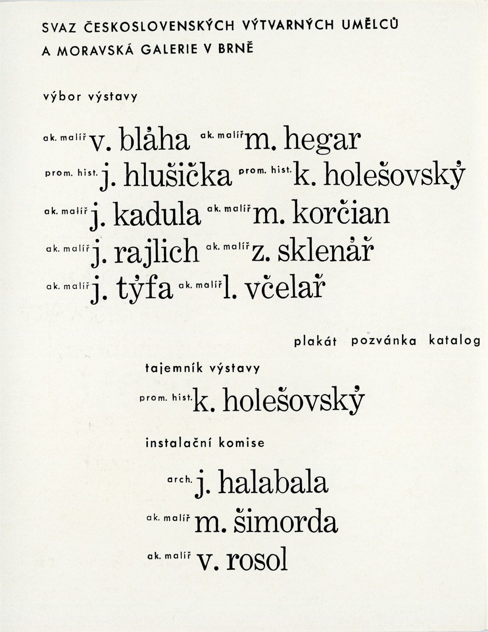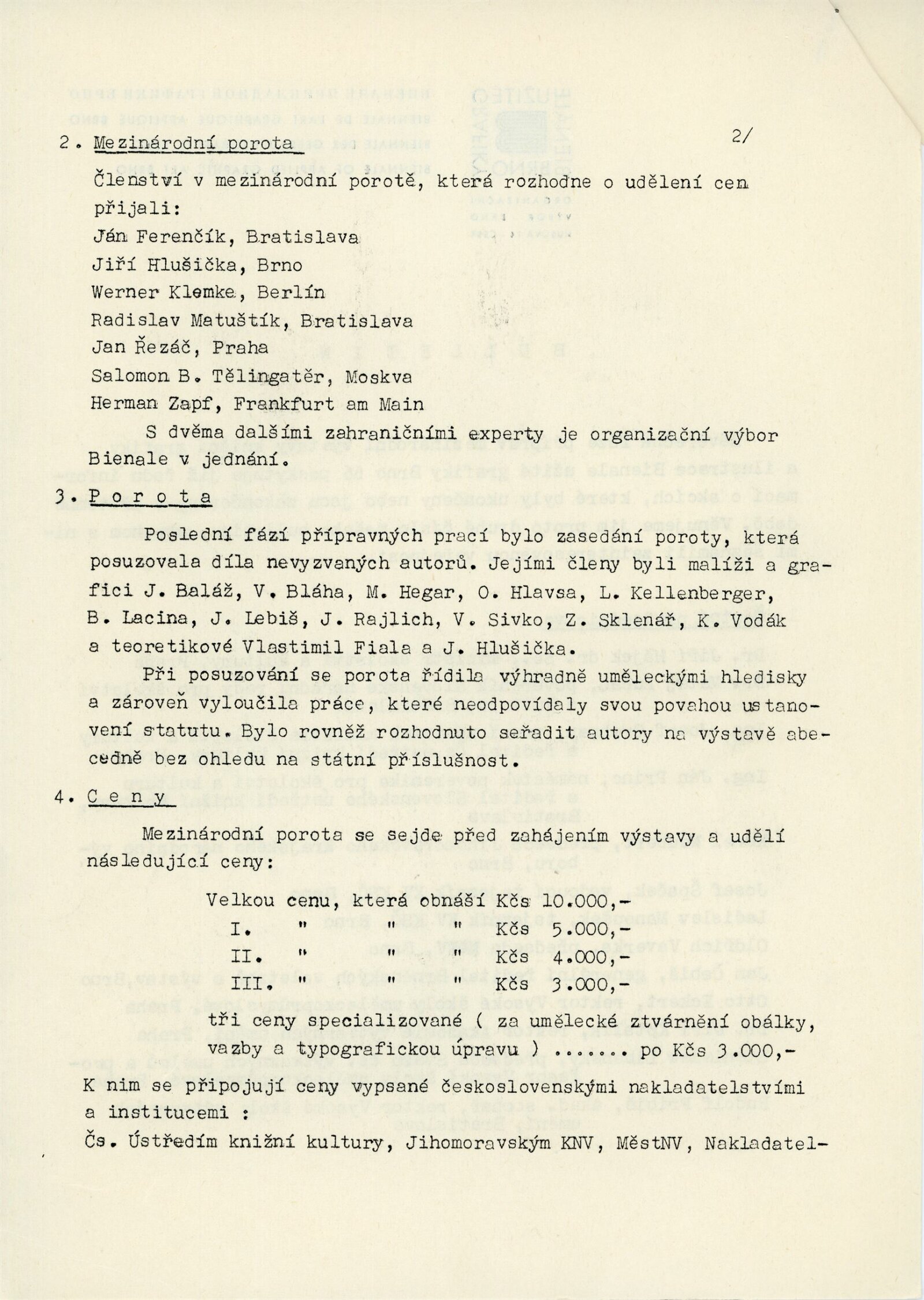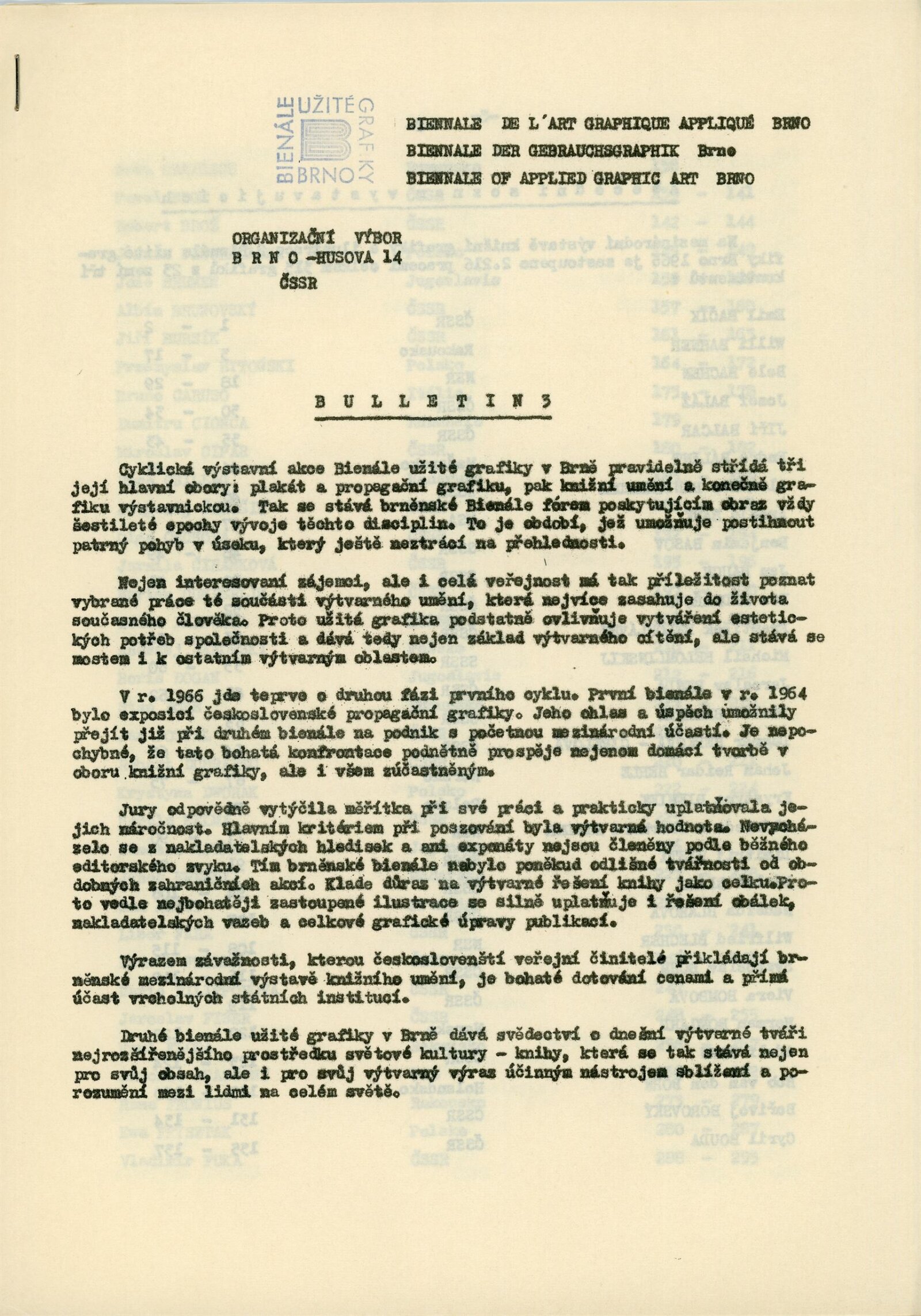 pozvánka, katalog, plakát, bulletin, zápisy ze schůzí přípravného výboru, provozní korespondence, recenze v tisku