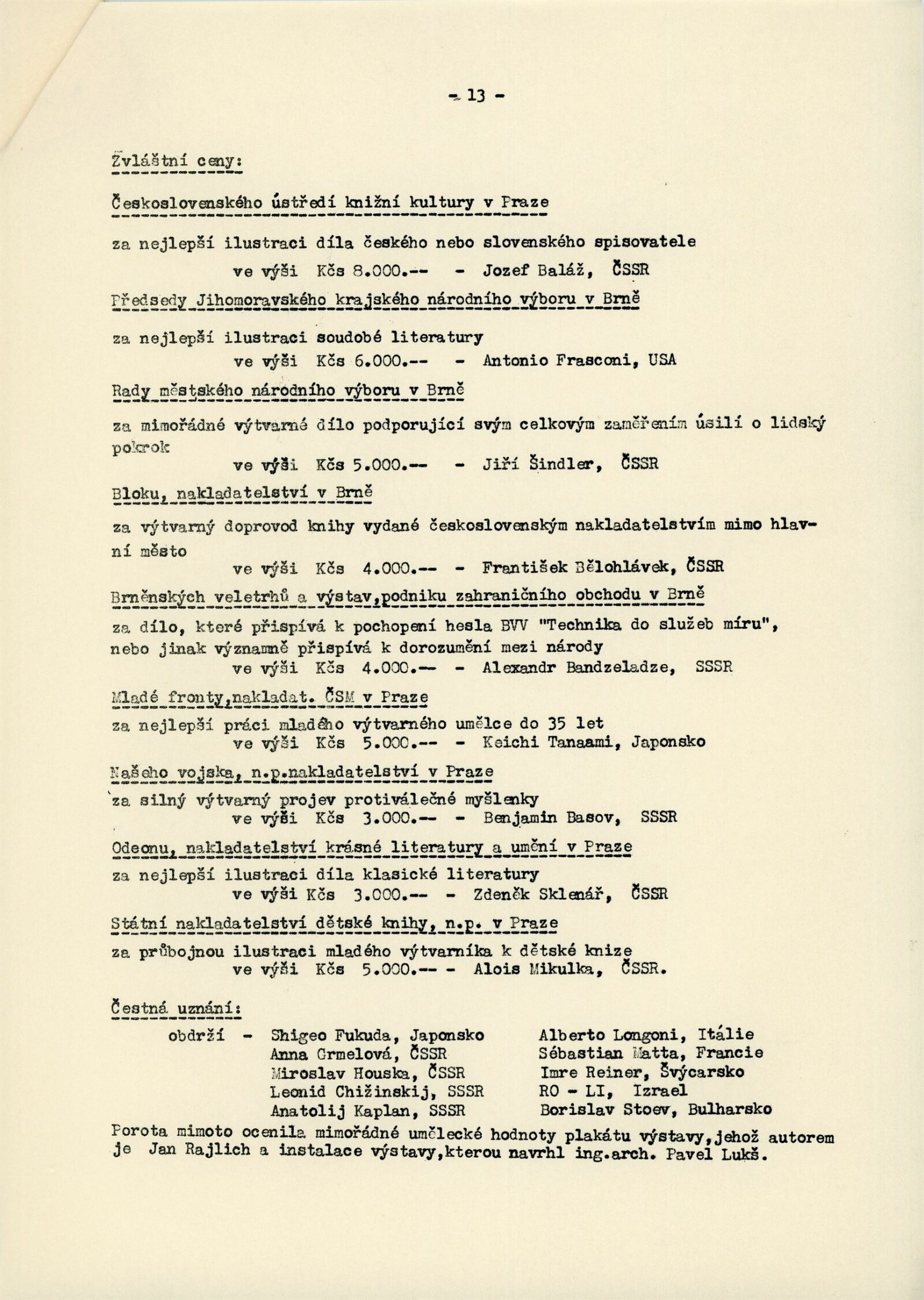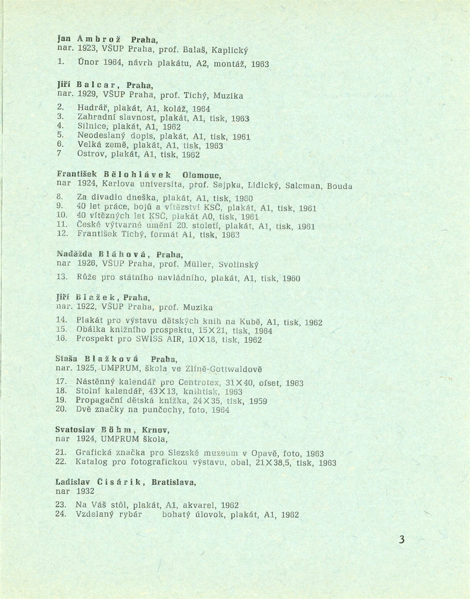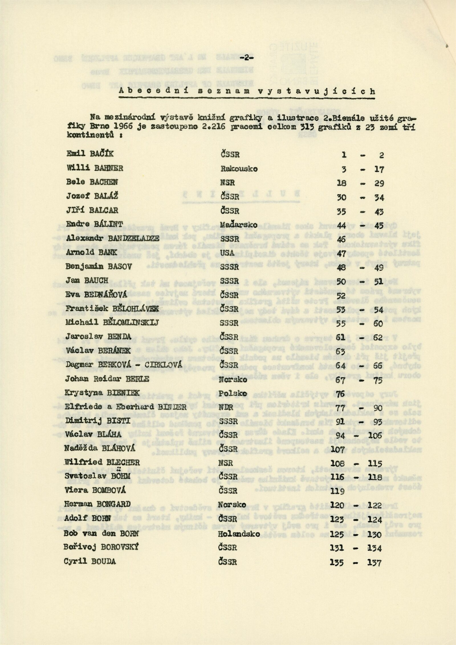 pozvánka, katalog, plakát, bulletin, zápisy ze schůzí přípravného výboru, provozní korespondence, recenze v tisku
