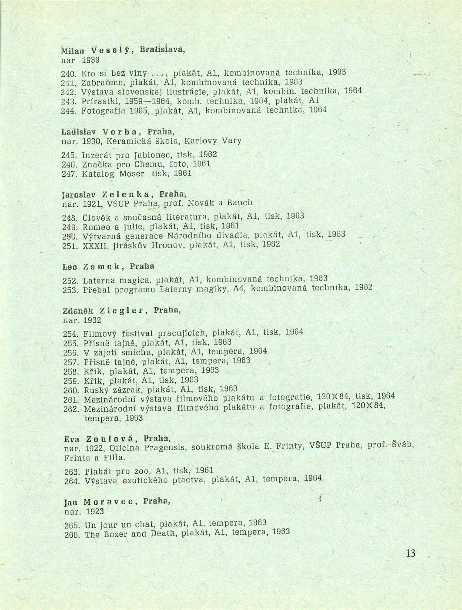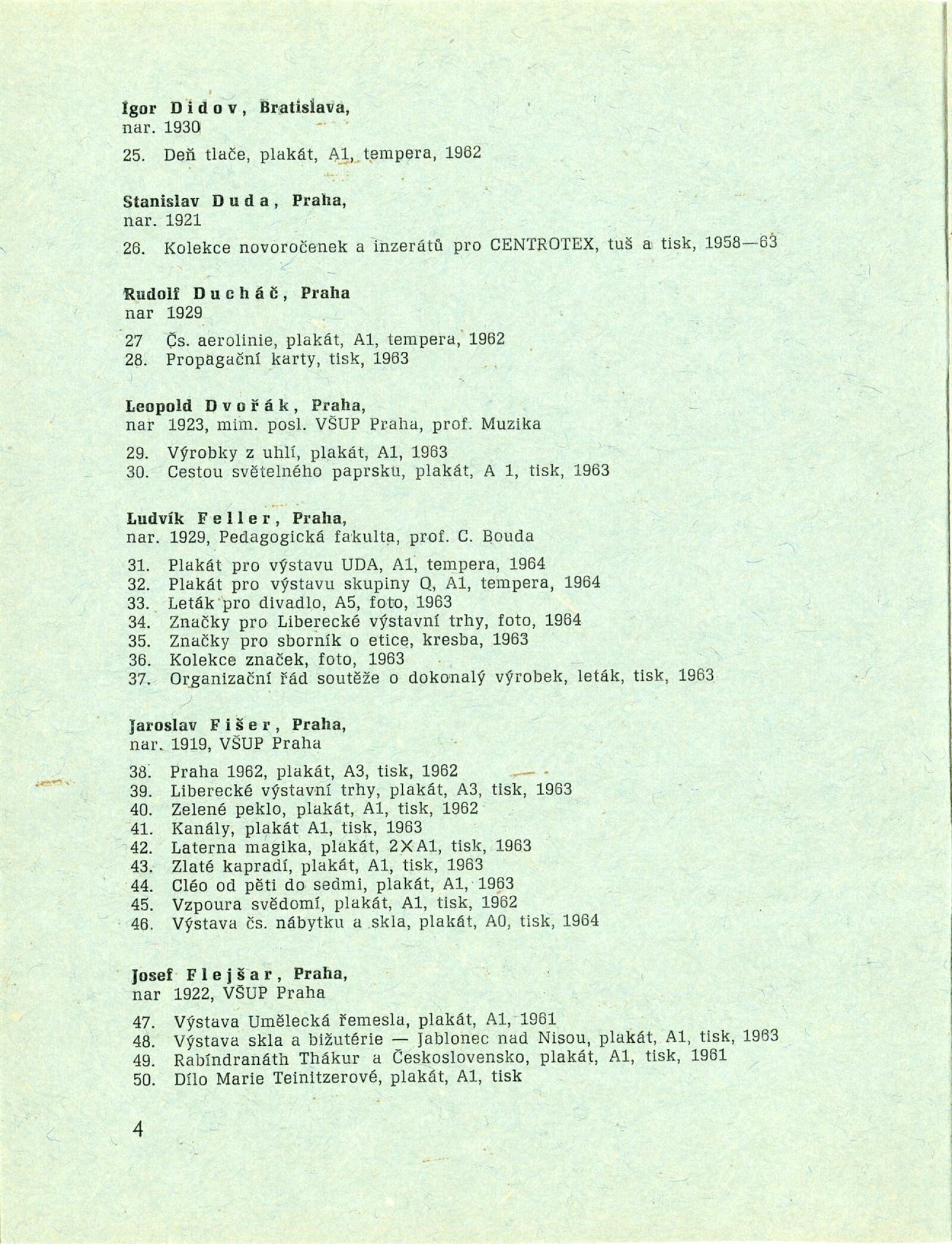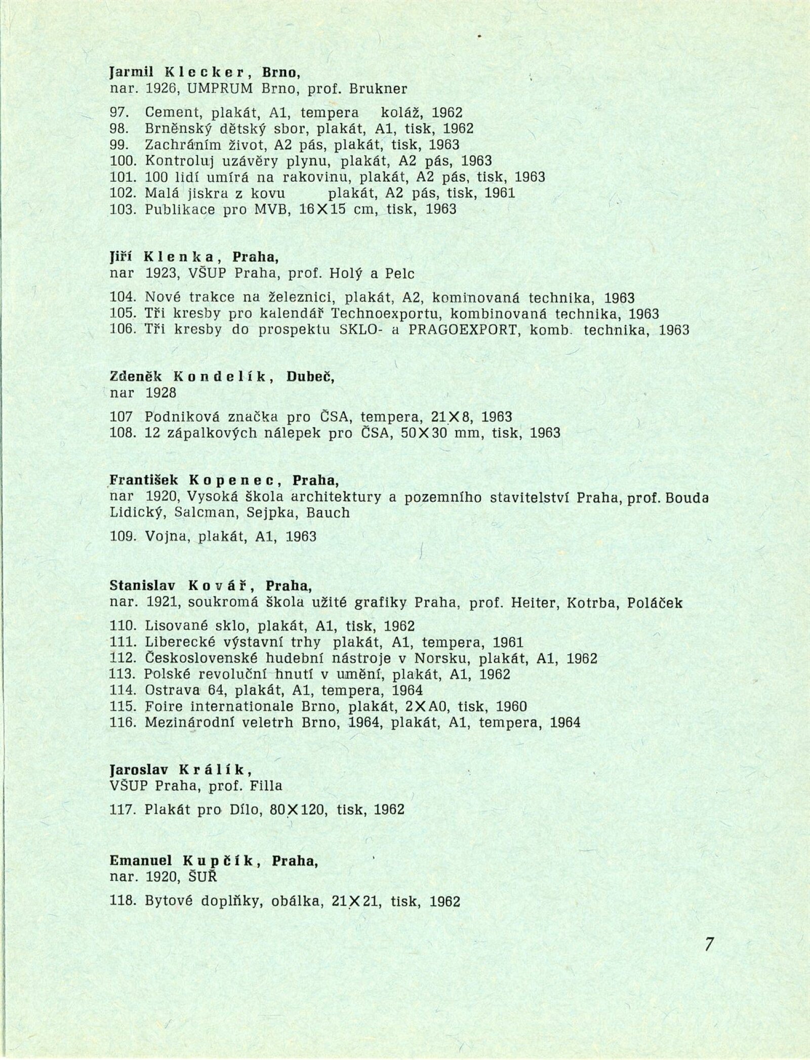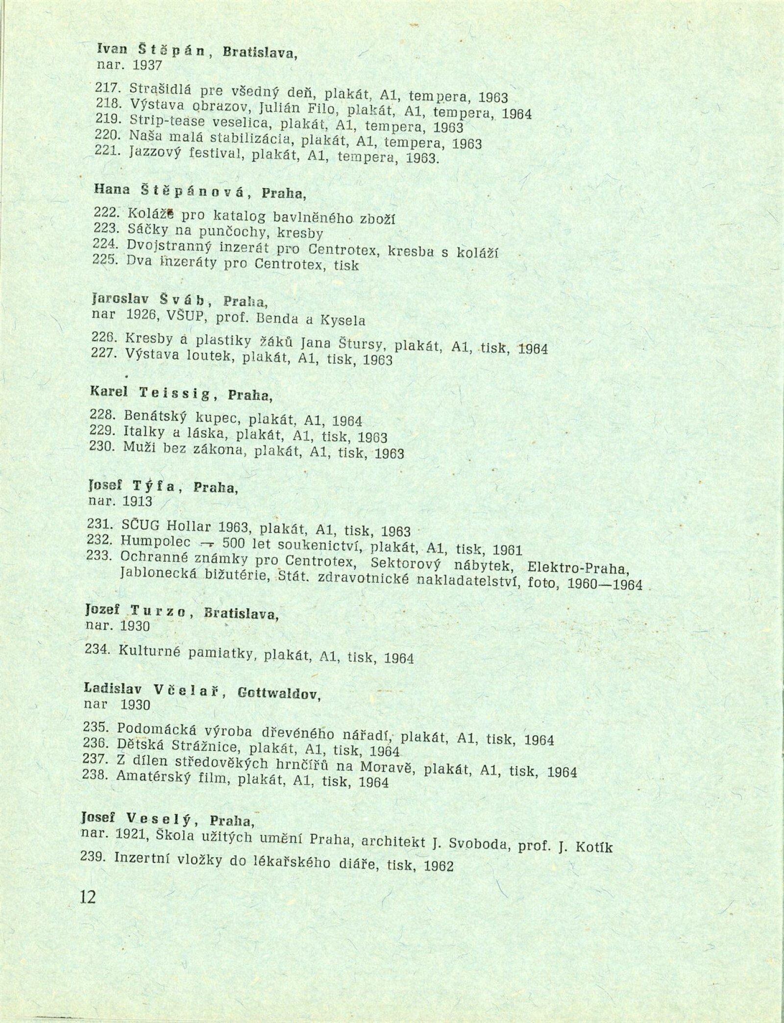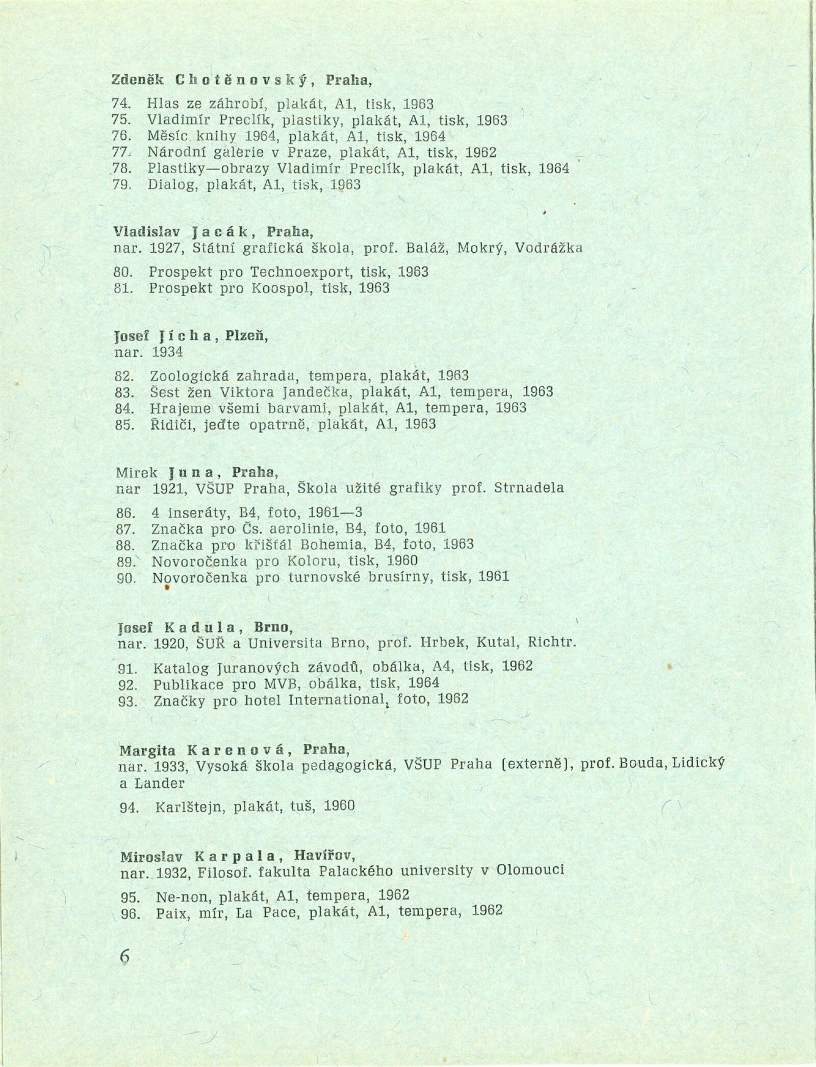 Jan Ambrož, Jiří Balcar, František Bělohlávek, Naděžda Bláhová, Jiří Blažek, Staša Blažková, Svatoslav Böhm, Ladislav Čisárik, Igor Didov, Stanislav Duda, Rudolf Ducháč, Leopold Dvořák, Ludvík Feller, Jaroslav Fišer, Josef Flejšar, Eva Grabmüllerová, Jiří Hadlač, Vladimír Hájek, Vlastimil Herold, Miroslav Holek, Viktor Holešťák-Holubár, Jaroslav Cheben, František Chmelař, Zdeněk Chotěnovský, Vladislav Jacák, Josef Jícha, Mirek Juna, Josef Kadula, Margita Karenová, Miroslav Karpala, Jarmil Klecker, Jiří Klenka, Zdeněk Kondelík, František Kopenec, Stanislav Kovář, Jaroslav Králík, Emanuel Kupčík, Václav Kůs, Milan Mejstřík, Hermína Melicharová, Karel Míšek, Dora Nováková, Věra Nováková, Boris Nosek, Václav Pata, Čestmír Pechr, Karel Pekárek, Feodor Petrikovský, Adolf Pražský, Jan Rajlich, Jiří Rathouský, Miloš Reindl, Aloiz Riškovič, Vladimír Rosol, Jaroslav Rothbauer, V. B. Růžička, Václav Rykr, Wolfgang A. Schlosser, Zdeněk Světlík, Jaroslav Sůra, Miroslav Šimorda, Břetislav Šebek, Jaroslav Šťastný, Ivan Štěpán, Hana Štěpánová, Jaroslav Šváb, Karel Teissig, Josef Týfa, Jozef Turzo, Ladislav Včelař, Josef Veselý, Milan Veselý, Ladislav Vorba, Jaroslav Zelenka, Leo Zemek, Zdeněk Ziegler, Eva Zoulová, Jan Moravec, Vladimír Sobolevič