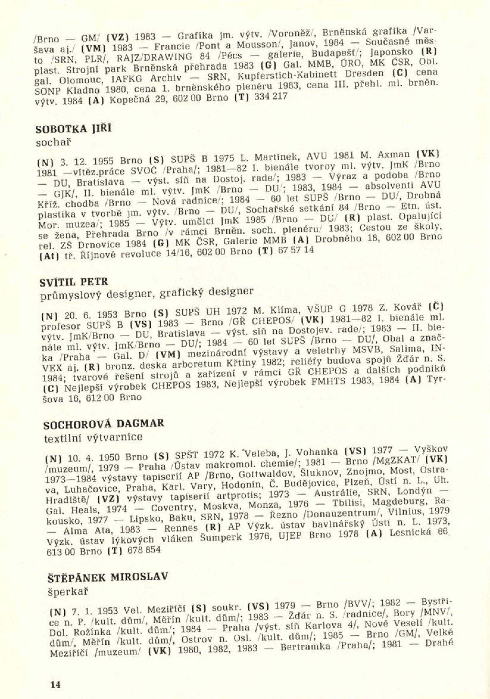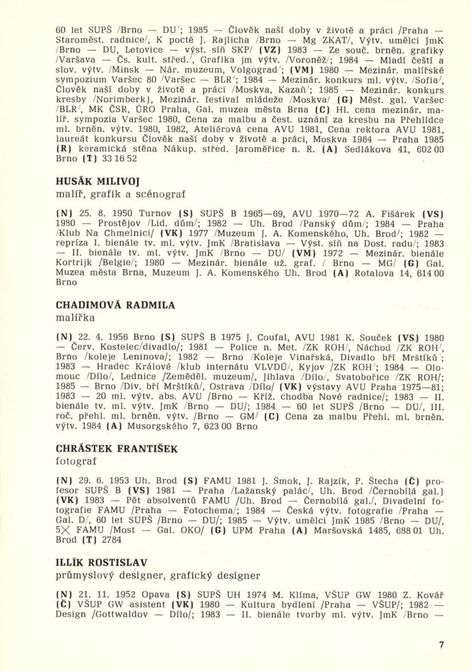 3. bienále tvorby mladých výtvarníků Jihomoravského kraje: Dům umění města Brna 9. 7. – 11. 8. 1985 / Text Zdeněk Čubrda. – Brno: SČVU, 1985. – 61 s., obr., životopisy vystavujících, DU 798. – MZK; MG