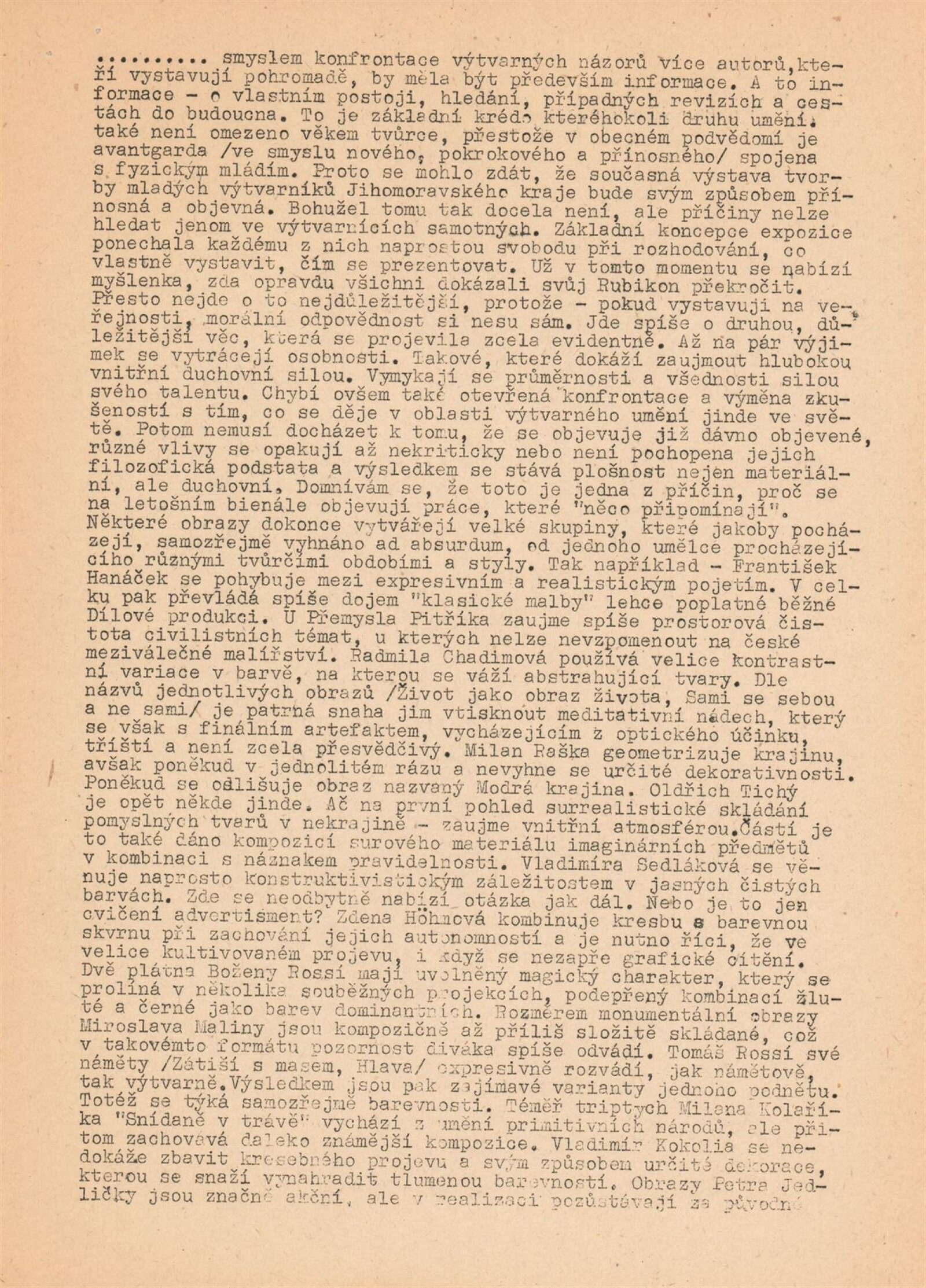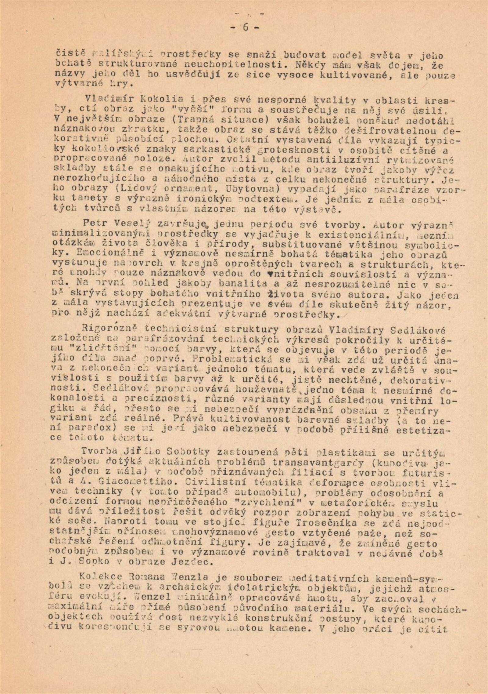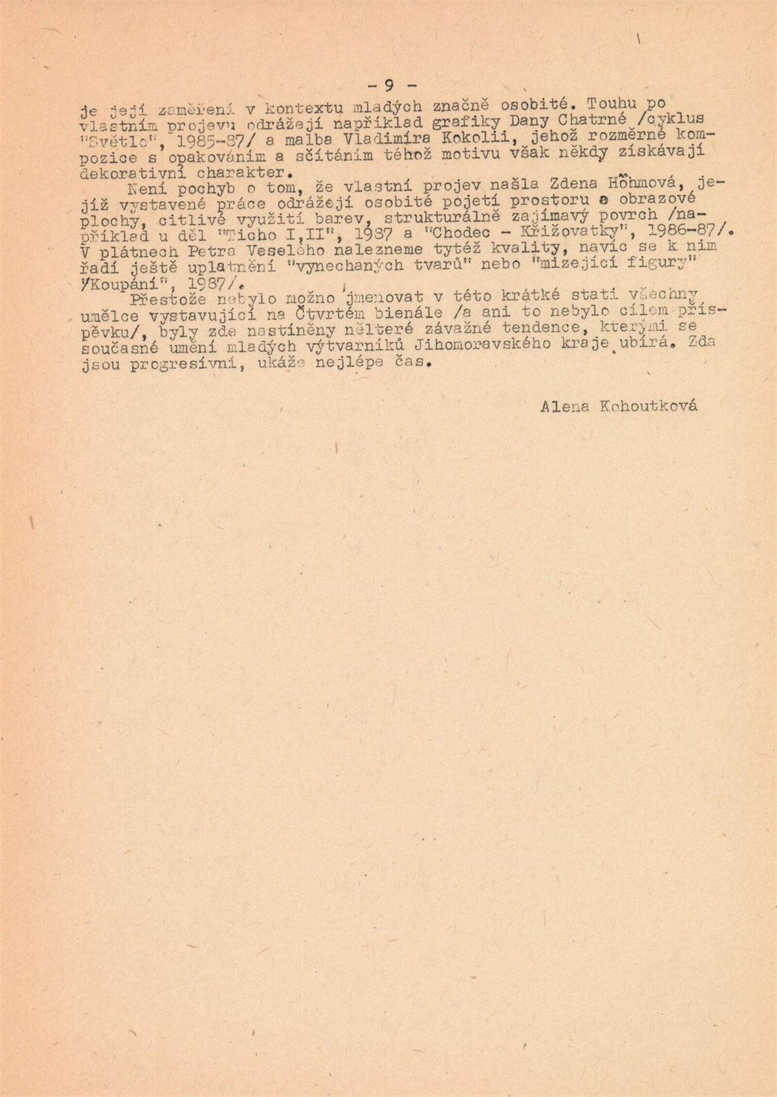 pozvánka, katalog, strojopis, fotografie z vernisáže, seznam vystavených děl, přihlášky na bienále, provozní korespondence, recenze v tisku, pozvánka na výstavu Vladimíra Kokolii v Brně (1989), pozvánka na výstavu Projekt - Slavkov v Historickém muzeu ve Slavkově u Brna (1986)