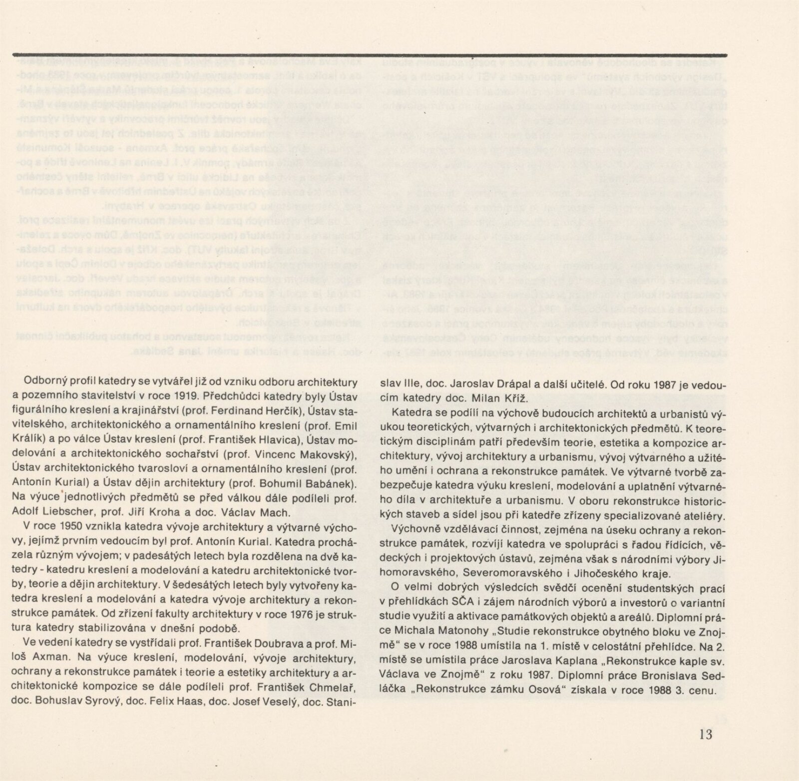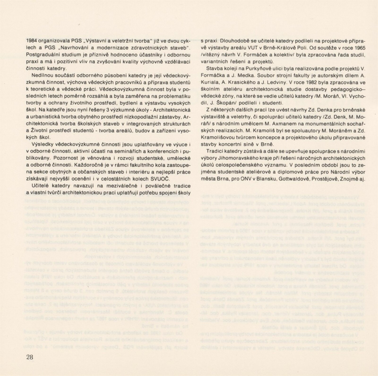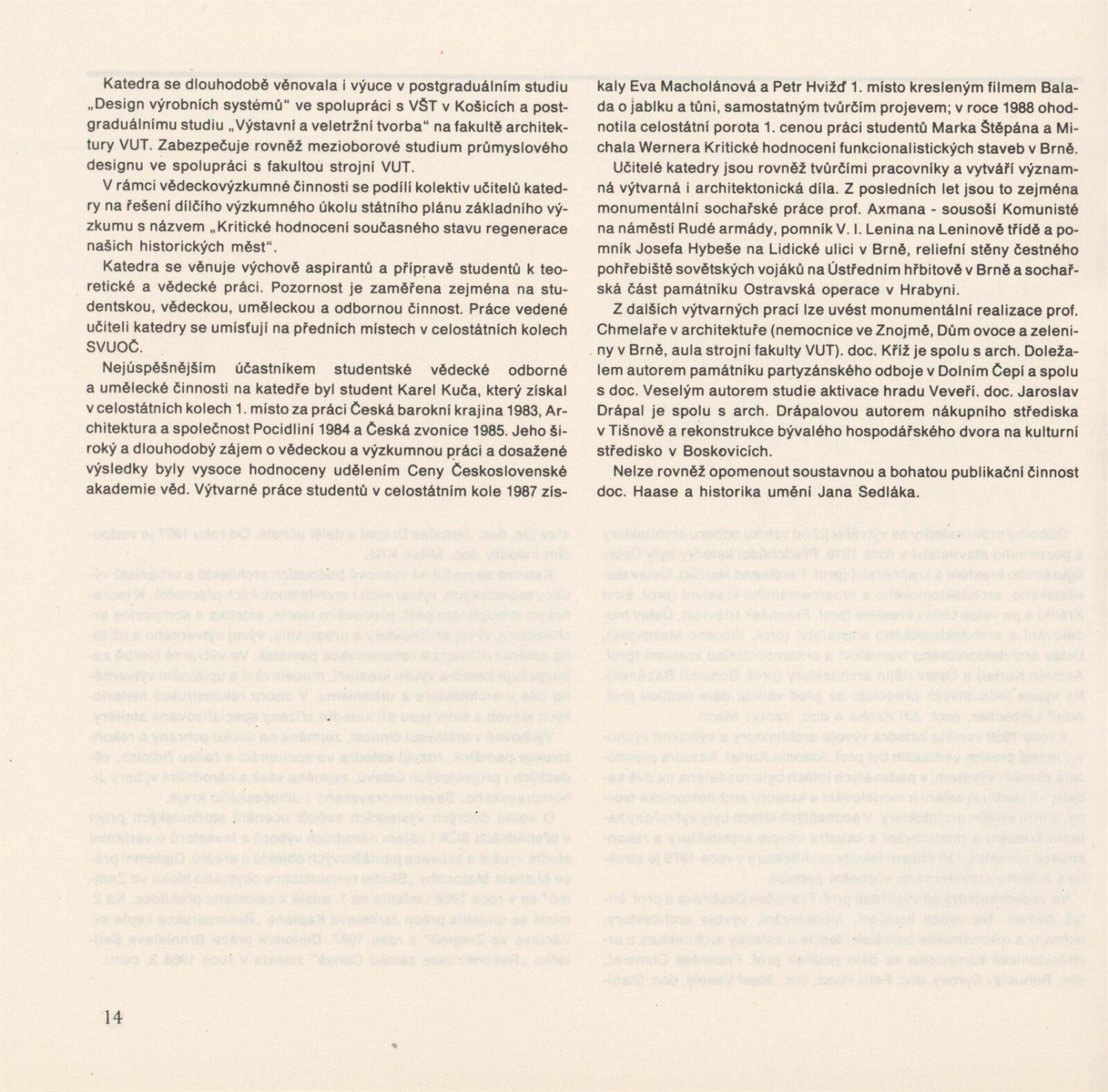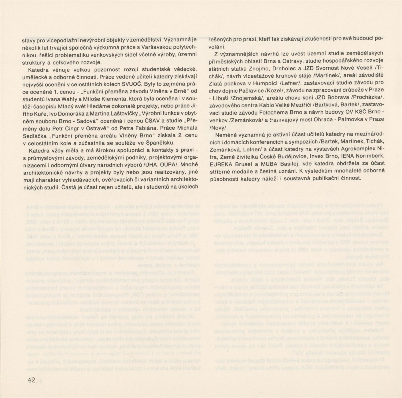 Lenka Auermüllerová, Miloš Axman, Pavla Balabánová, Růžena Bartková, Jan Blažek, Aleš Burian, Bedřich Čelikovský, Tomáš Čevela, Jean Delphine Mouyabi, Zdeněk Denk, Jan Doležal, Jaroslav Drápal, Olga Drápalová, Jiří Fixel, M. Frank, Y. Hawerlandová, Hana Hebnarová, Pavel Hon, Jan Hrubý, P. Hurník, František Chmelař, Stanislav Ille, V. Klimeš, Jaromír Klouda, Václav Kokeš, Miloslav Konvička, Josef Košutek, Jan Koutný, Jaroslav Kozel, Miloš Kramoliš, Zdena Kramolišová, Antonín Krasický, Milan Kříž, Jiří Kubín, Josef Kupka, Jan Kurhajec, Antonín Kurial, Jaroslav Ledvina, Jaroslav Maloch, Vladimír Meduna, Kamila Melichová, Czeslav Mendrek, J. Mišík, Zdeněk Mlčoch, Milan Moráň, Miroslav Petrů, K. Petříková, Oldřich Ponča, M. Puchýř, S. Richter, Anna Rucká, Antonín Řehulka, Josef Sátora, Marie Sedláčková, Rudolf Spáčil, Josef Starý, M. Stoklasa, Petr Stolín, Jiljí Šindlar, Jaroslav Šindler, Jaroslav Škopán, Helena Škrlová, Iva Šustrová, Aleš Valder, Josef Veselý, Eva Vodičková, Jiří Vohralík, Vladimír Vychodil, Jaroslav Vyšinka, Eva Zientková