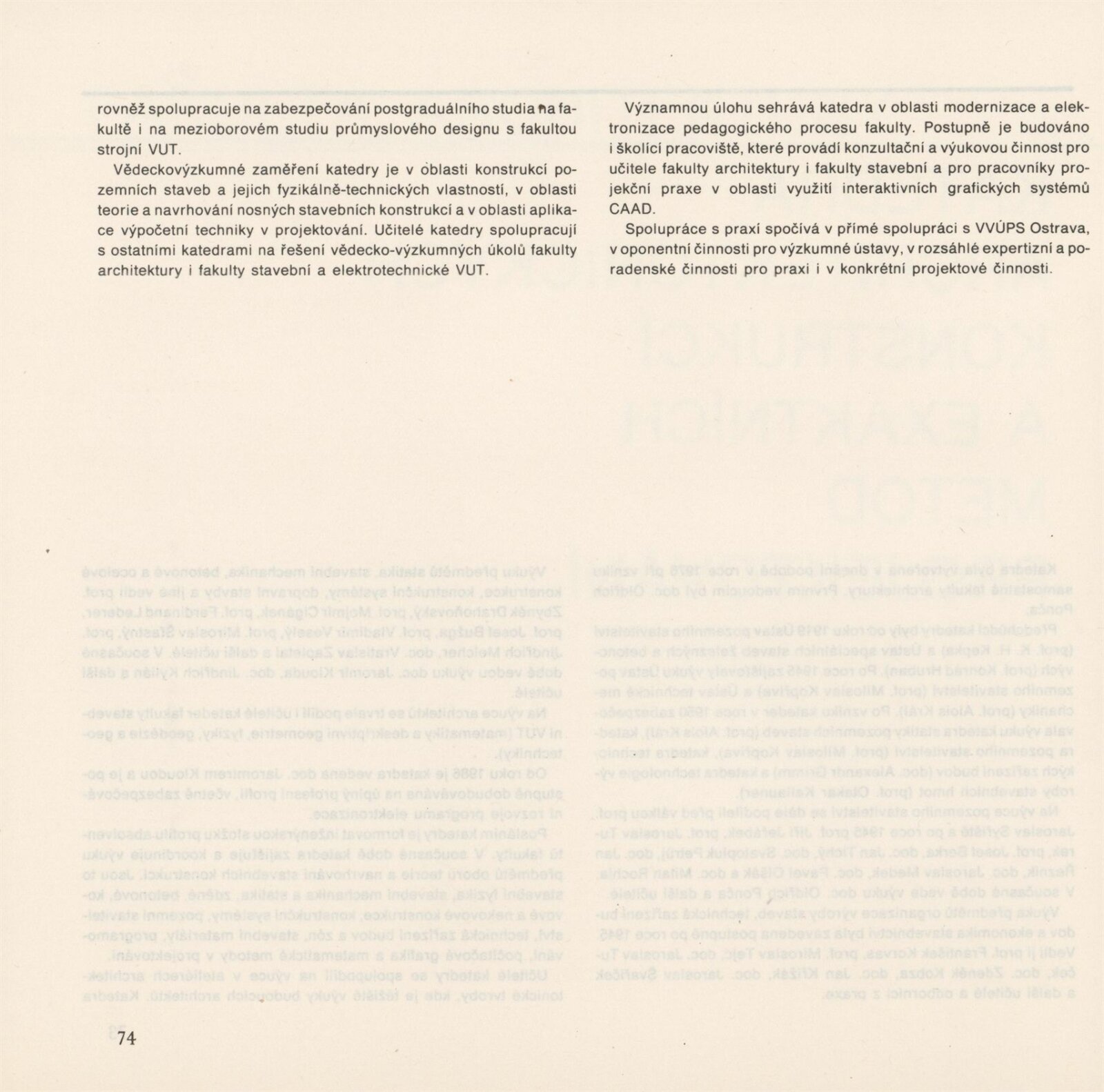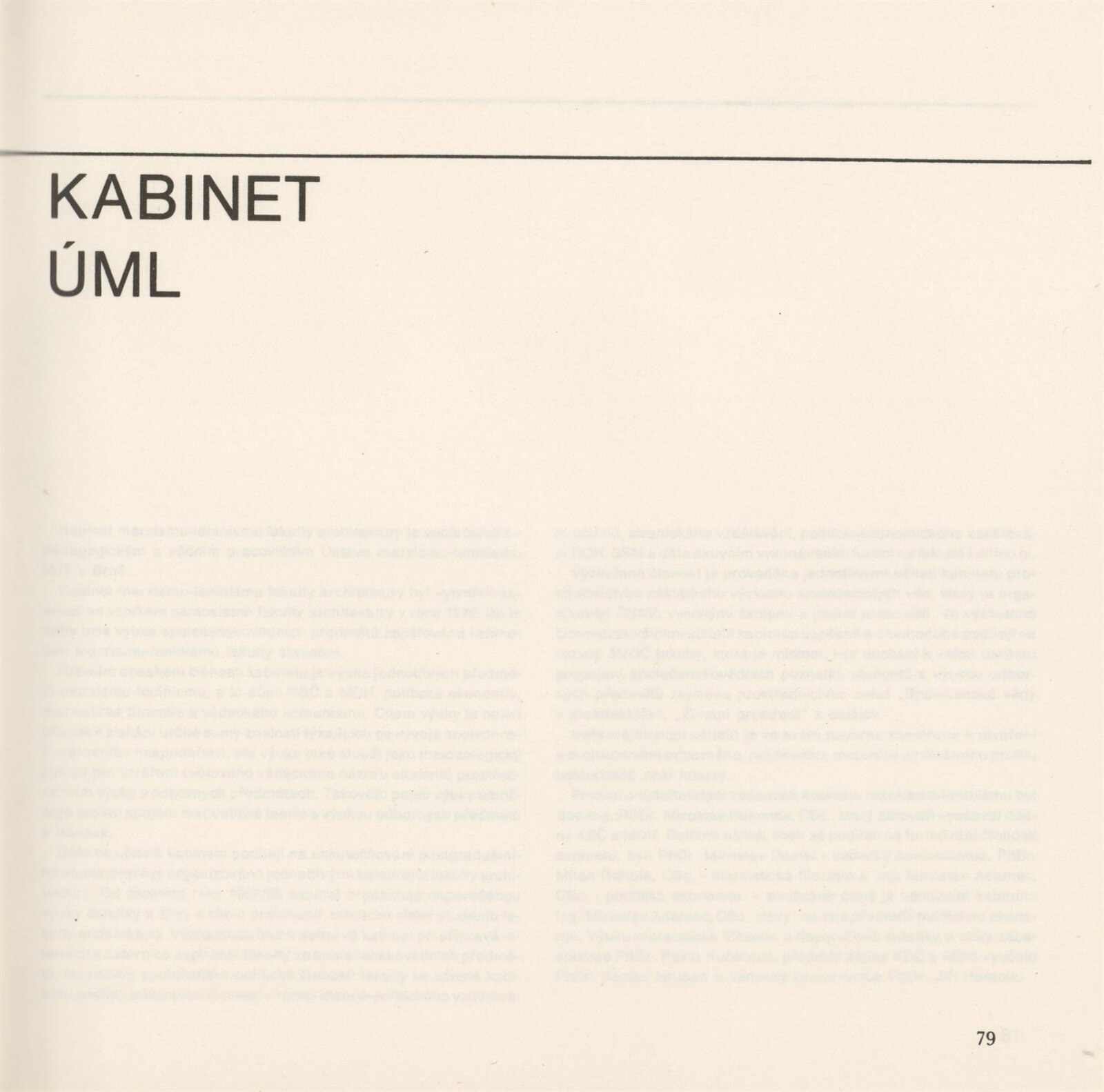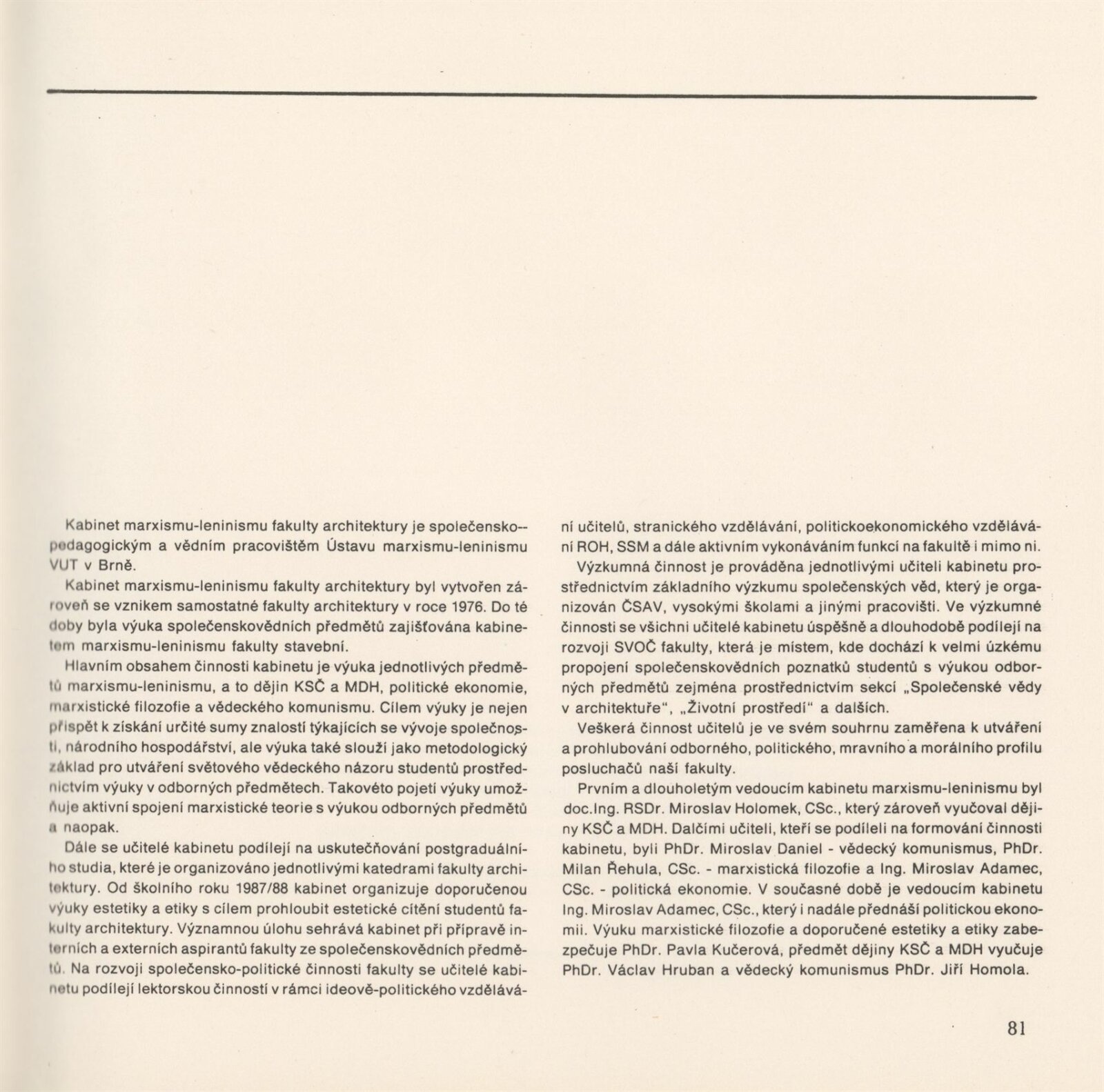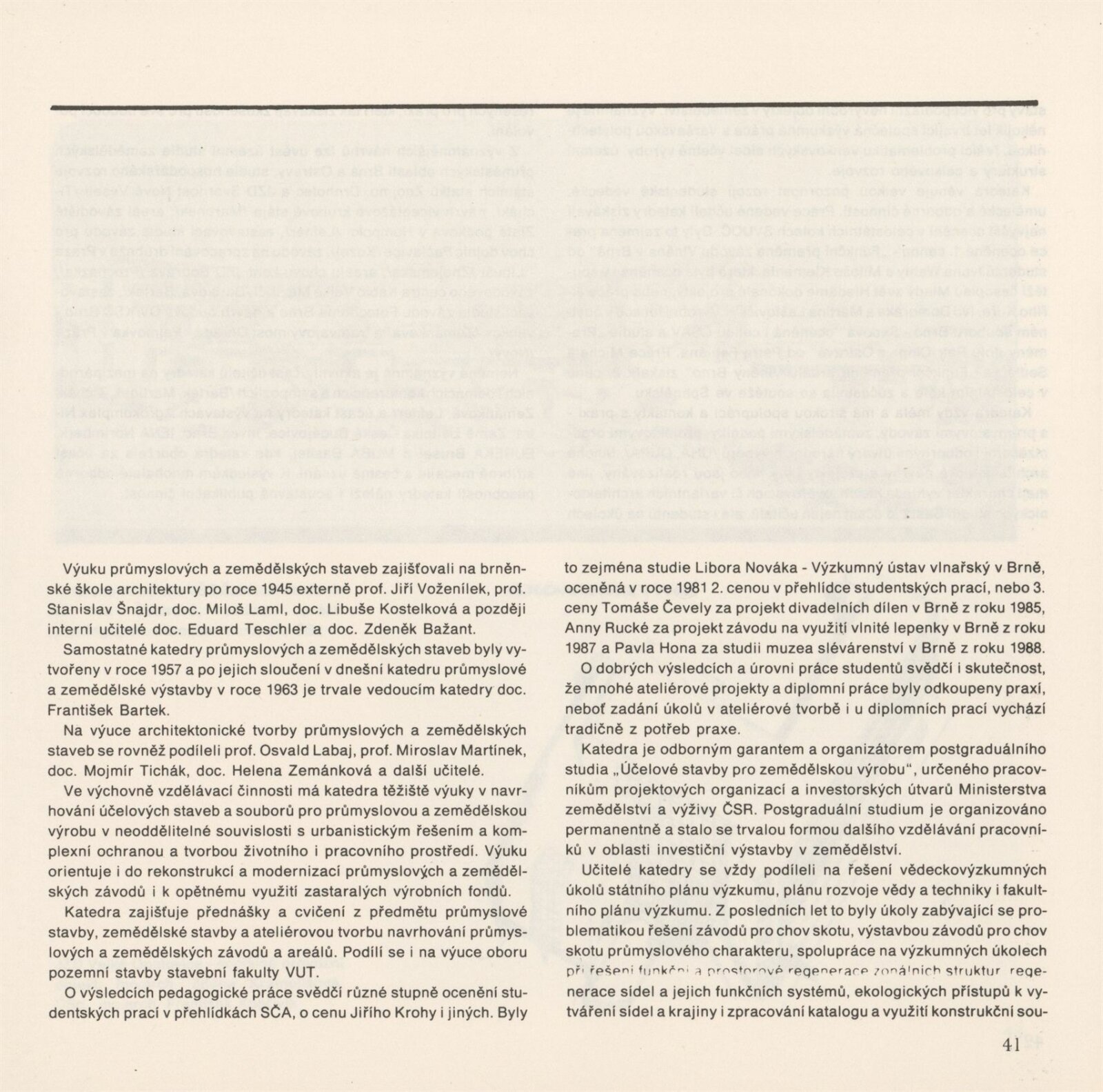 Lenka Auermüllerová, Miloš Axman, Pavla Balabánová, Růžena Bartková, Jan Blažek, Aleš Burian, Bedřich Čelikovský, Tomáš Čevela, Jean Delphine Mouyabi, Zdeněk Denk, Jan Doležal, Jaroslav Drápal, Olga Drápalová, Jiří Fixel, M. Frank, Y. Hawerlandová, Hana Hebnarová, Pavel Hon, Jan Hrubý, P. Hurník, František Chmelař, Stanislav Ille, V. Klimeš, Jaromír Klouda, Václav Kokeš, Miloslav Konvička, Josef Košutek, Jan Koutný, Jaroslav Kozel, Miloš Kramoliš, Zdena Kramolišová, Antonín Krasický, Milan Kříž, Jiří Kubín, Josef Kupka, Jan Kurhajec, Antonín Kurial, Jaroslav Ledvina, Jaroslav Maloch, Vladimír Meduna, Kamila Melichová, Czeslav Mendrek, J. Mišík, Zdeněk Mlčoch, Milan Moráň, Miroslav Petrů, K. Petříková, Oldřich Ponča, M. Puchýř, S. Richter, Anna Rucká, Antonín Řehulka, Josef Sátora, Marie Sedláčková, Rudolf Spáčil, Josef Starý, M. Stoklasa, Petr Stolín, Jiljí Šindlar, Jaroslav Šindler, Jaroslav Škopán, Helena Škrlová, Iva Šustrová, Aleš Valder, Josef Veselý, Eva Vodičková, Jiří Vohralík, Vladimír Vychodil, Jaroslav Vyšinka, Eva Zientková