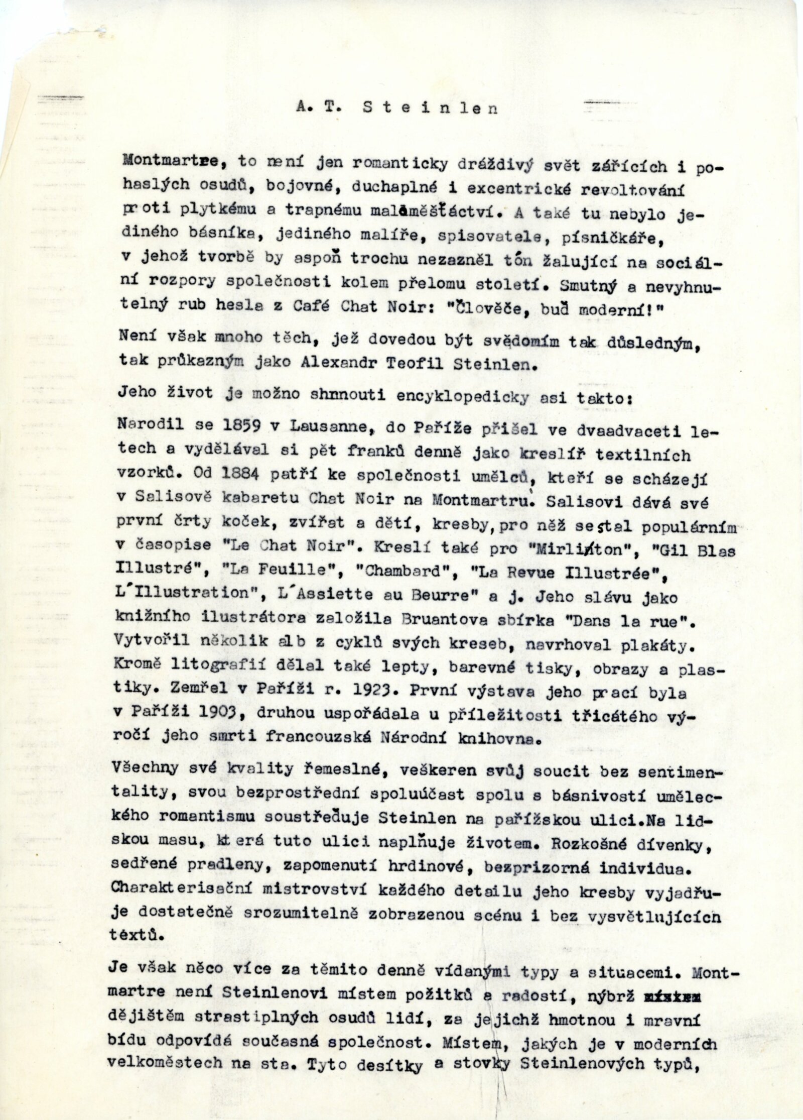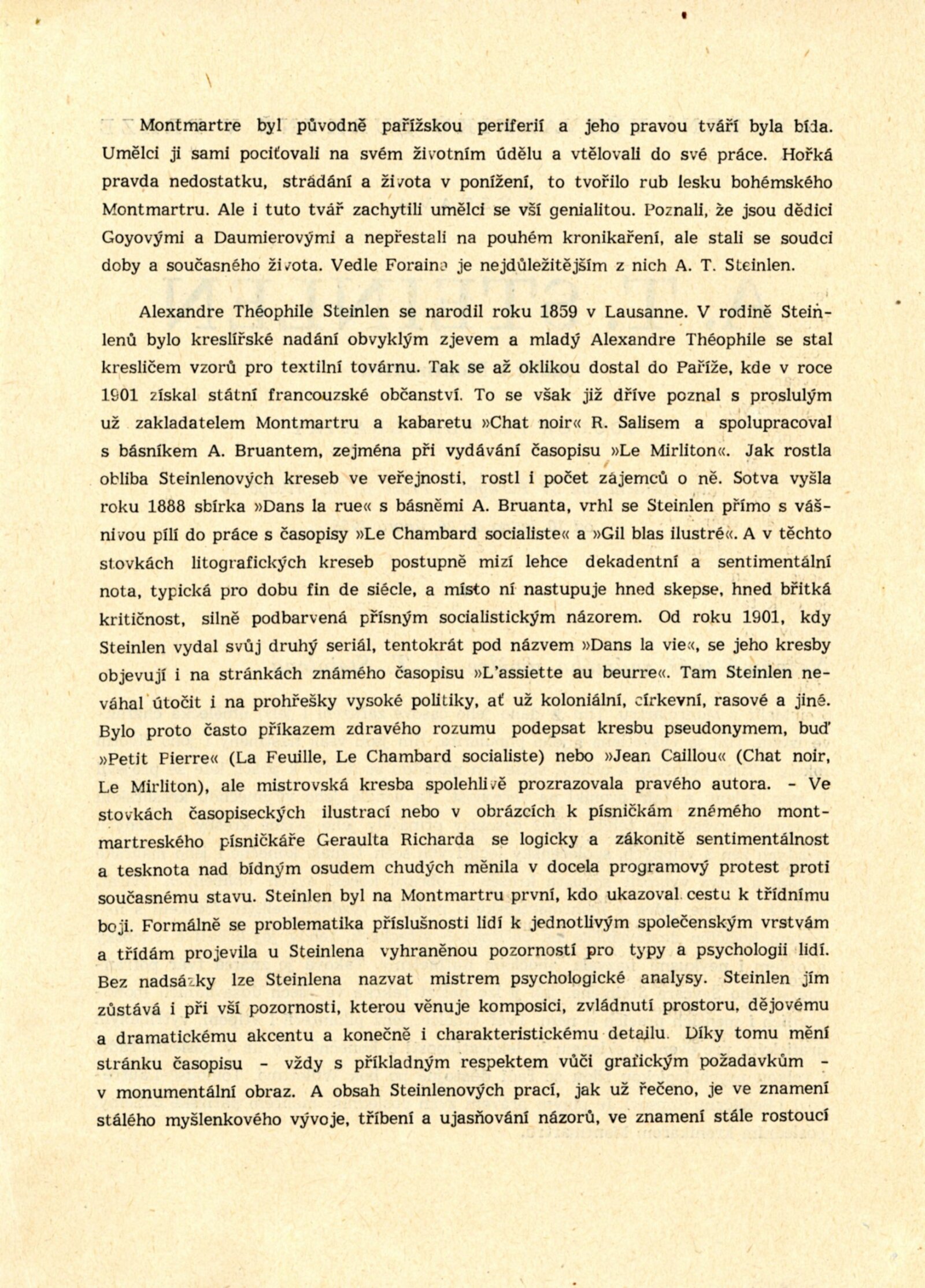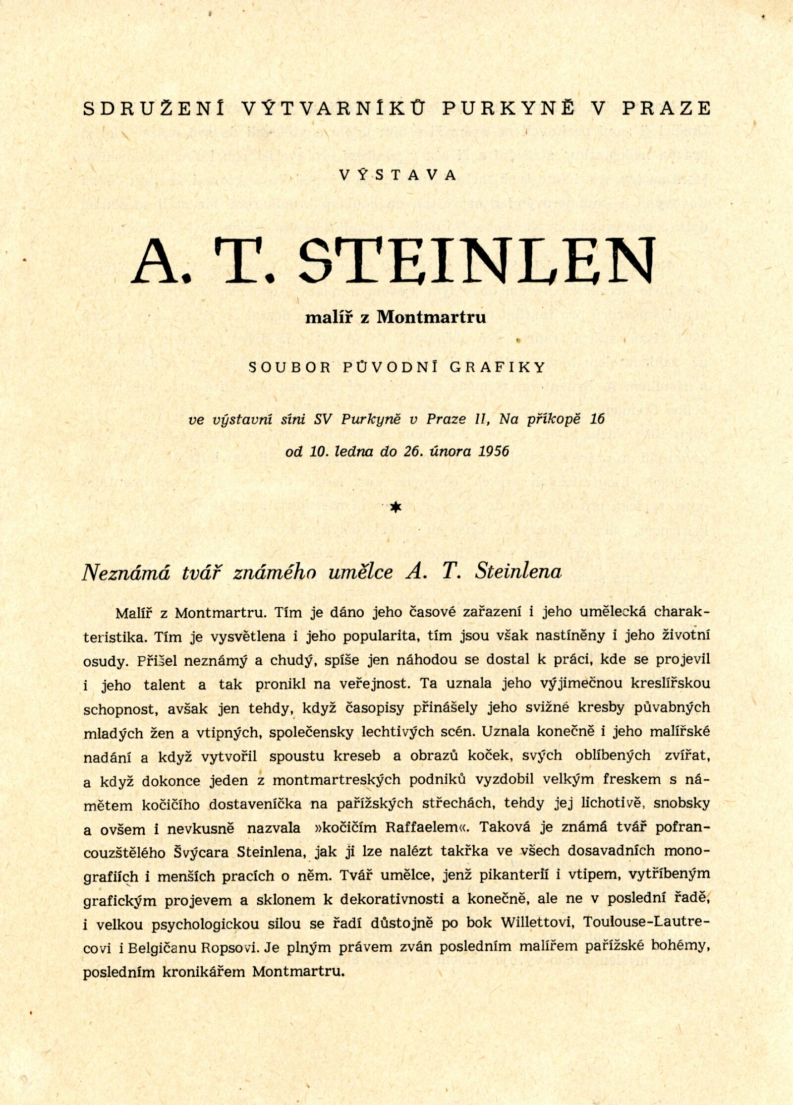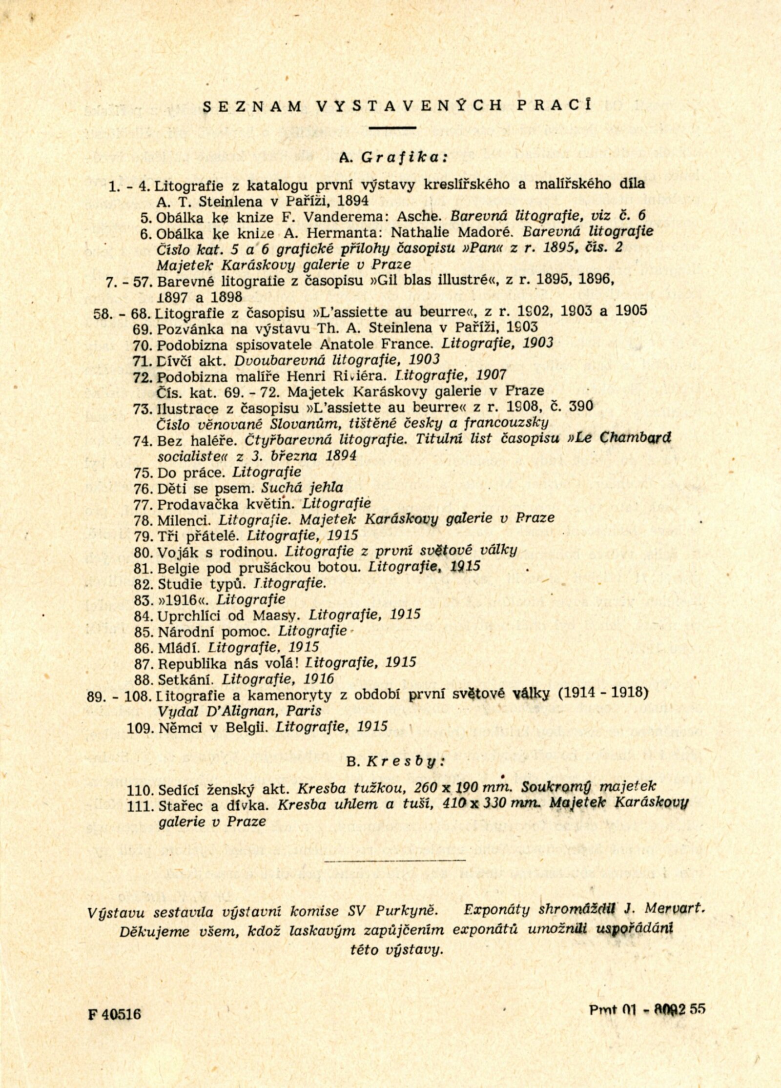 Max Liebermann. A. T. Steinlen. Výstava kreseb a původní grafiky: Dům umění města Brna, 22. 4. – 20. 5. 1956 / Text: H. M. – Brno: DUmB, 1956. – 4 s., DU 249–250. – MG