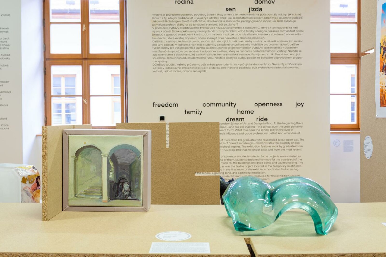Výstava nabízí podélný řez současnou podobou Střední školy umění a řemesel v Brně. Její finální podoba však bude do značné míry utvářena samotnými studenty, absolventy a pedagogickým sborem. Společně se tak vydáváme na cestu zkoumání pozice této jedinečné školy v rámci města Brna, jejího místa v kontextu uměleckého vzdělávání u nás i v zahraničí, i jejího vlivu na kulturní dění v regionu.