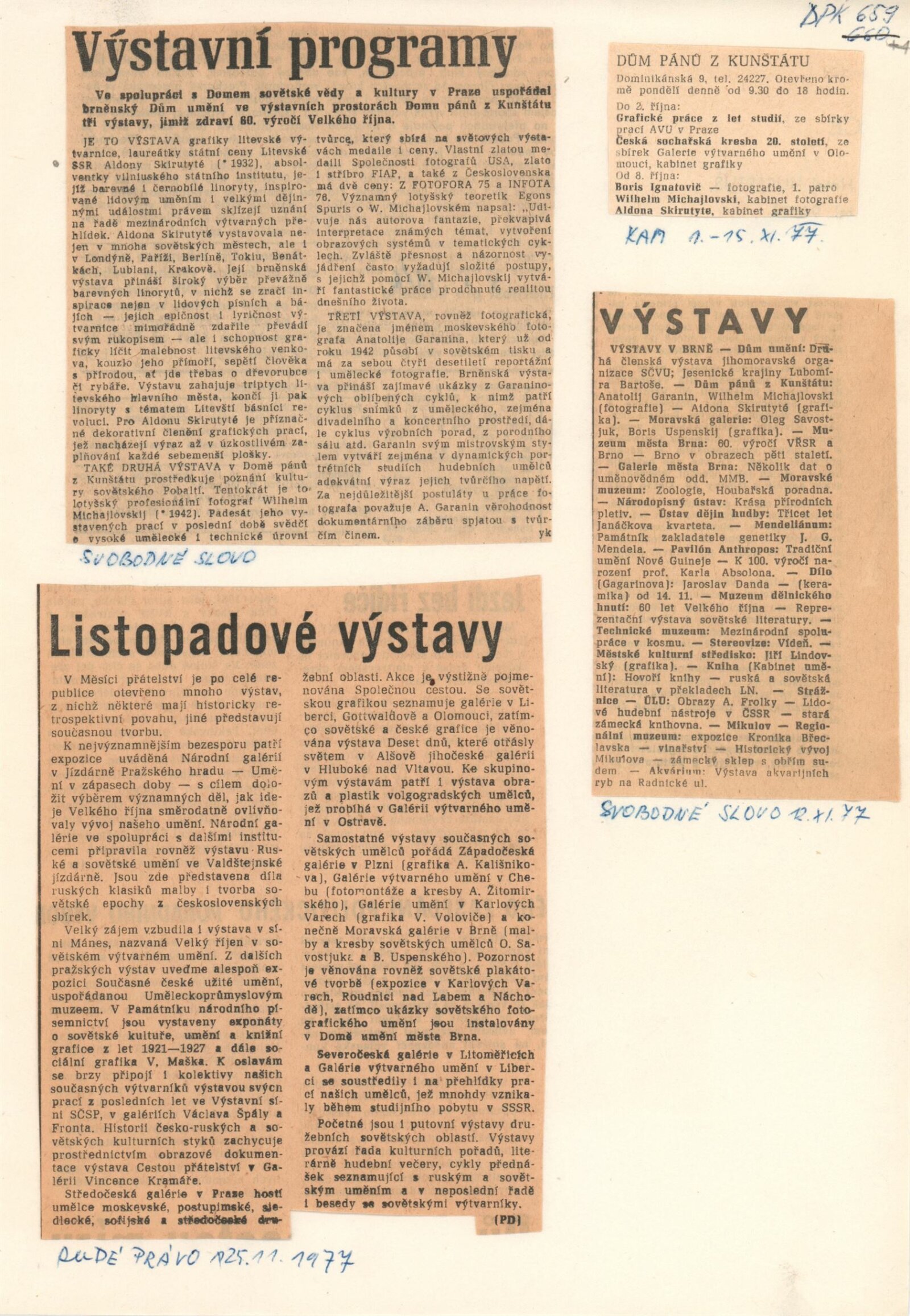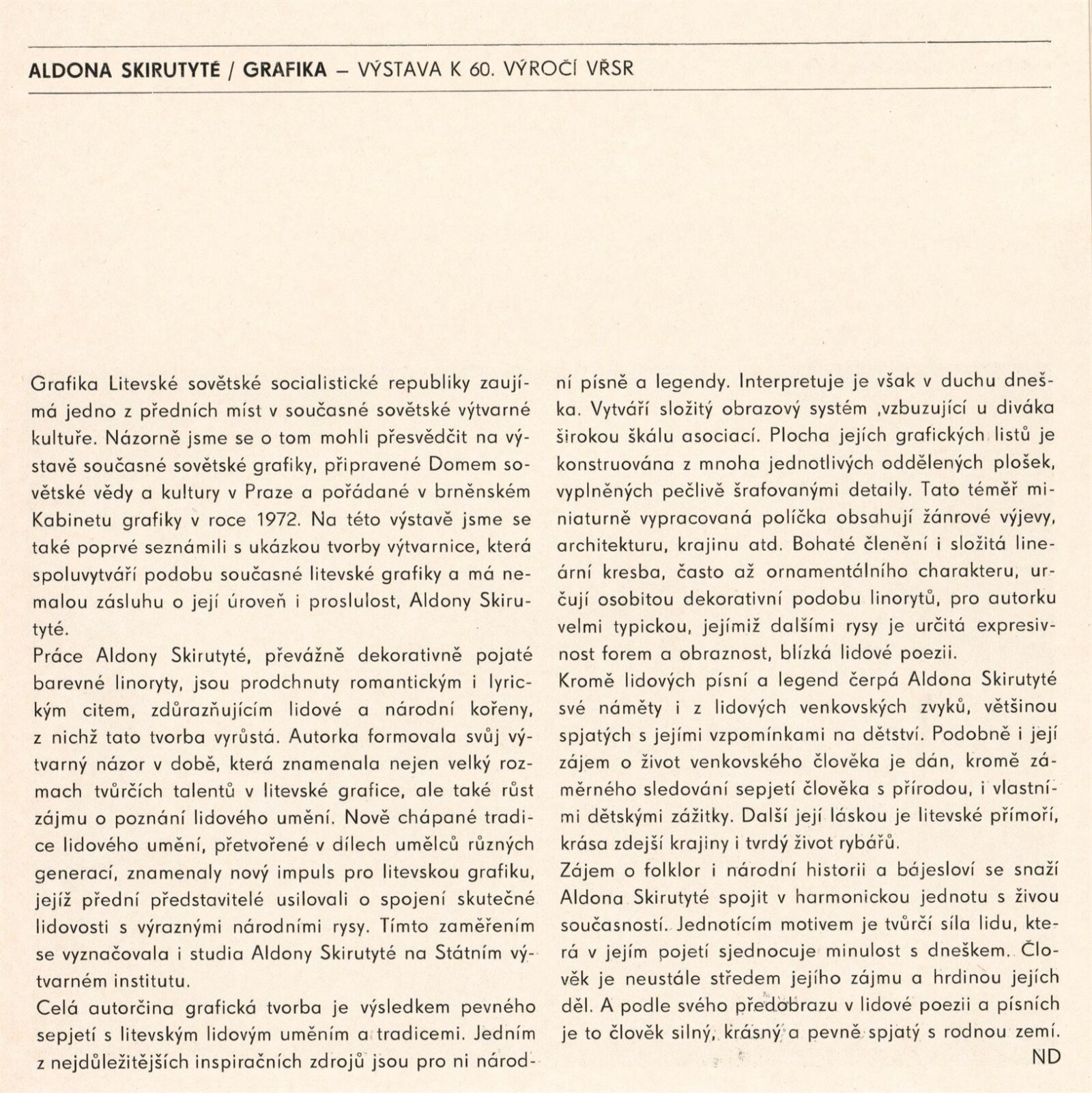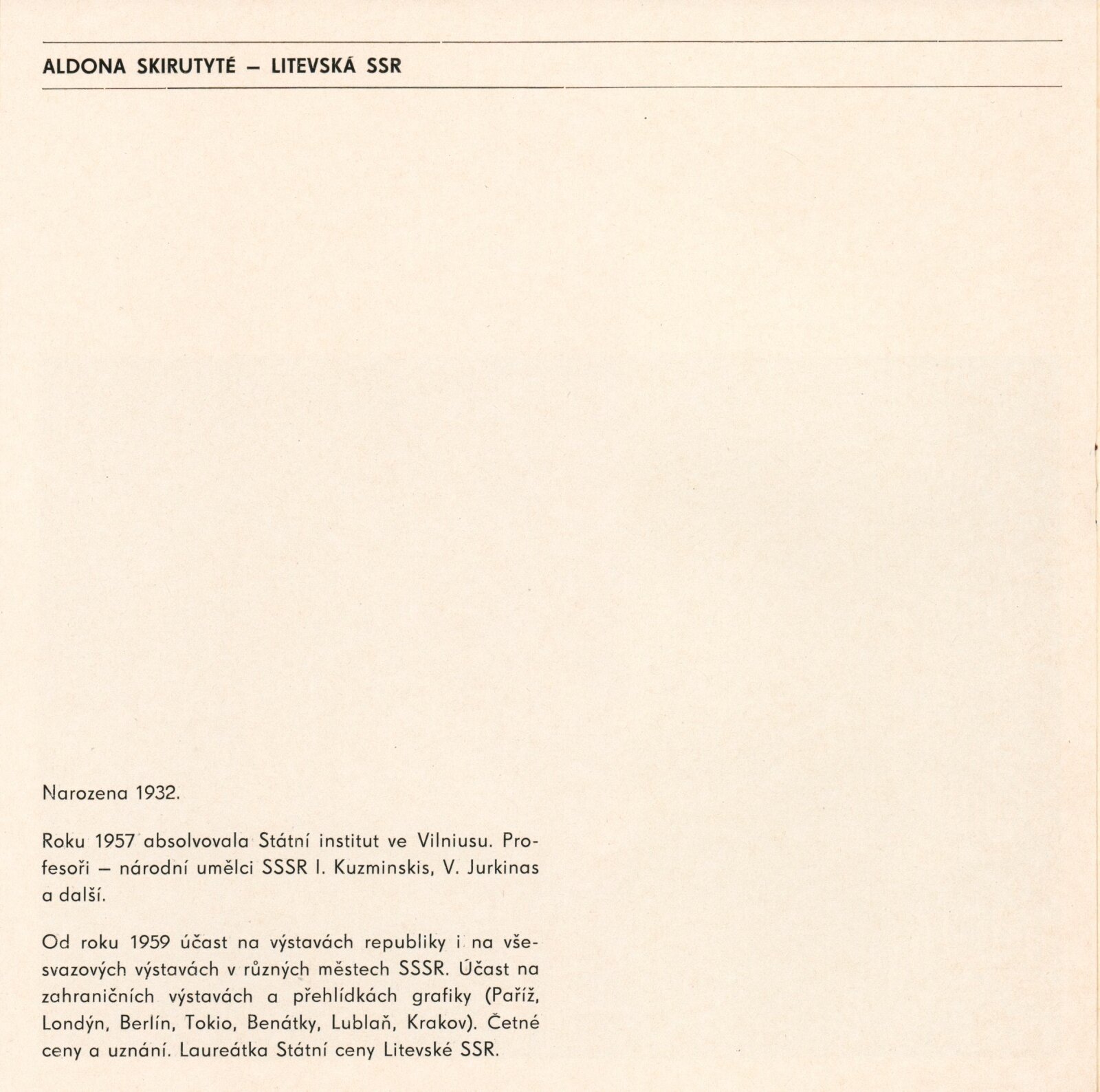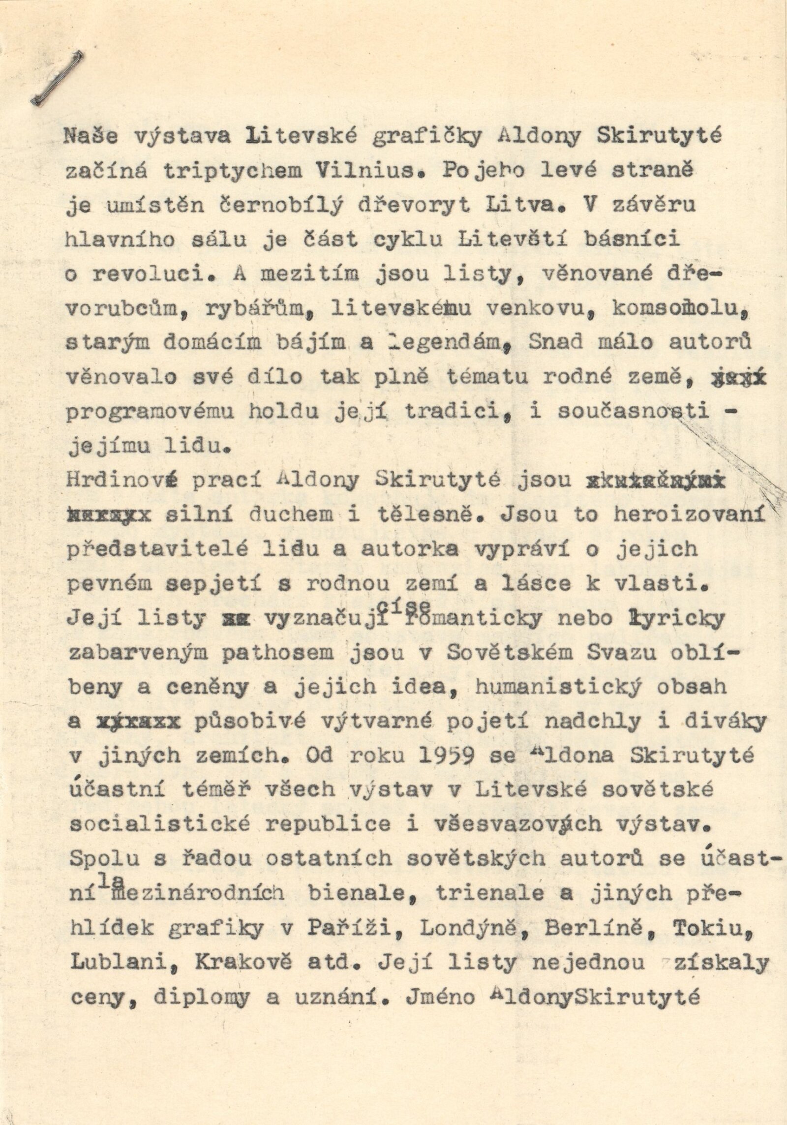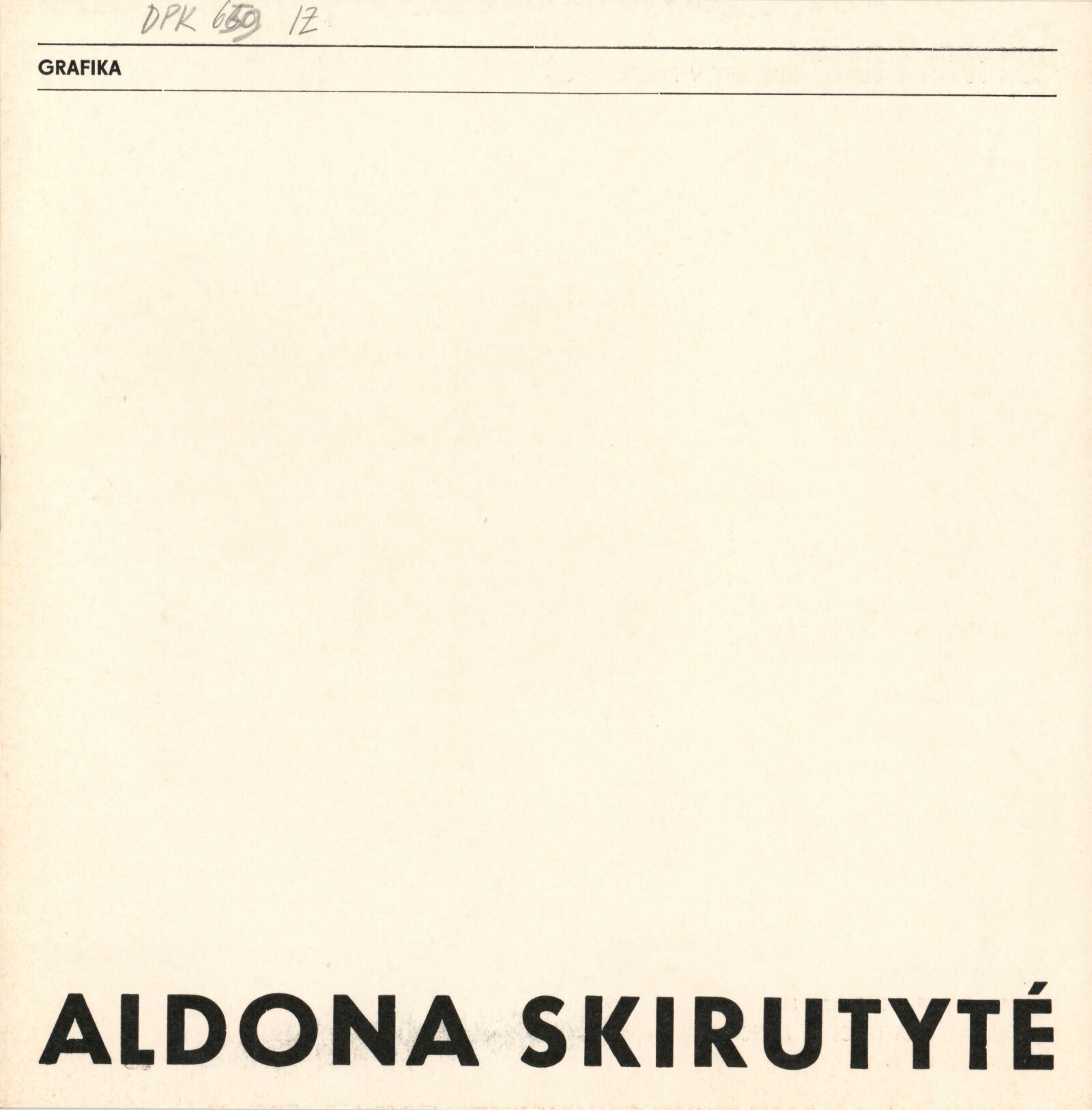 Aldona Skirutyté. Grafika: Dům umění / Dům pánů z Kunštátu, Kabinet grafiky, 7. 10. – 13. 11. 1977 / Text: Nina Dvořáková. – Brno: DUmB, 1977. – 8 s., obr., DPK 659. – MMB