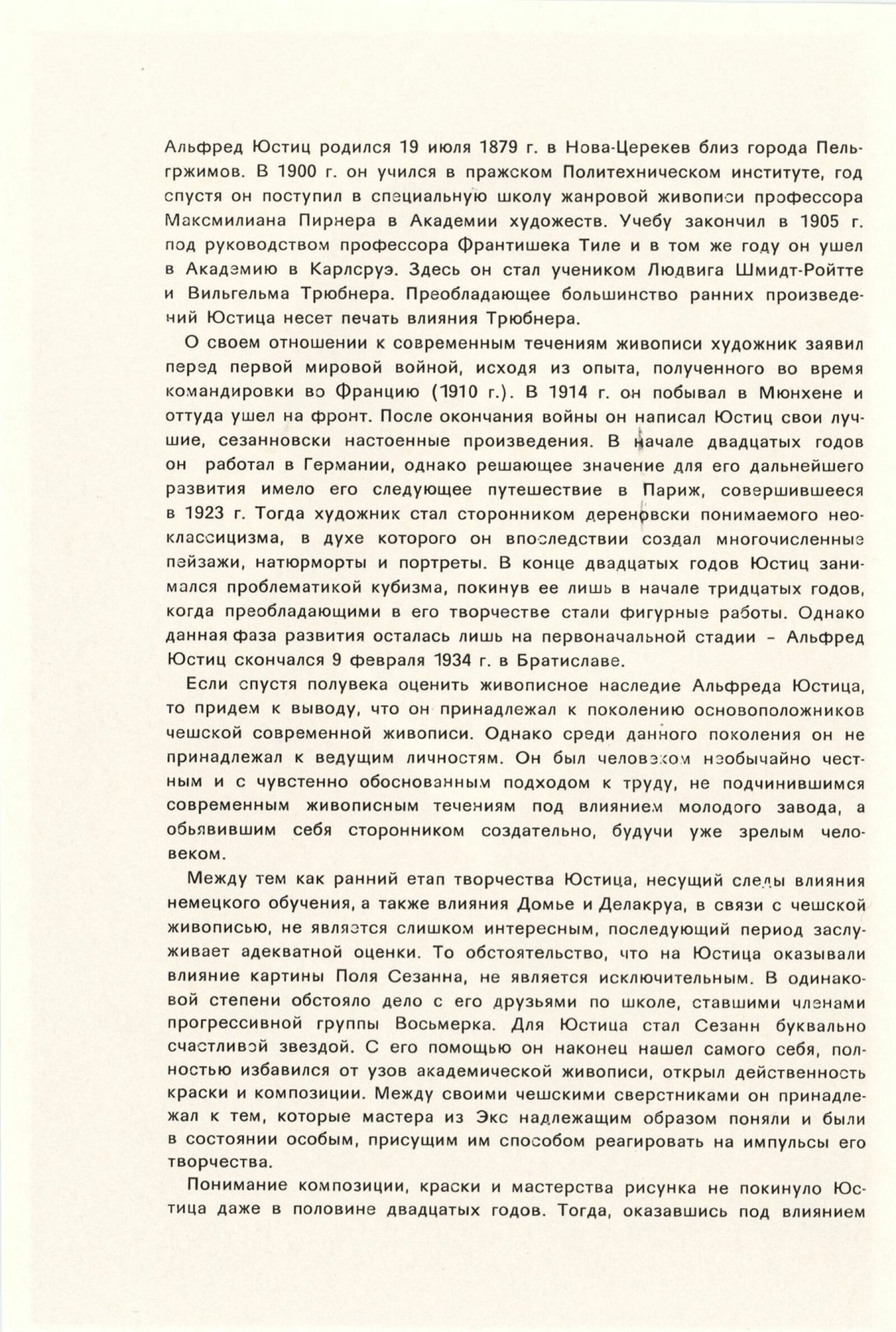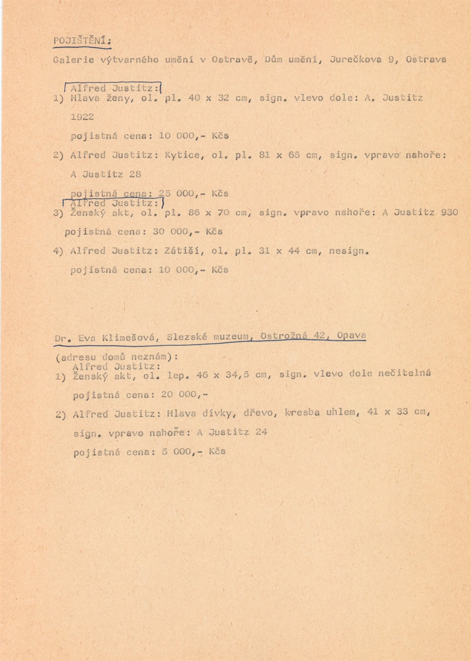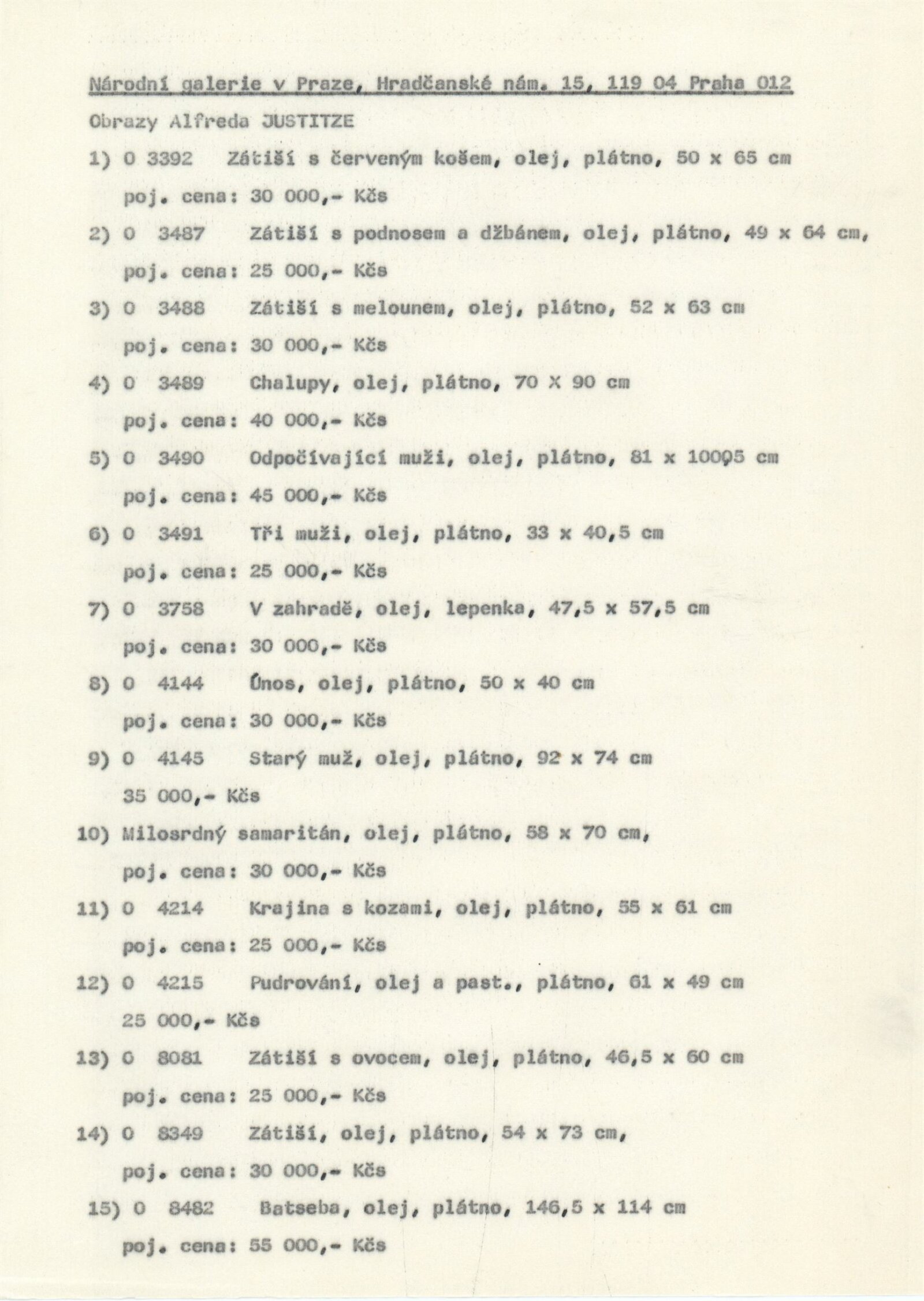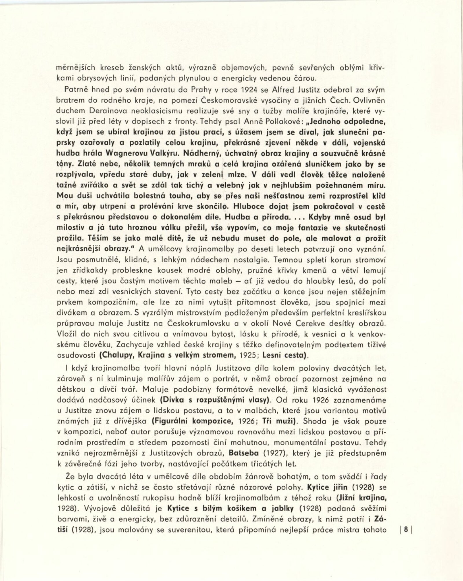 Alfred Justitz. 1879–1934: Dům umění města Brna, 1. patro, 14. 12. 1982 – 23. 1. 1983 / Text: Marie Dohnalová. – Brno: Moravská galerie, 1982. – 22 s., 24 s. obr. příl., portrét, životopis, výstavy, zastoupení v galeriích, bibliografie, DU 752. – MZK; MG