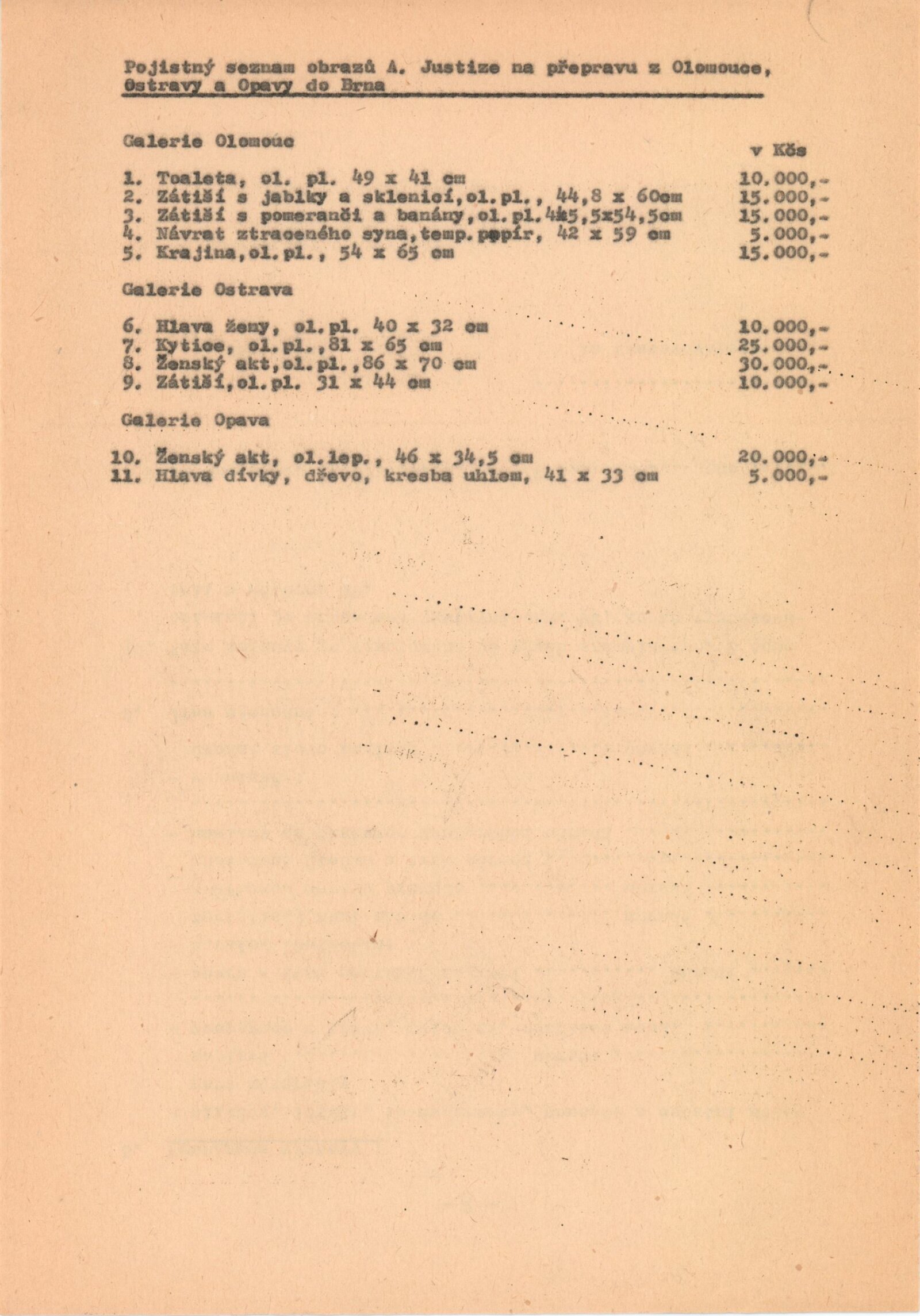 pozvánka, katalog, pojistné seznamy a seznamy děl autora v galeriích, smlouvy o výpůjčkách, provozní korespondence, smlouva o spolupořádání DU a Moravské galerie, nabídka výstavy od Marie Dohnalové, smlouvy o výpůjčkách, recenze v tisku