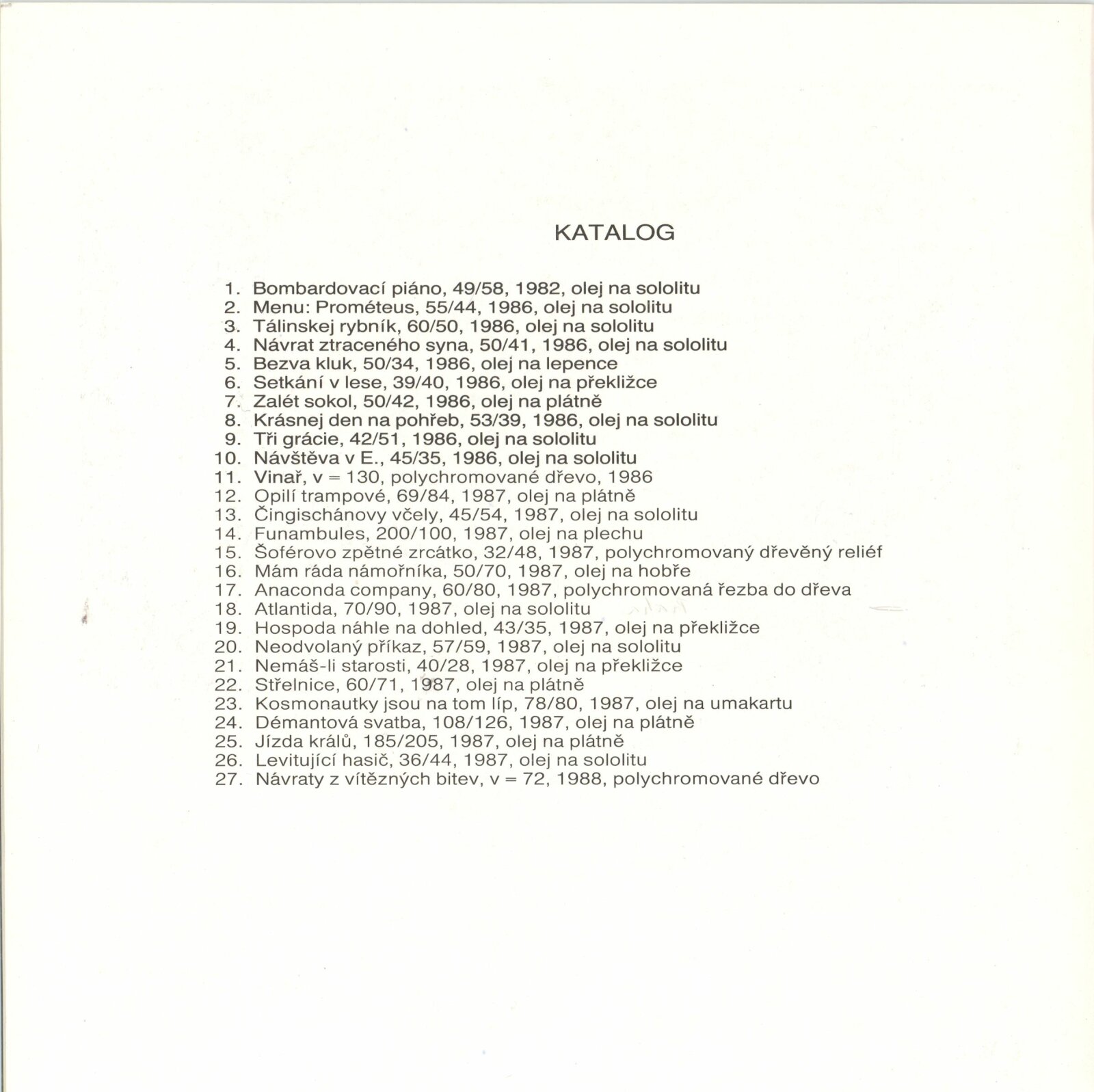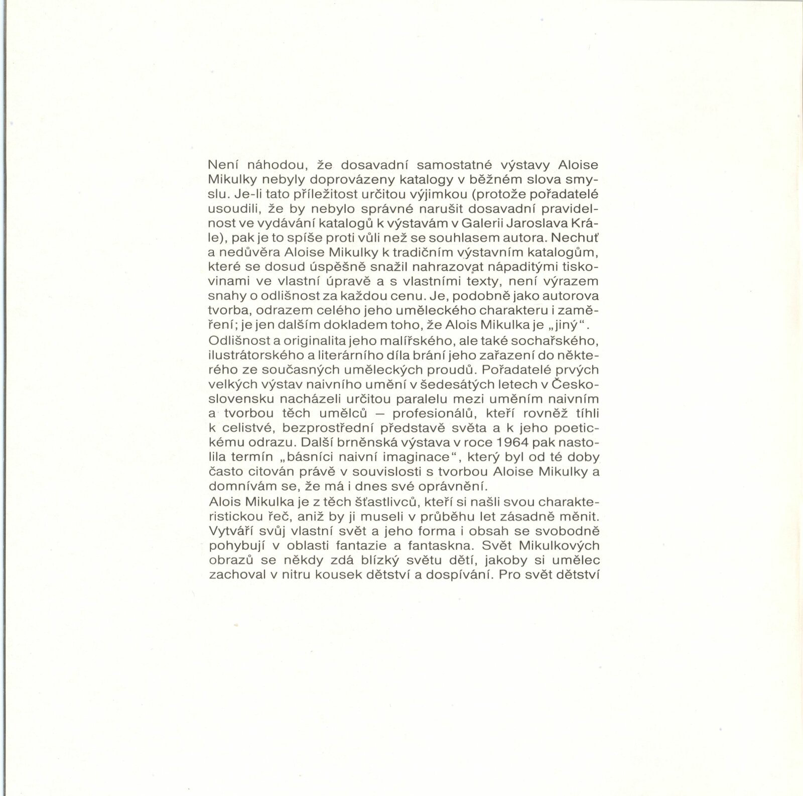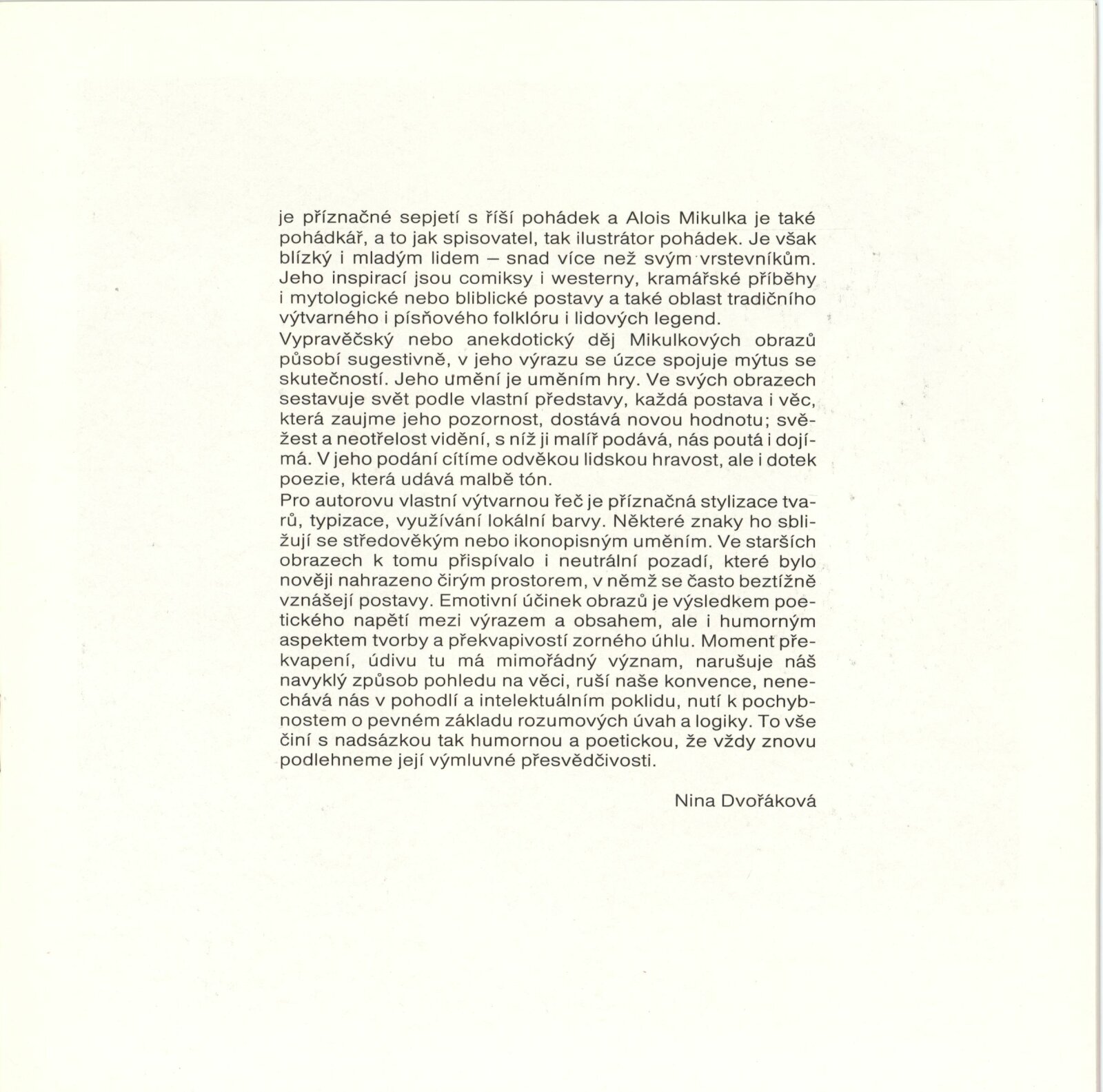Alois Mikulka. Obrazy, plastiky: Dům umění, 146. výstava v Galerii Jaroslava Krále, 9. 3. – 24. 4. 1988 / Text: Nina Dvořáková. – Brno: ČFVU, 1988. – [16] s., obr., životní data, výstavy, realizace v architektuře, DU 852. – MZK; MG