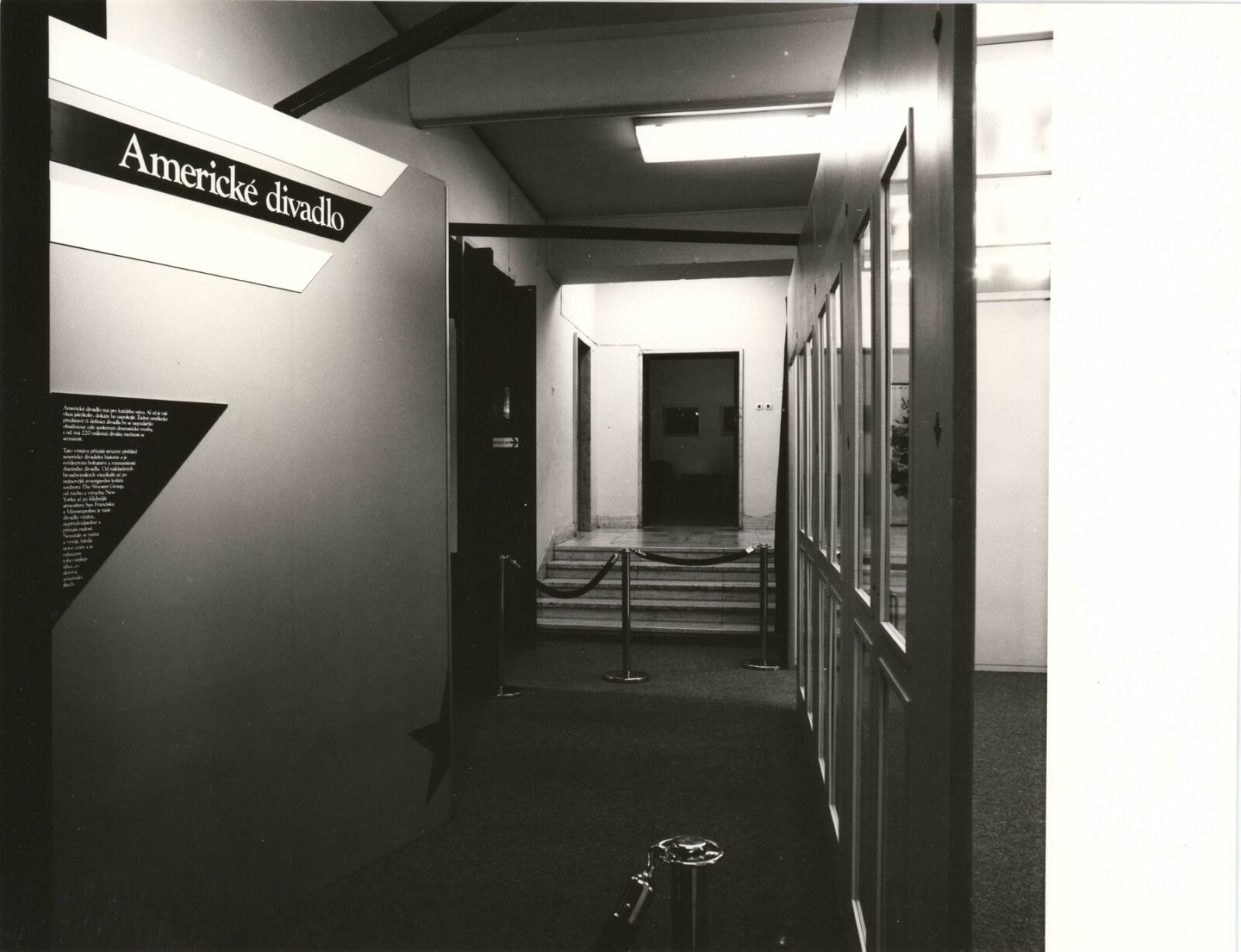 pozvánka, katalog, program jednoaktovek - účinkovalo Actors Theatre of Louisville - simultánní překlady Pavel Dominik a Michal Žantovský, katalog, záznam z tiskové konference, zprávy pro média, úvodní slovo na zahájení, záznamy z jednání, podklady k výstavě (koncepce, popis výstavy, z USA), fotografie z vernisáže a z výstavy, provozní korespondence, registrace - celní ručení, souhlas k výlepu plakátu a další organizační smlouvy a schválení, žádost o povolení výstavy, recenze v tisku