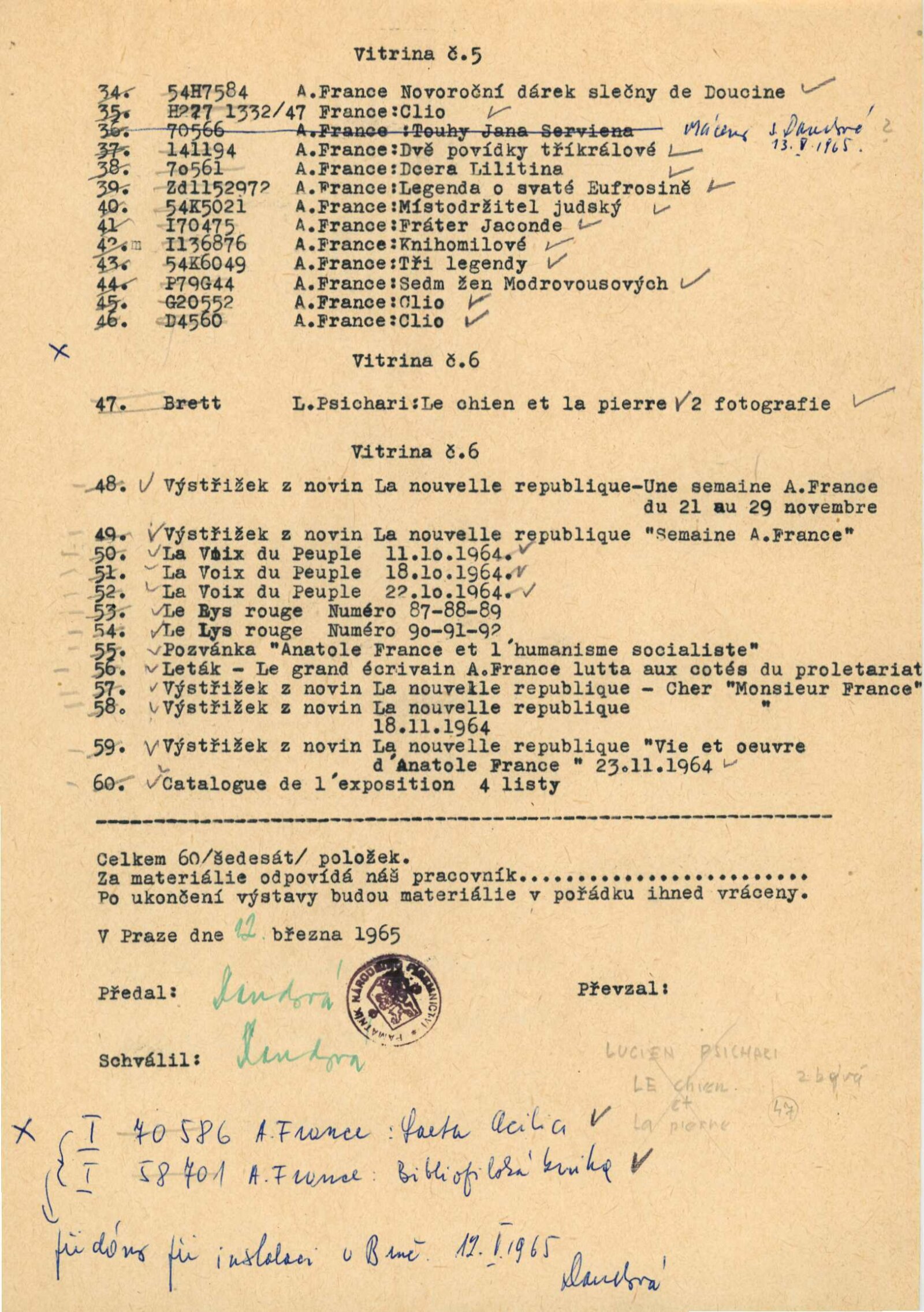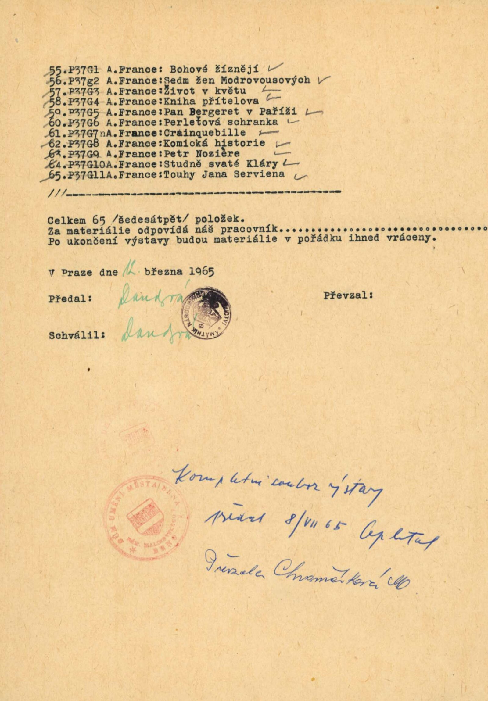 úvod vernisáže, zpráva o výstavě, provozní korespondence (Památník národního písemnictví + výpůjční záznam)
