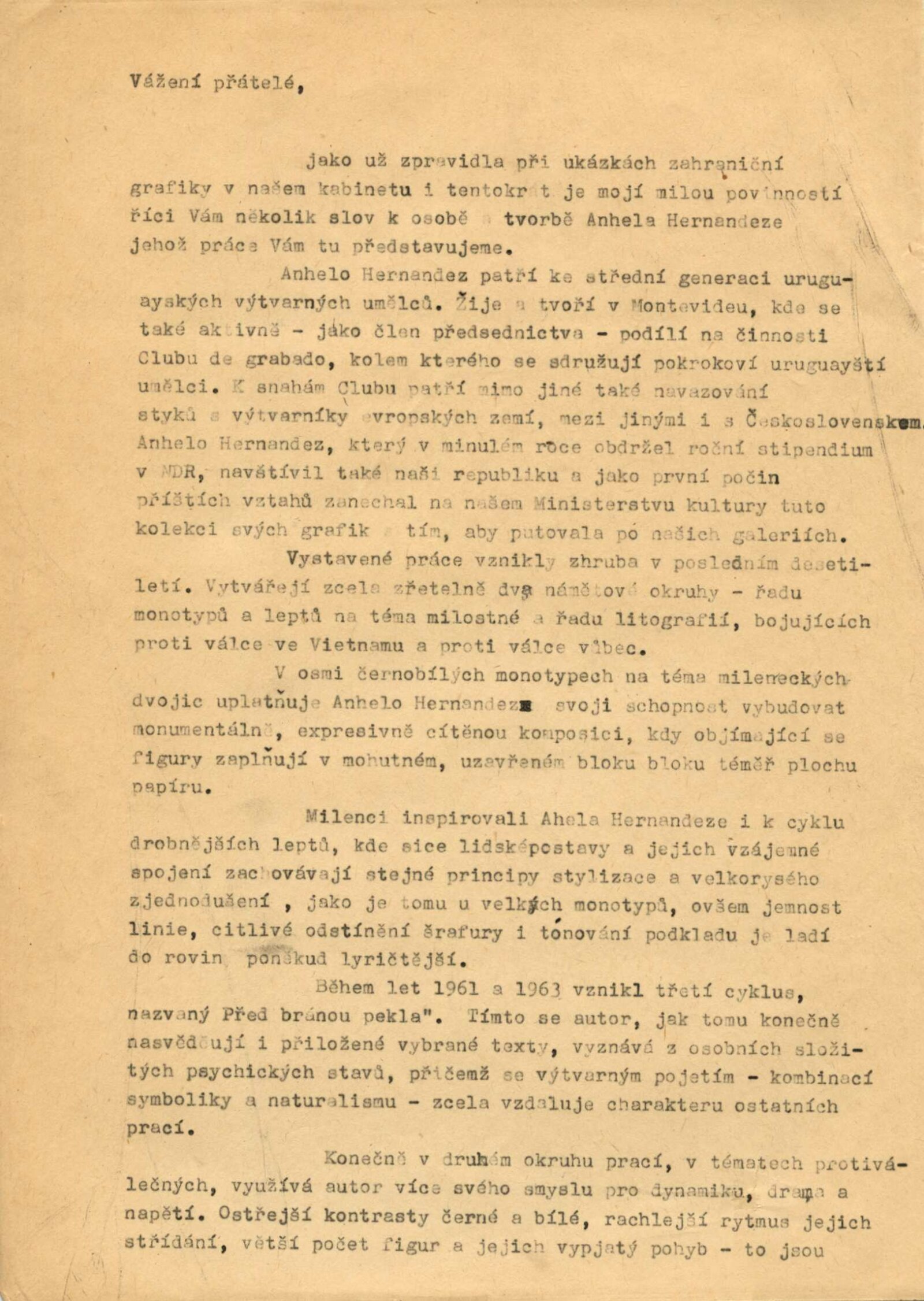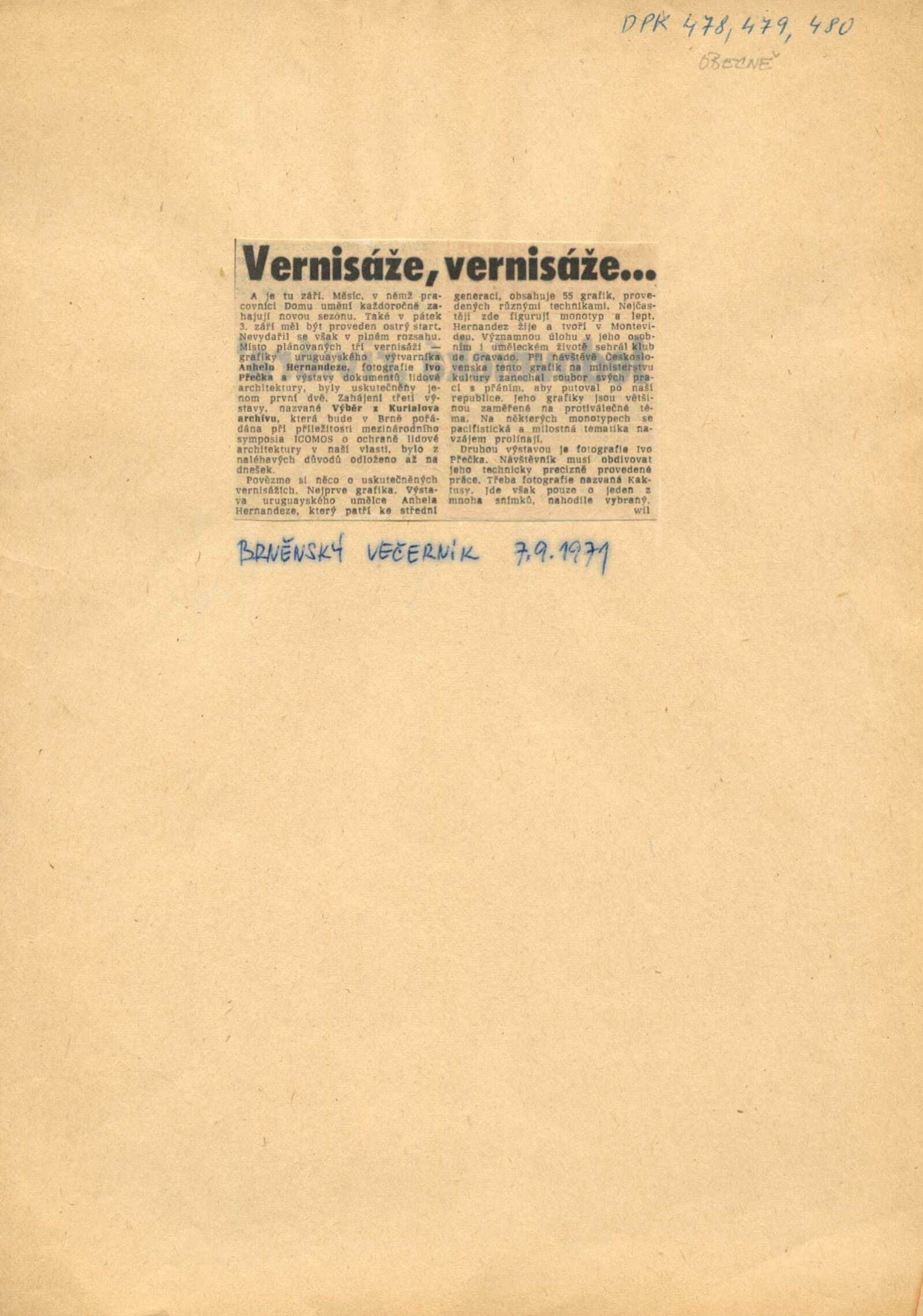 pozvánka, strojopis úvodního slova k vernisáži (Milada Nováková), potvrzení MK ČSR, provozní korespondence, žádost o povolení výstavy, recenze v tisku