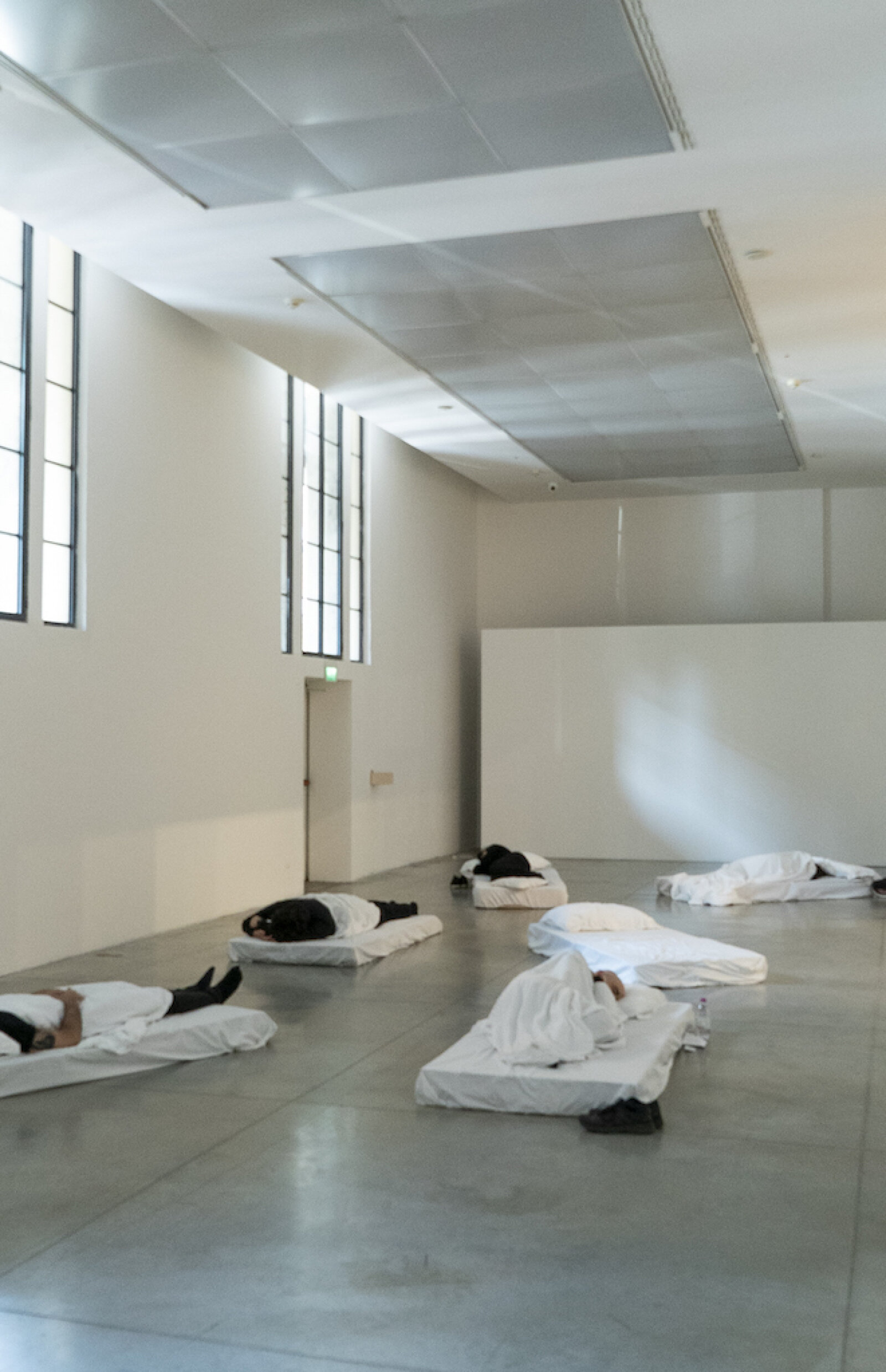 Anne Glassner je vizuální umělkyně a performerka. Ve svých performancích, videích, instalacích a kresbách se zabývá intenzivním pozorováním opakujících se každodenních úkonů. Téma spánku se stalo středobodem její umělecké práce už před jistou dobou. Mimo jinými ho zpracovává metodou “spacích performancí”, které ostatním umožňují sledovat ji při spánku na neobvyklých místech. Svojí prací rozostřuje hranici mezi uměním a životem, realitou a fikcí a vyvolává otázky týkající se vnímání sama sebe, svého okolí, stejně jako průniků osobního a veřejného.