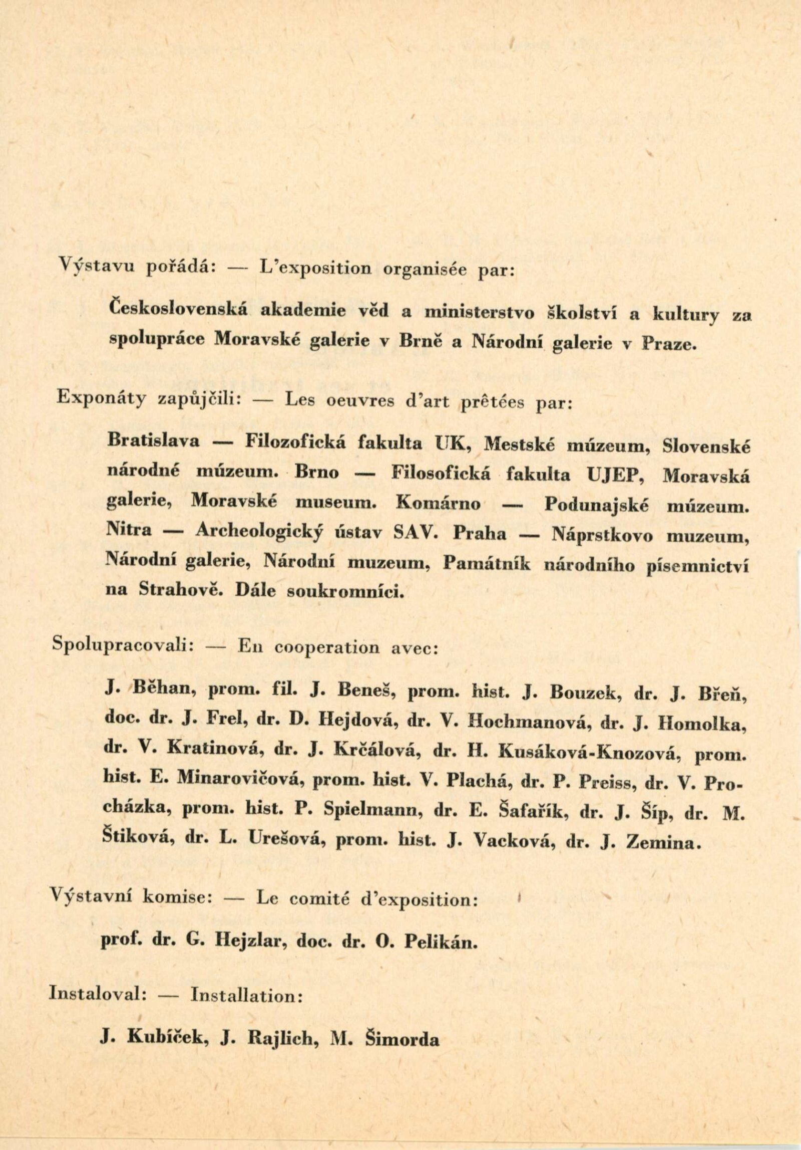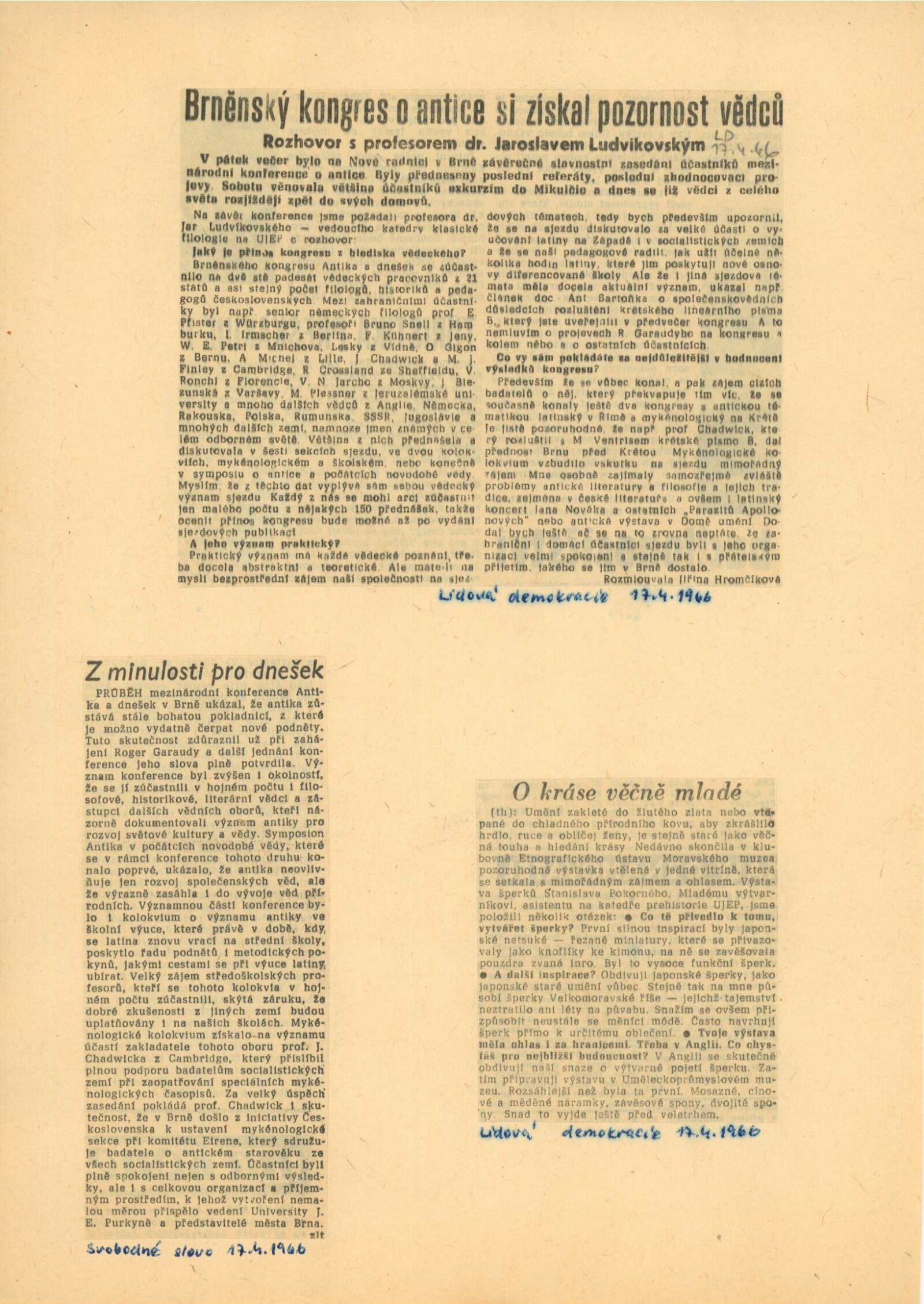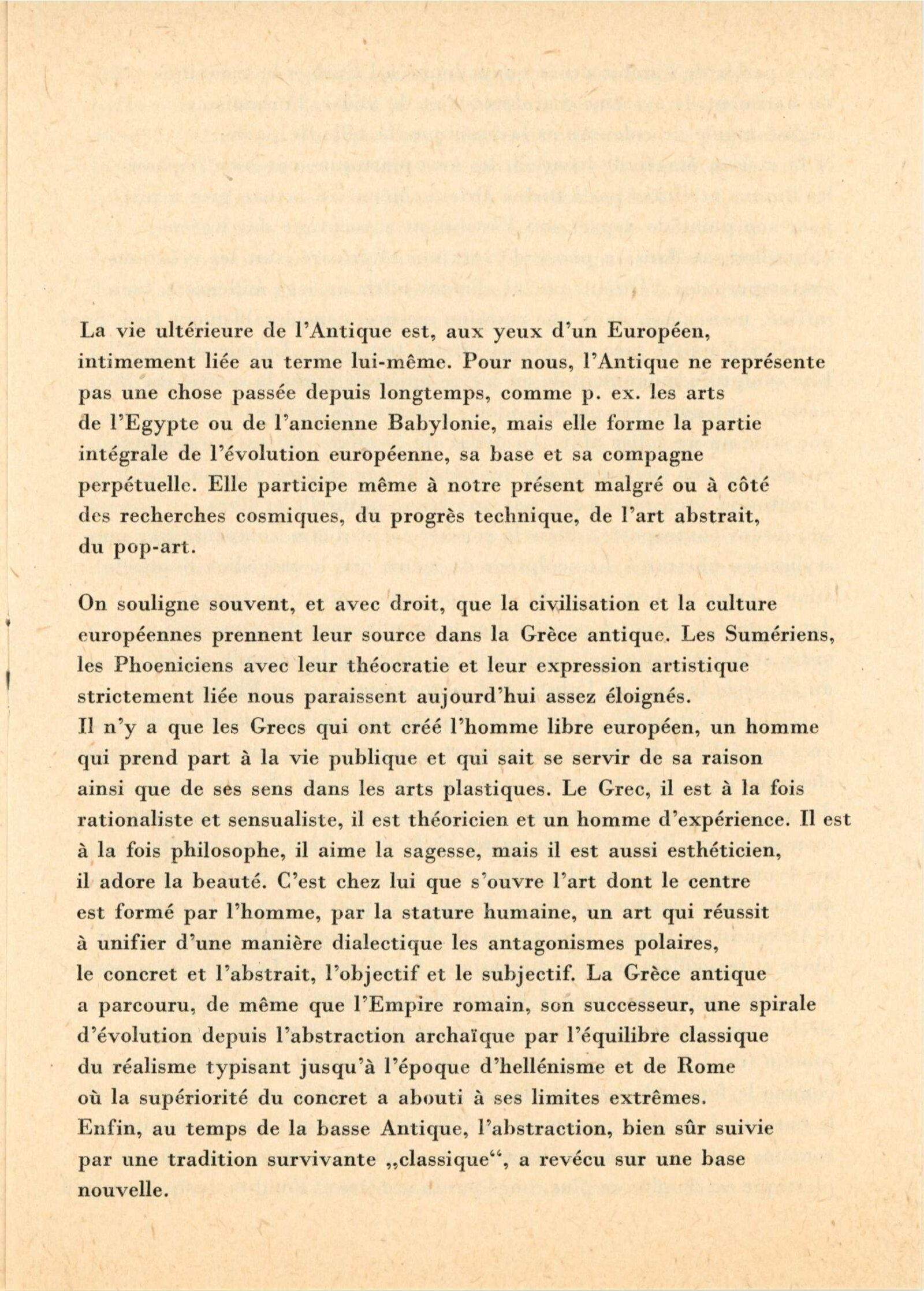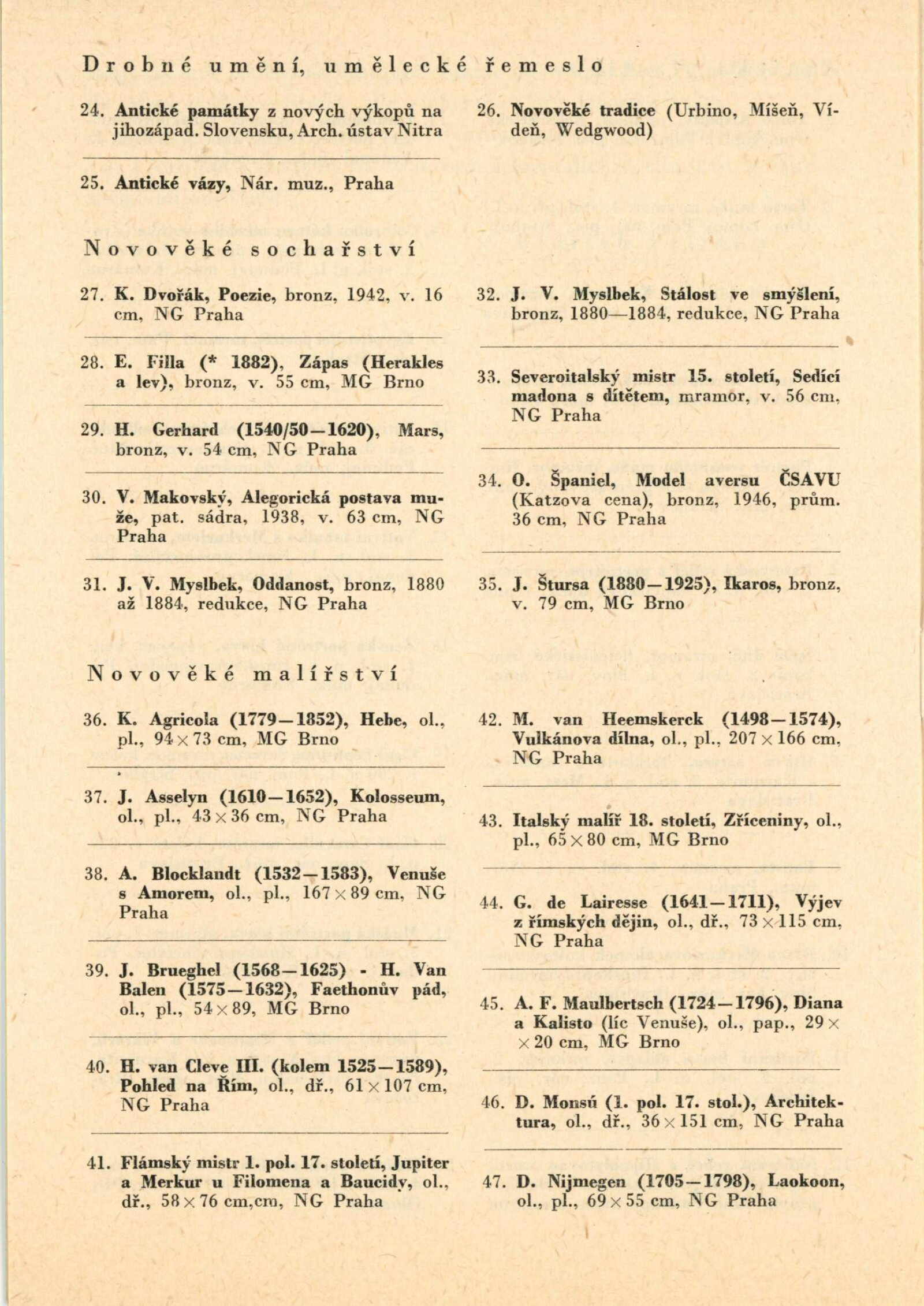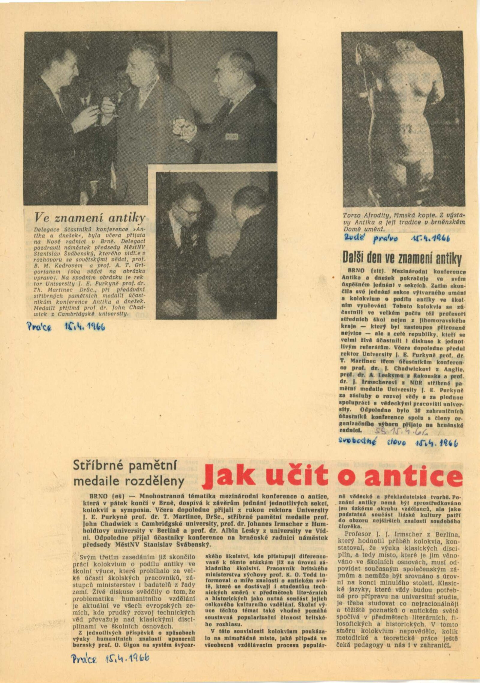 Antika a její tradice: Dům umění města Brna, 9. 4. – 9. 5. 1966 / Katalog výstavy uspořádané při příležitosti mezinárodní konference Antika a dnešek v Brně, 12. 4. – 16. 4. 1966. Antika a její tradice: Dům umění města Brna, 9. 4. – 9. 5. 1966 / Text: Oldřich Pelikán. – Praha: Československá akademie věd, 1966. – 16 s., 17 s. obr. příl., DU 456. – MZK; MG