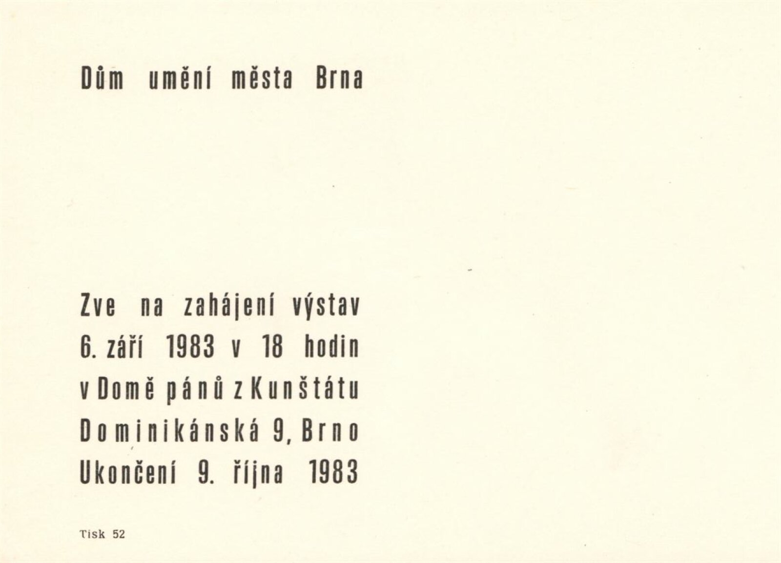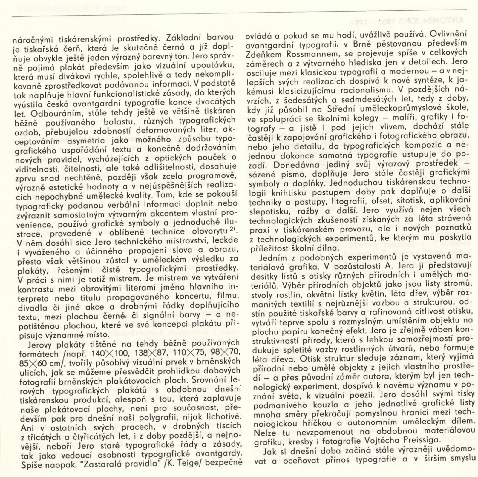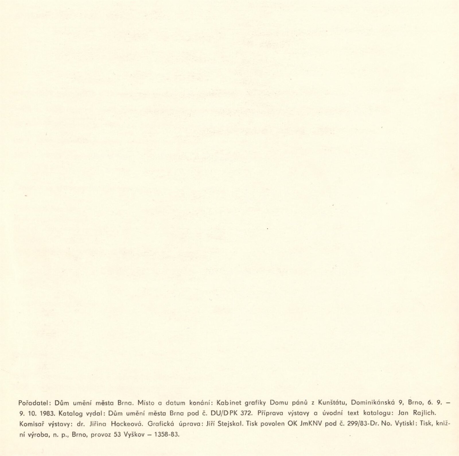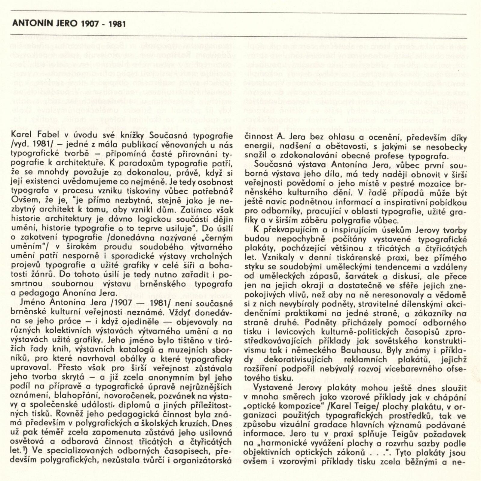 Antonín Jero 1907–1981. Typografie, grafika: Dům umění / Dům pánů z Kunštátu, Kabinet grafiky, 6. 9. – 9. 10. 1983 / Text: Jan Rajlich. – Brno: DUmB, 1983. – 12 s., obr., životní data, výstavy, ceny, DPK 805. – MZK; MG; MMB