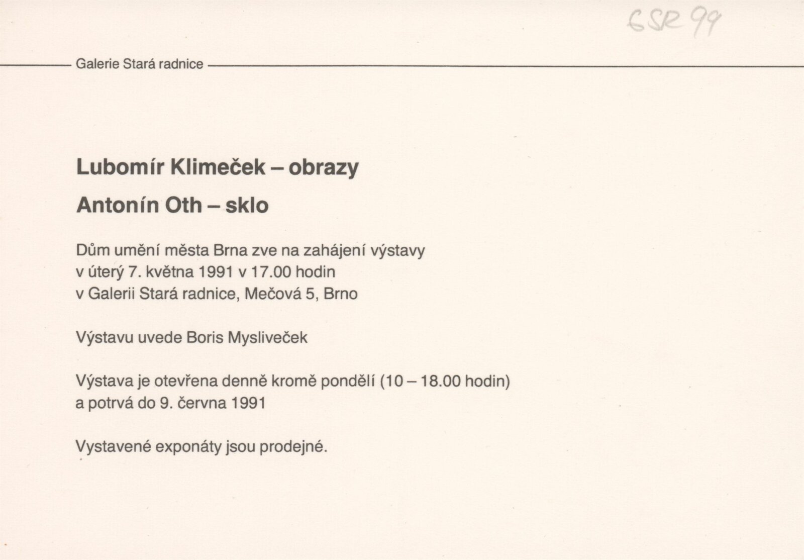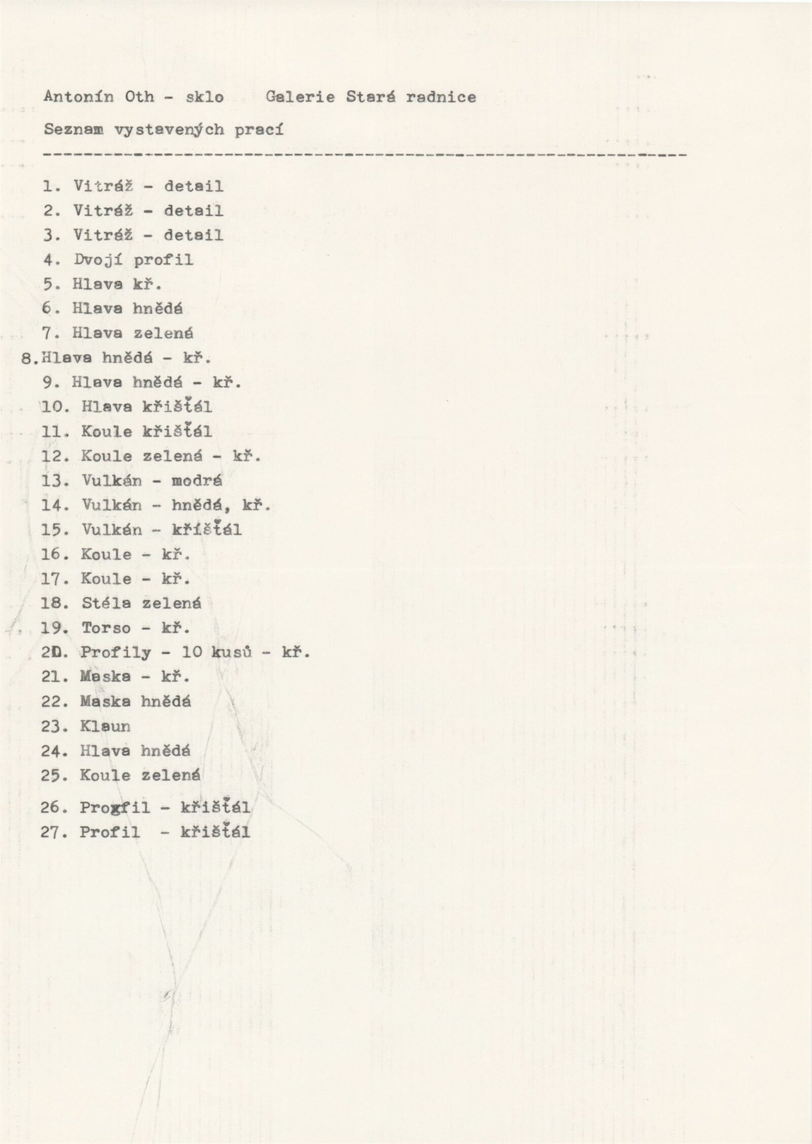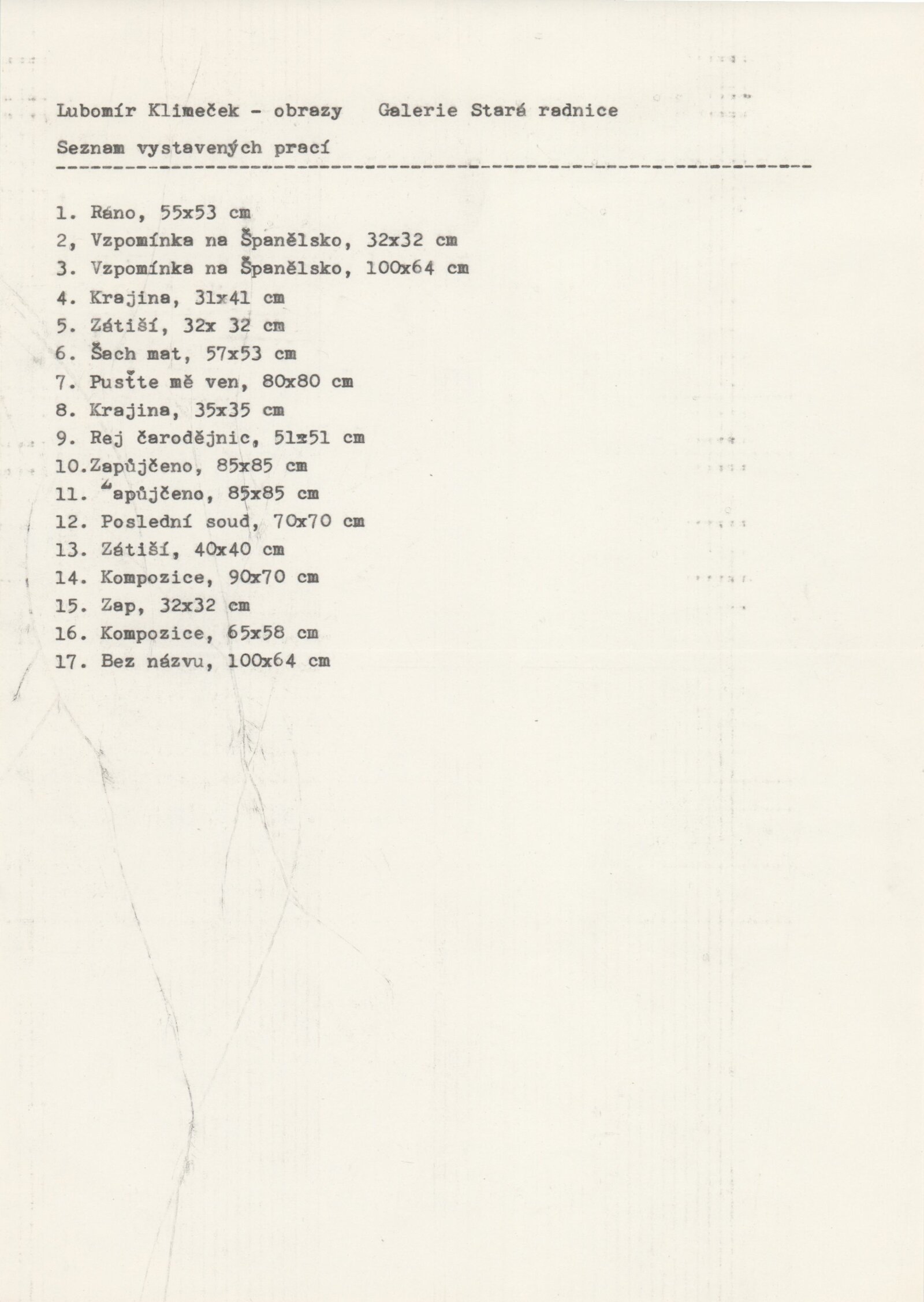 pozvánka - 2 verze, strojopis pro pozvánku, seznam vystavených děl