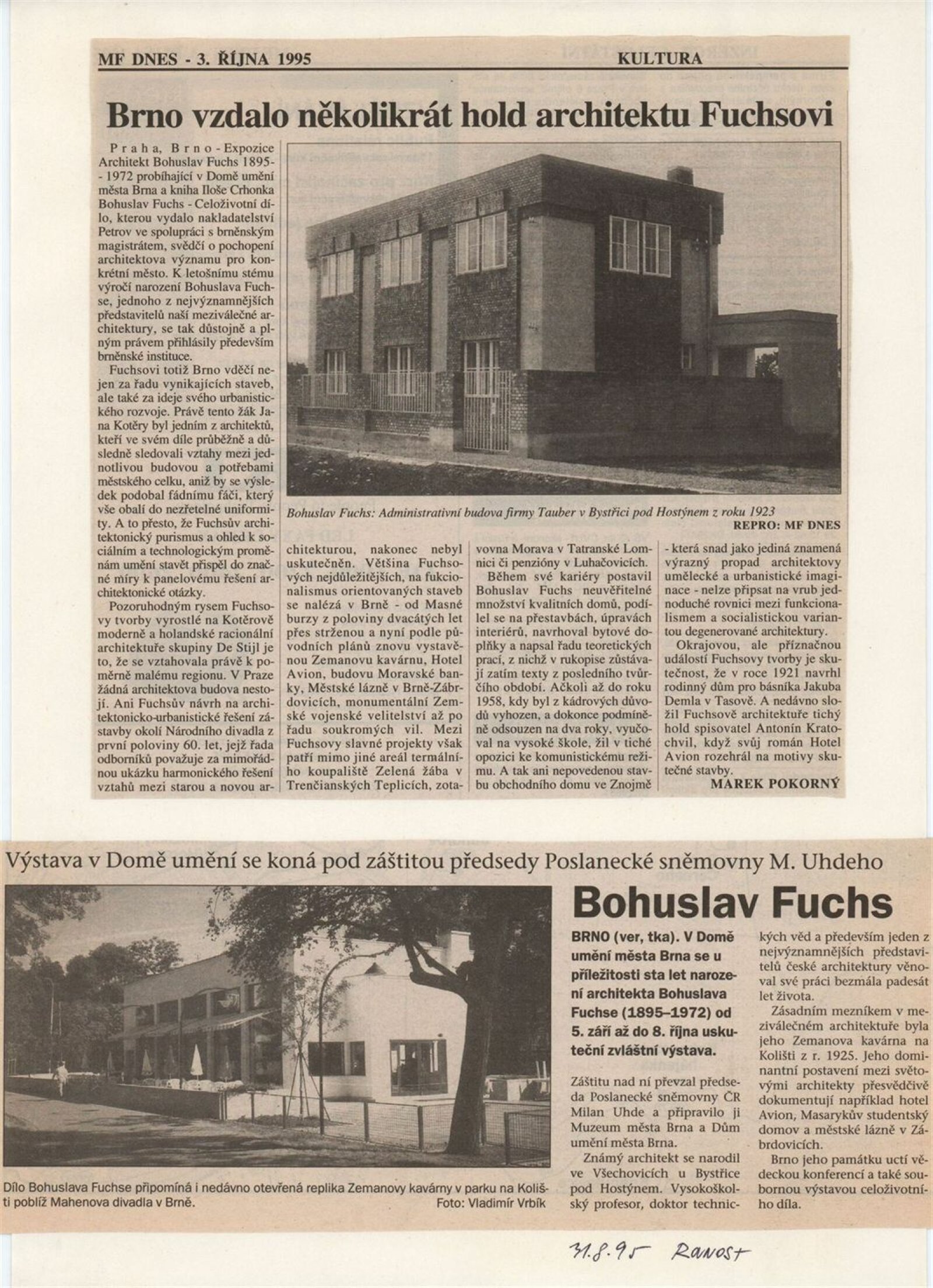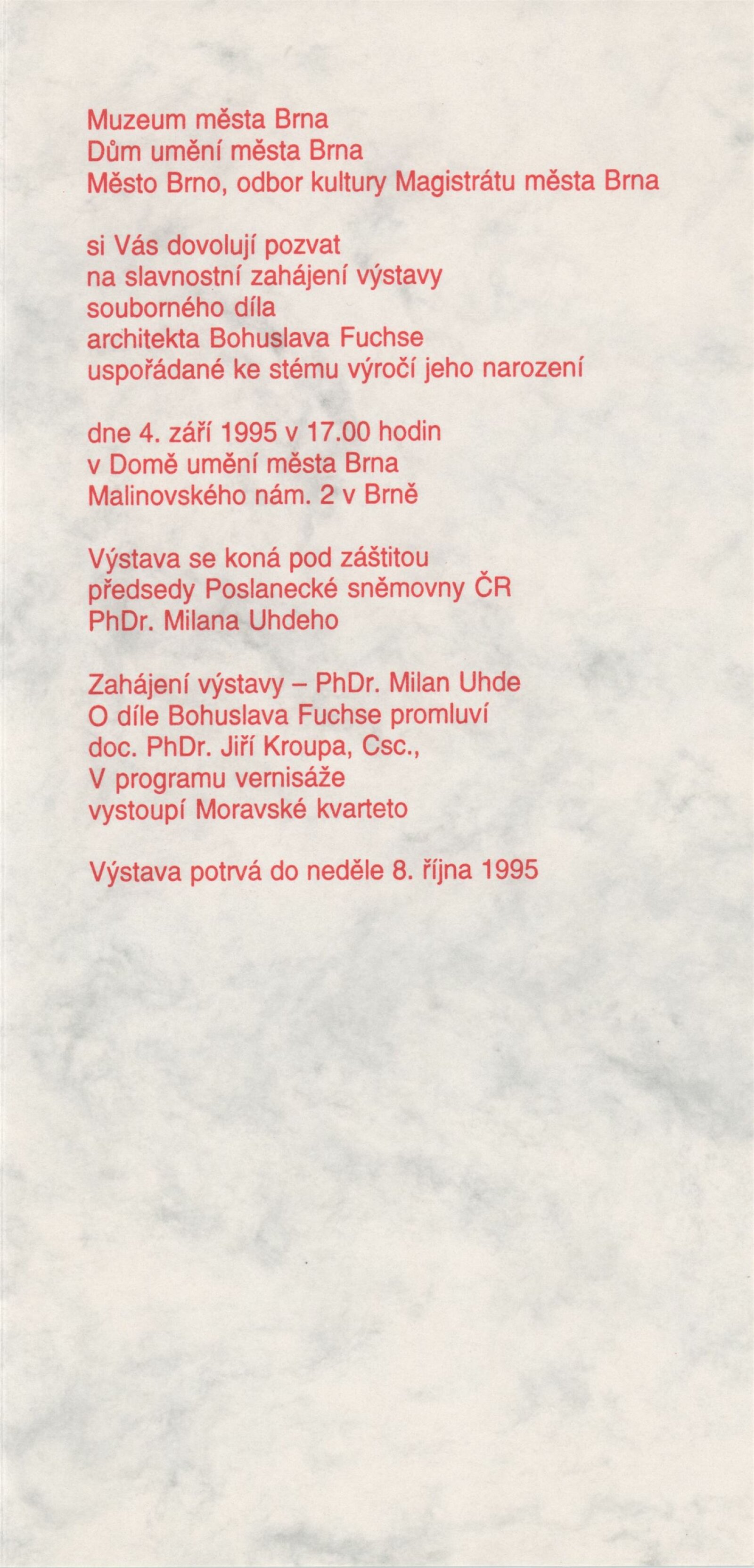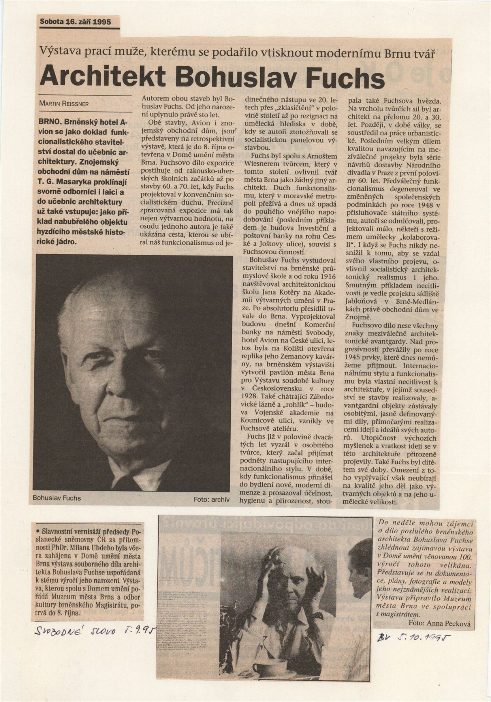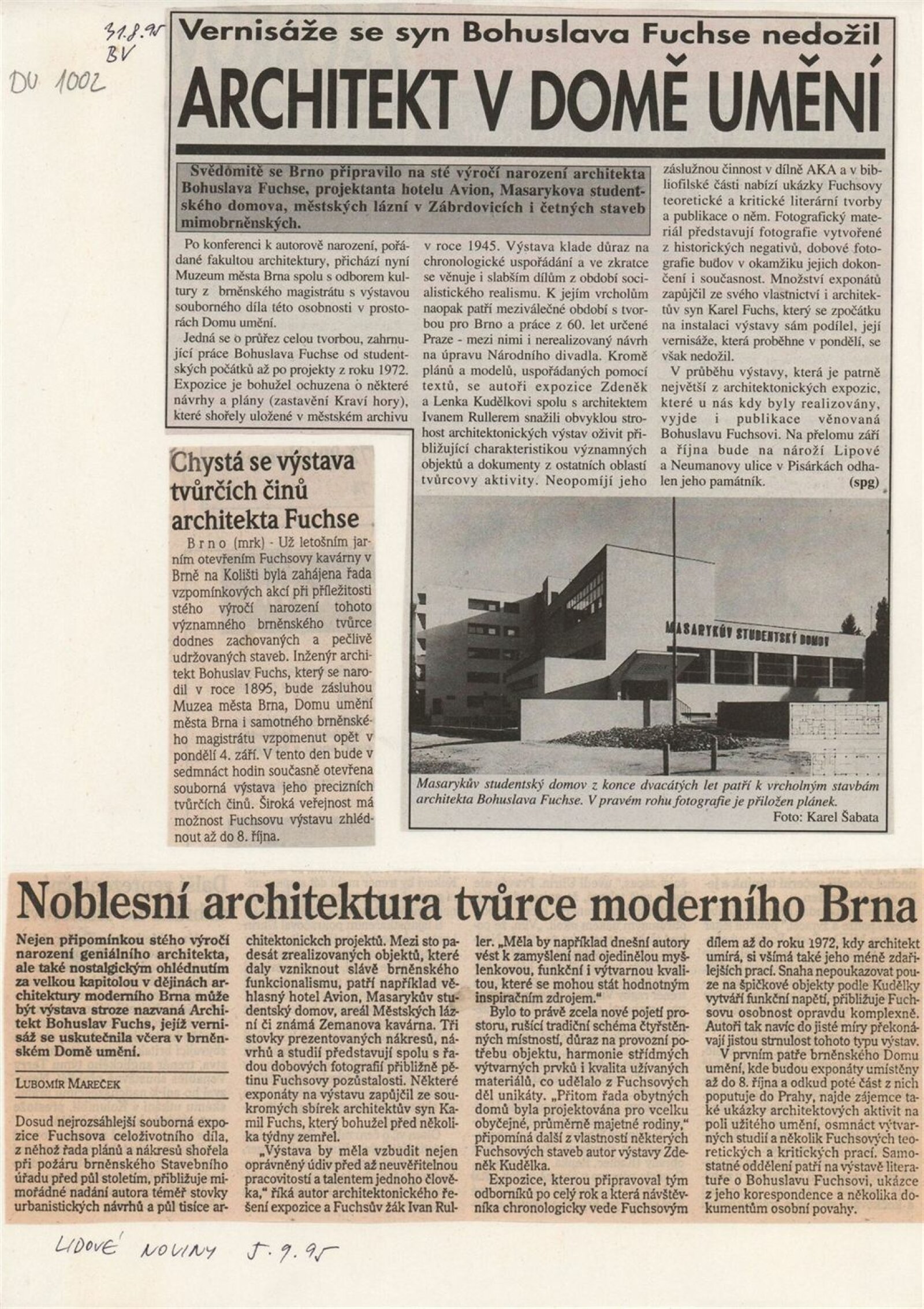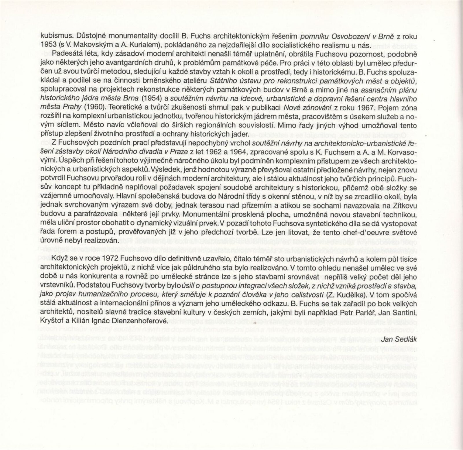 Architekt Bohuslav Fuchs. 1895–1972 / Dům umění města Brna 4. 9. – 8. 10. 1995 / Text Jan Sedlák. - Brno: odbor kultury magistrátu města Brna, - [60] s., obr. DU 1002