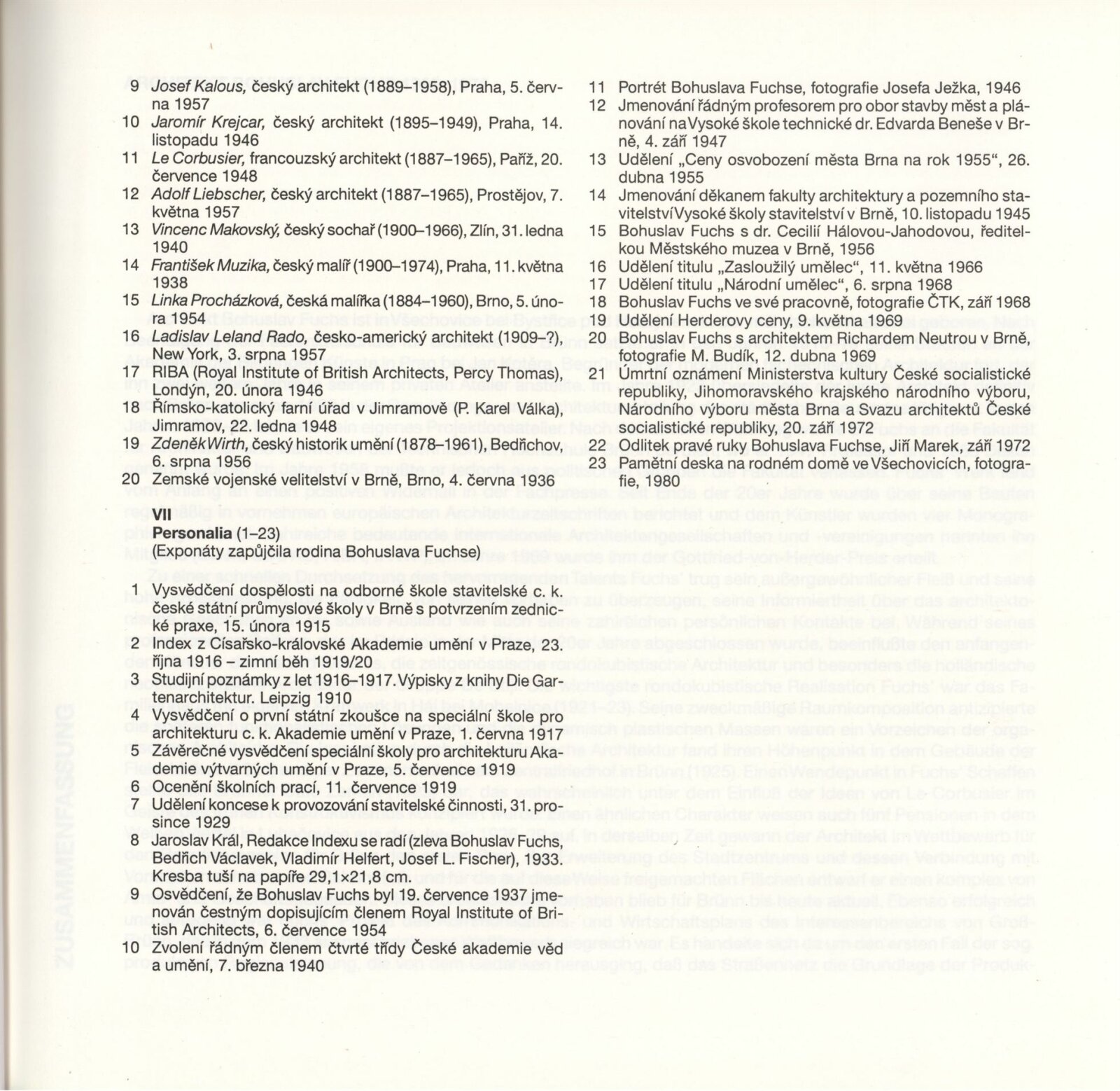 pozvánka, katalog, fotografie výstavy (DU exteriér), recenze v tisku, poznámky, digitalizovaný dokumentární film ČT - cyklus z filmových archívů STOPY, Ke 100. výročí narození architekta Bohuslava Fuchse