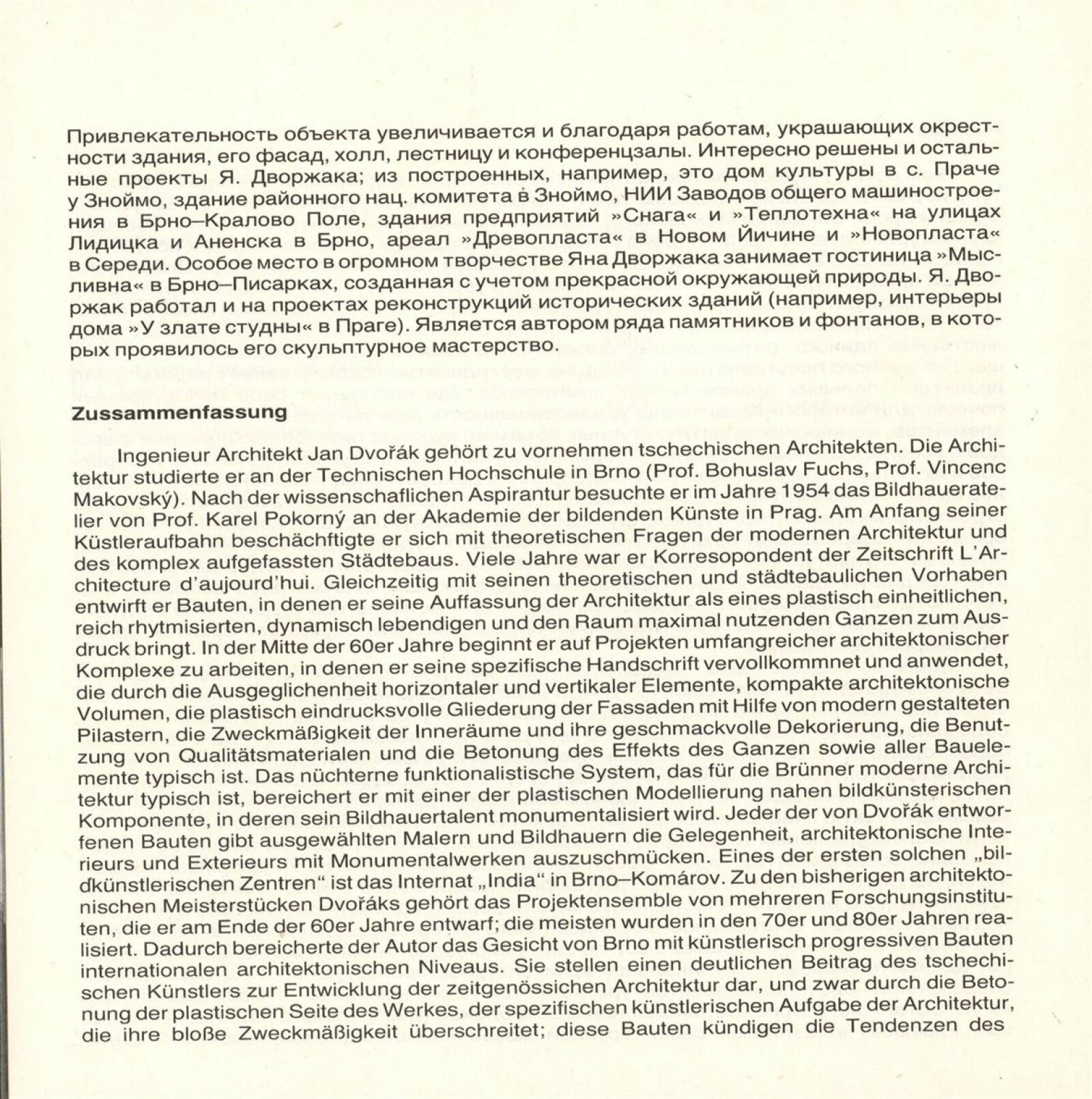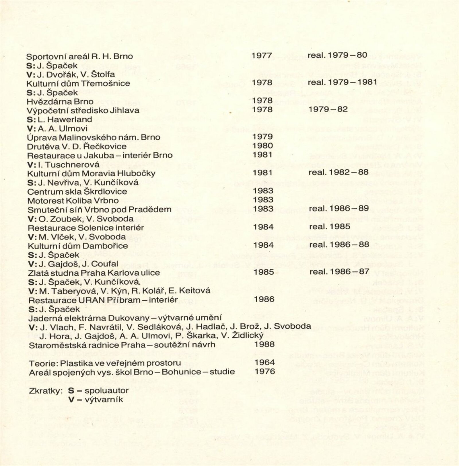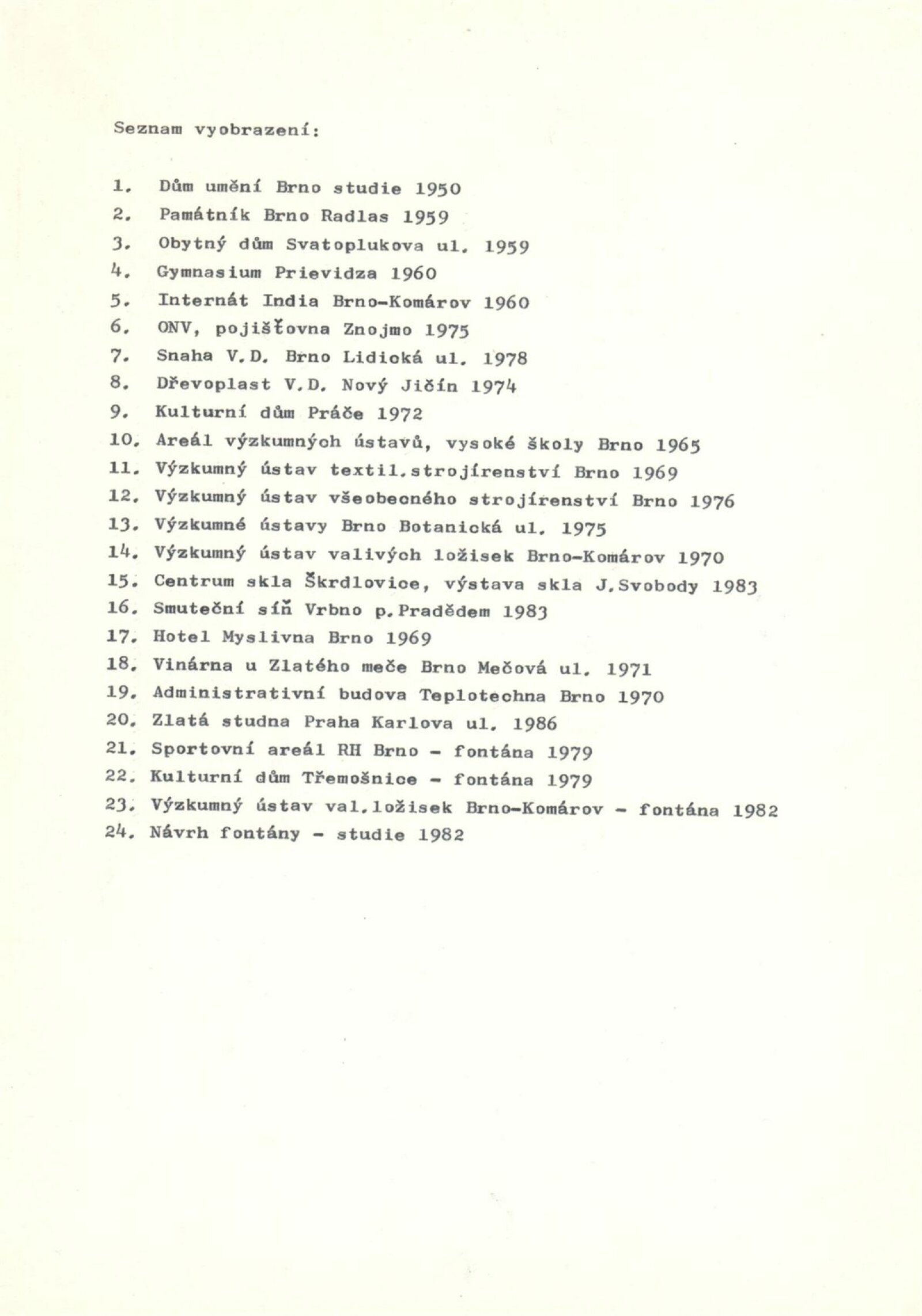 Architekt Jan Dvořák: Dům umění města Brna, hala, 5. 12. 1989 – 7. 1. 1990 / Text: Bronislava Gabrielová. – Brno: DUmB, 1989. – [34] s., obr., životopis, soupis prací, DU 876. – MZK; MG