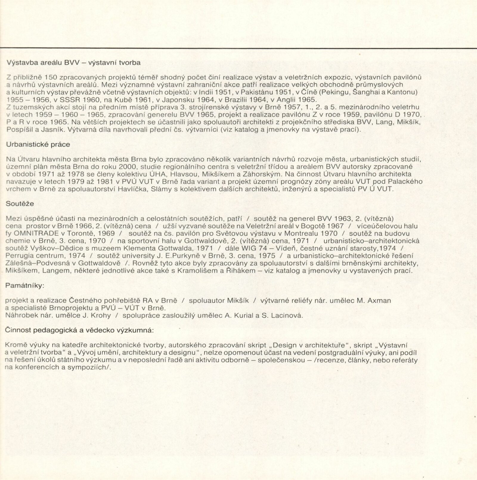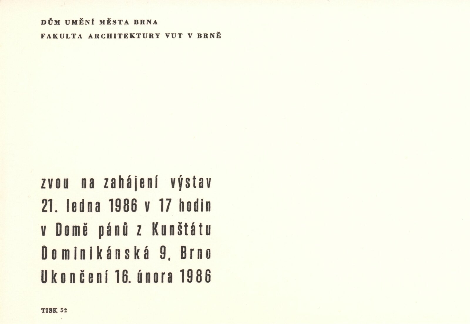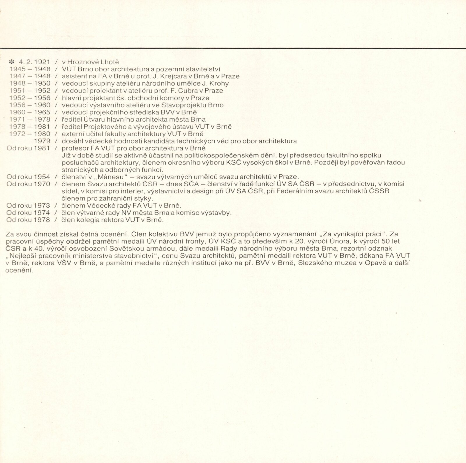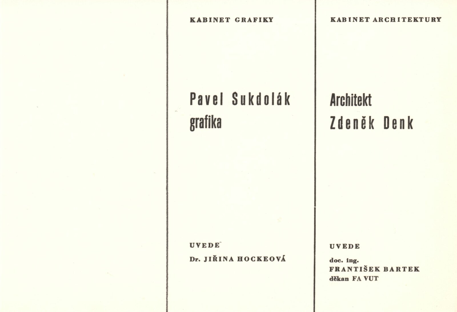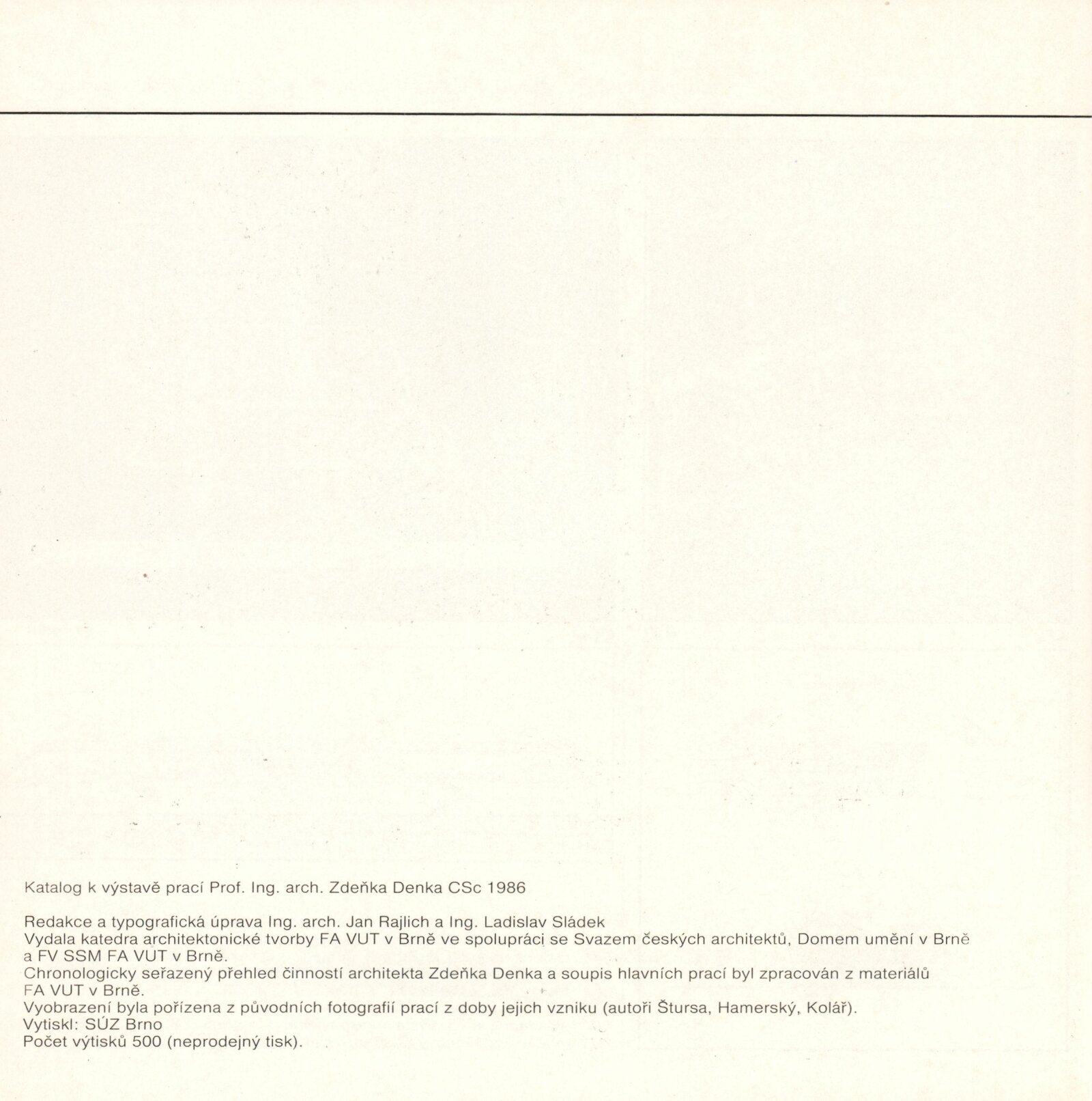 Architekt Zdeněk Denk. Katalog k výstavě prací: Dům umění / Dům pánů z Kunštátu, Kabinet architektury, 21. 1. – 16. 2. 1986 / Text: anonymní. – Brno: katedra architektonické tvorby FA VUT, 1986. – [36] s., obr., DPK 862