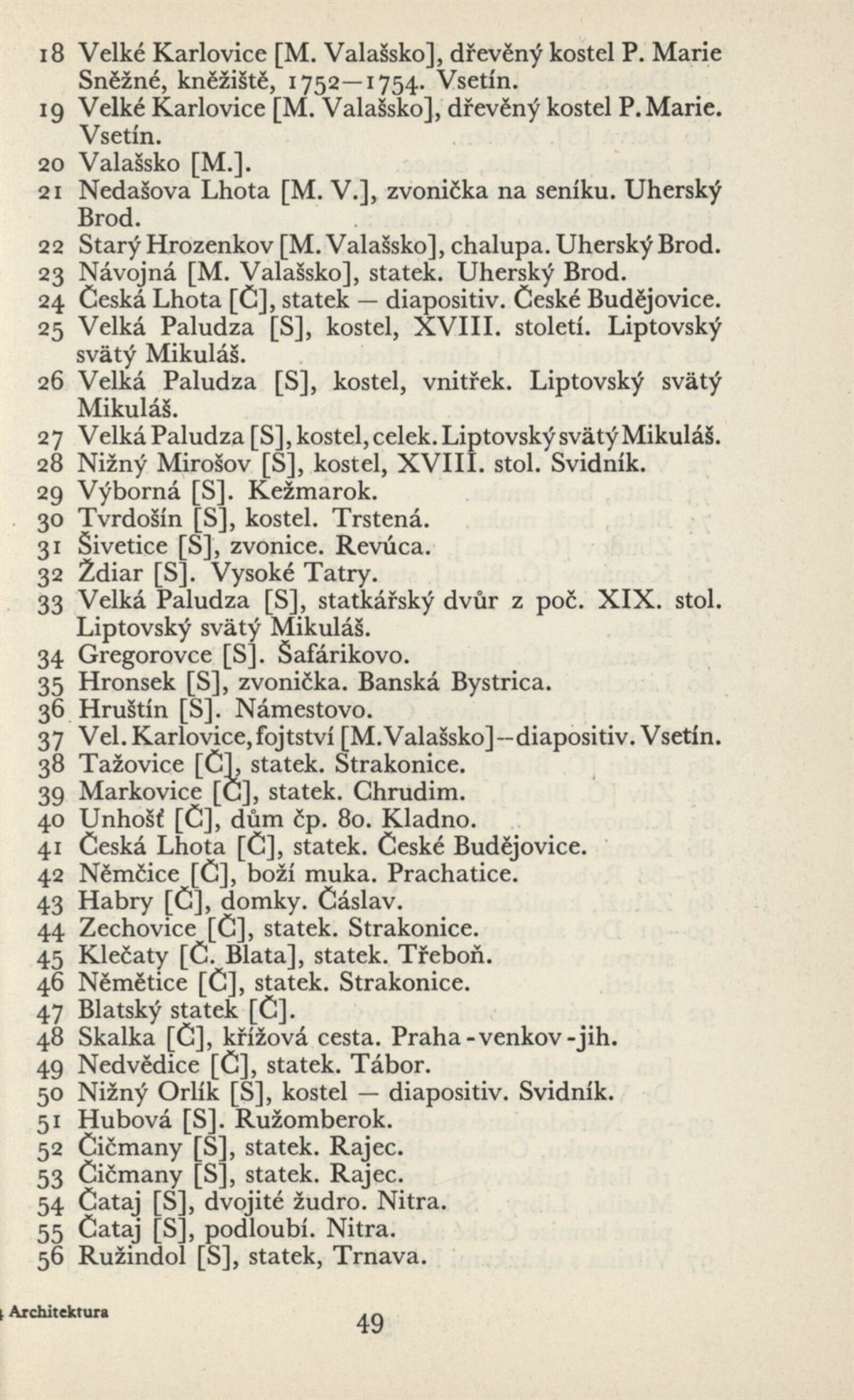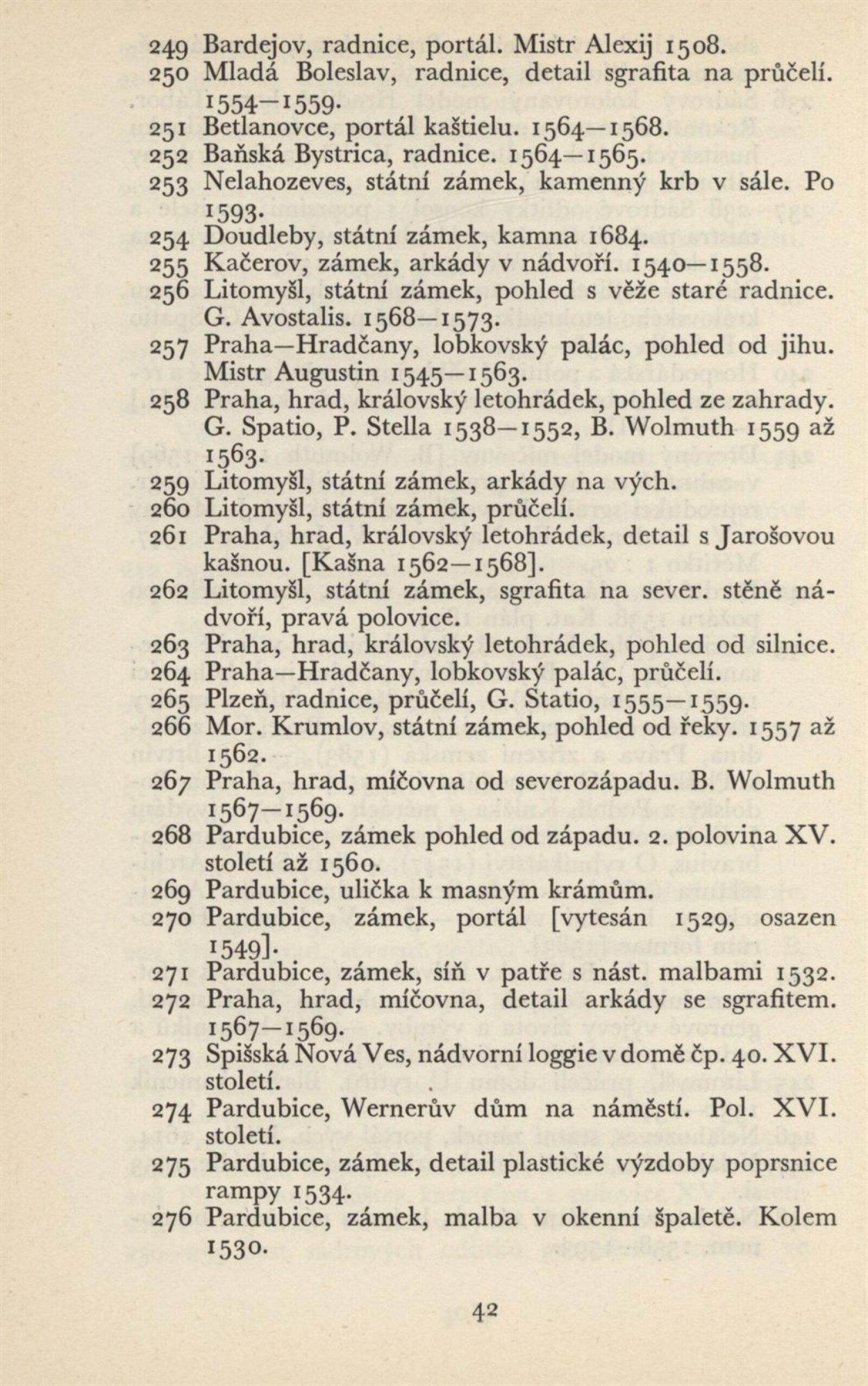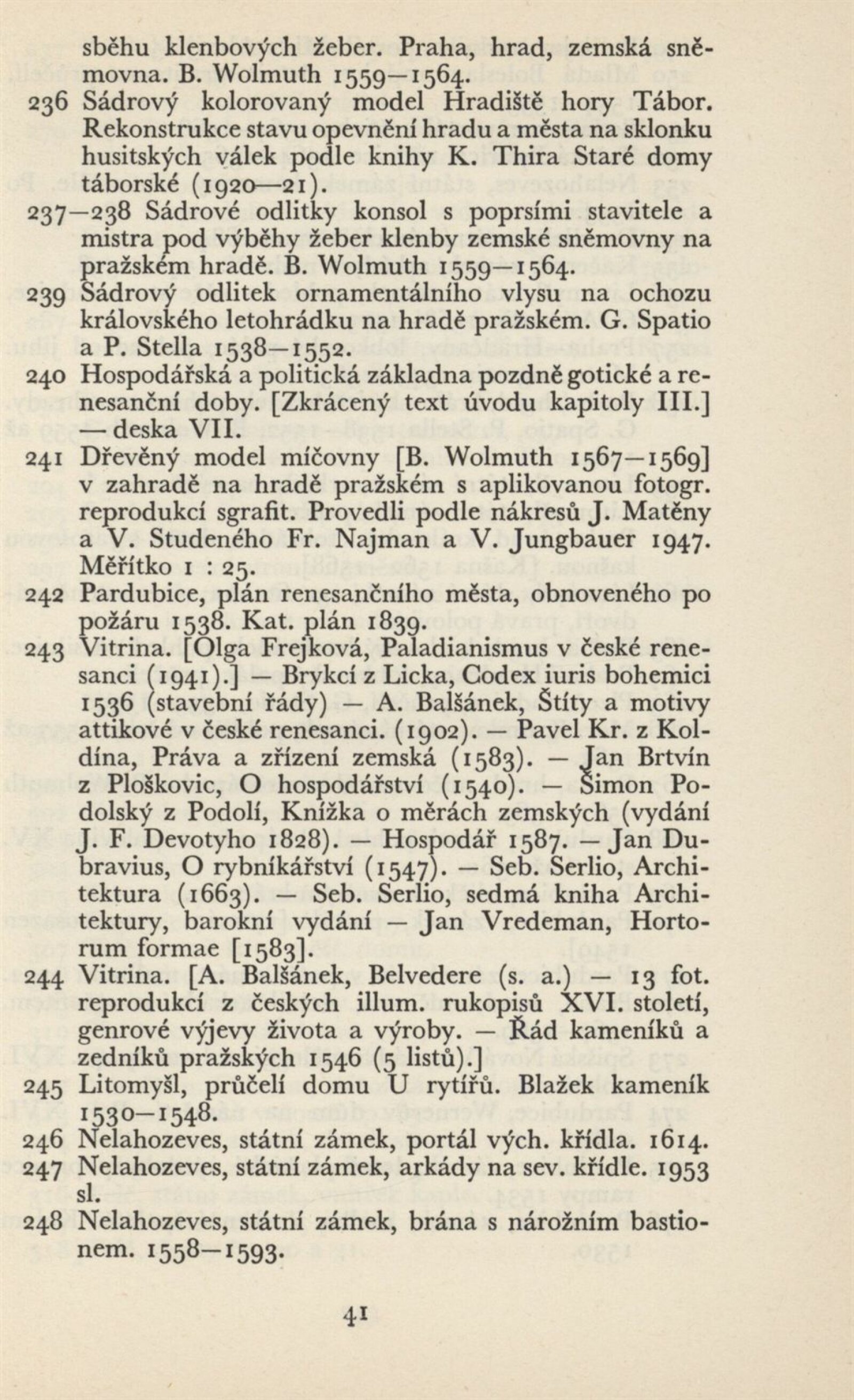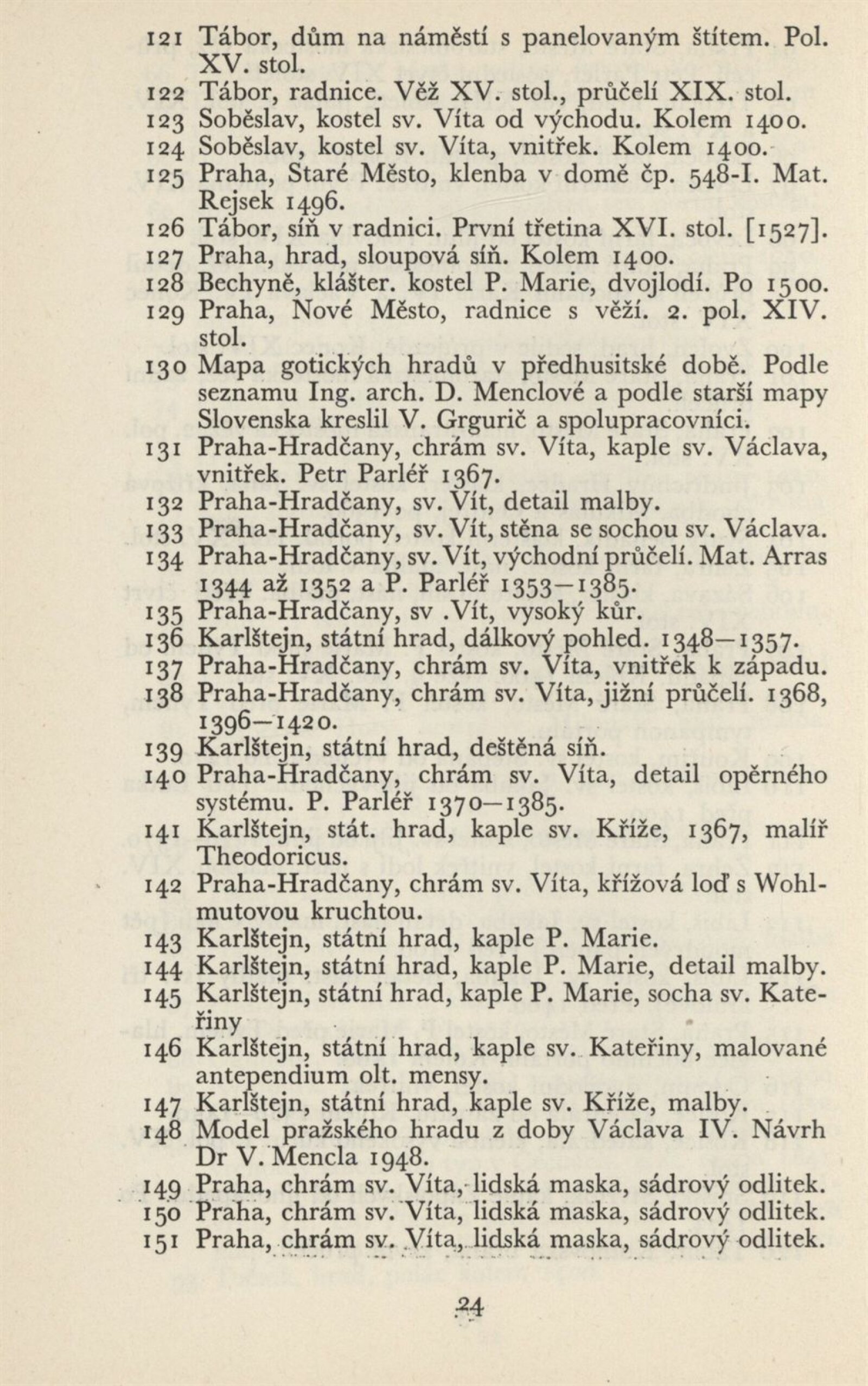 Architektura v českém a slovenském národním dědictví: Dům umění, 19. 9. – 2. 11. 1952 / Převzatý katalog. Architektura v českém a slovenském národním dědictví, palác u Hybernů, 1952 / Texty: Alžbeta Güntherová, František Kavka, Augusta Müllerová, I. Radkoš, Zdeněk Wirth. – Praha: Osvěta, 1952. – 90 s., 32 s. obr. příl., DU 177. – MZK; MG