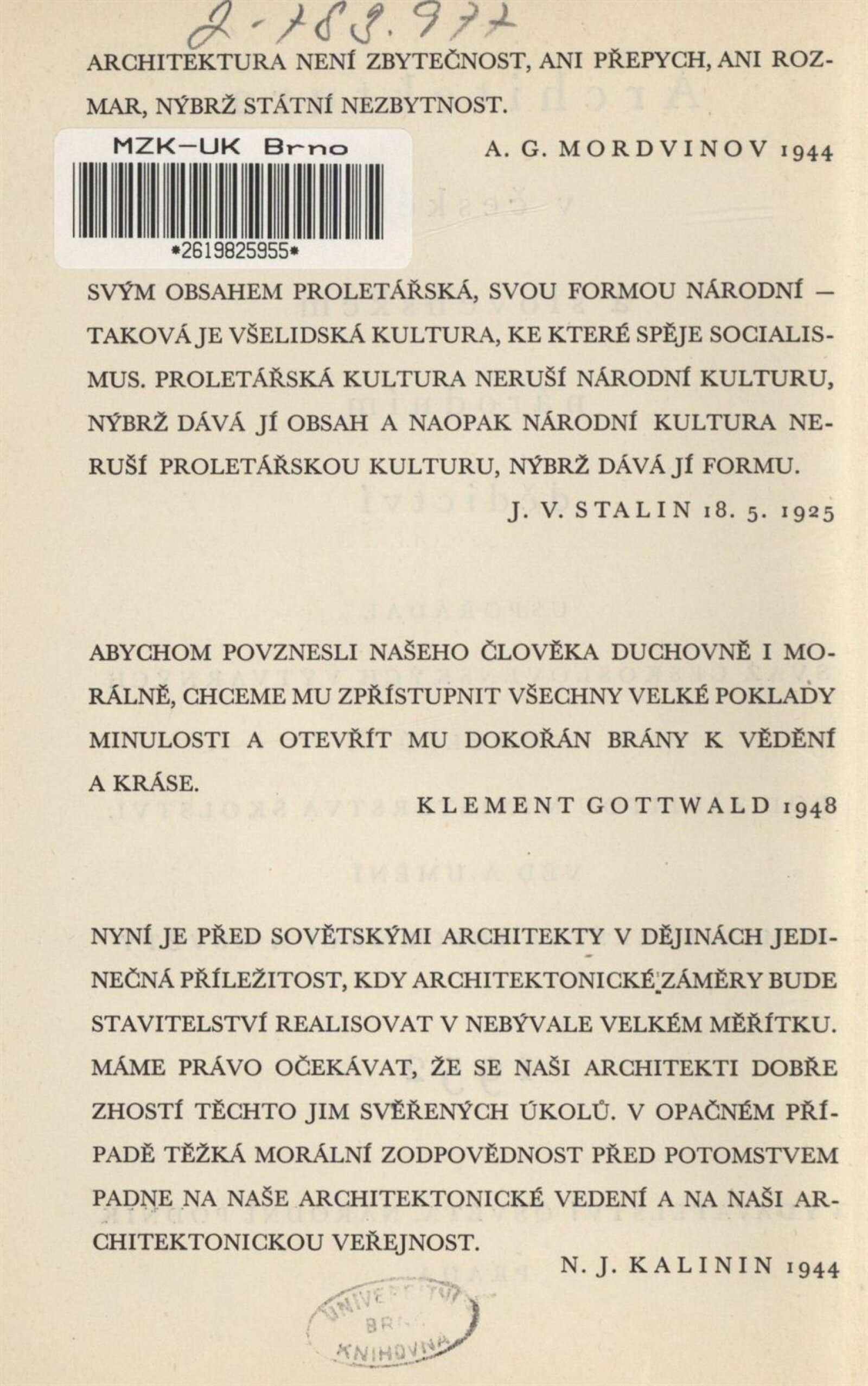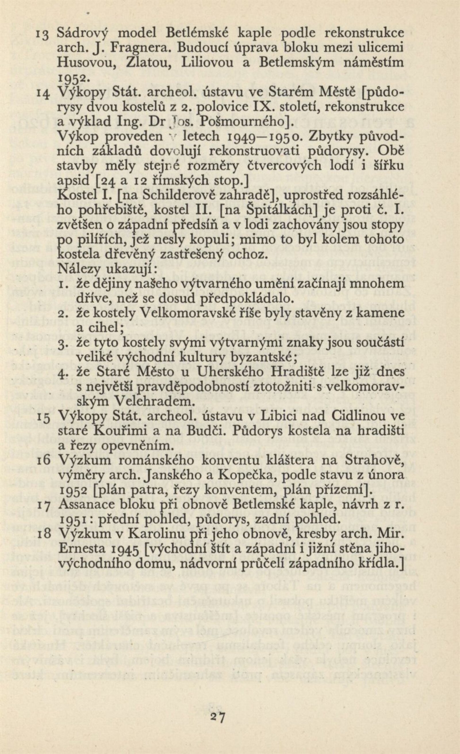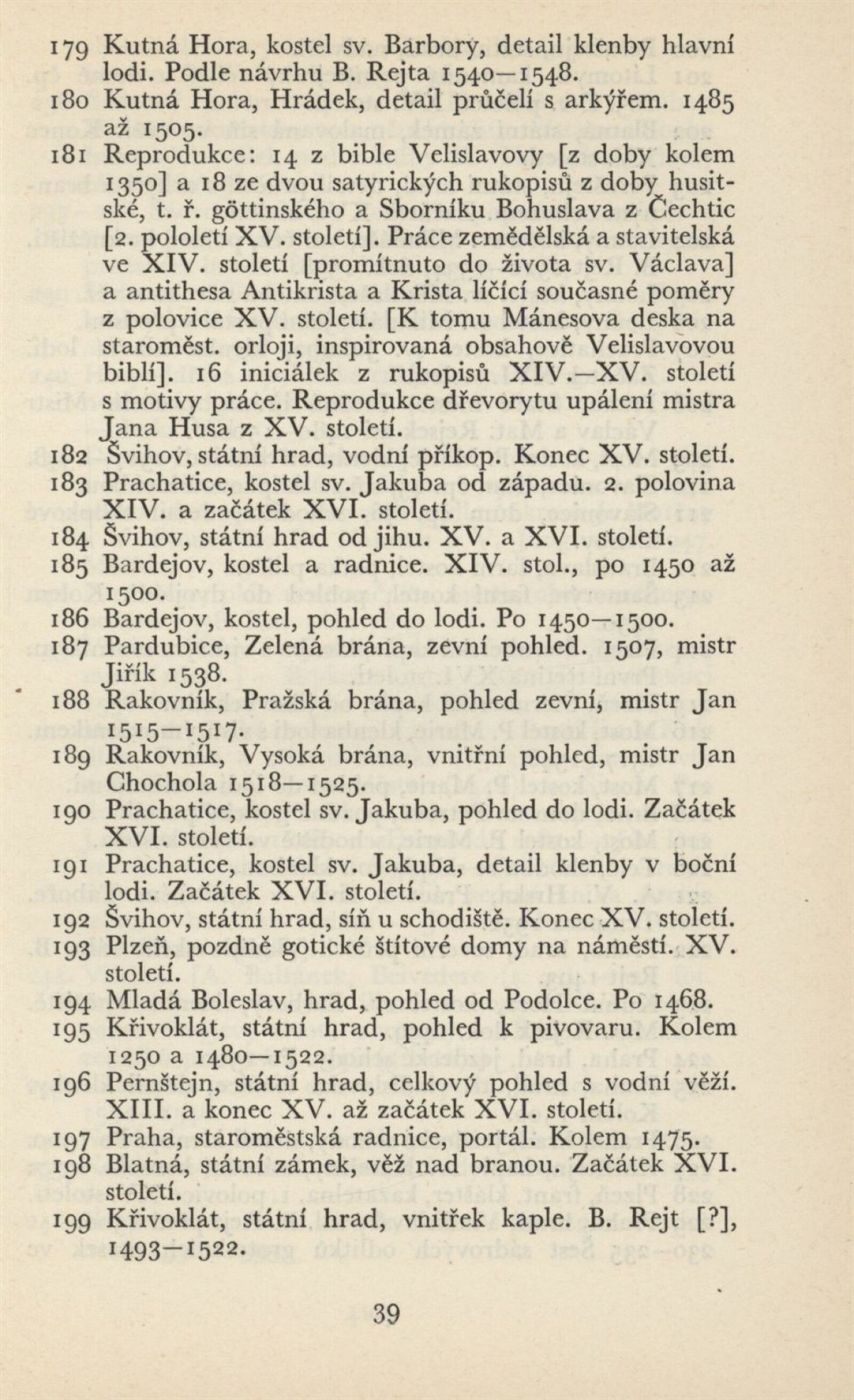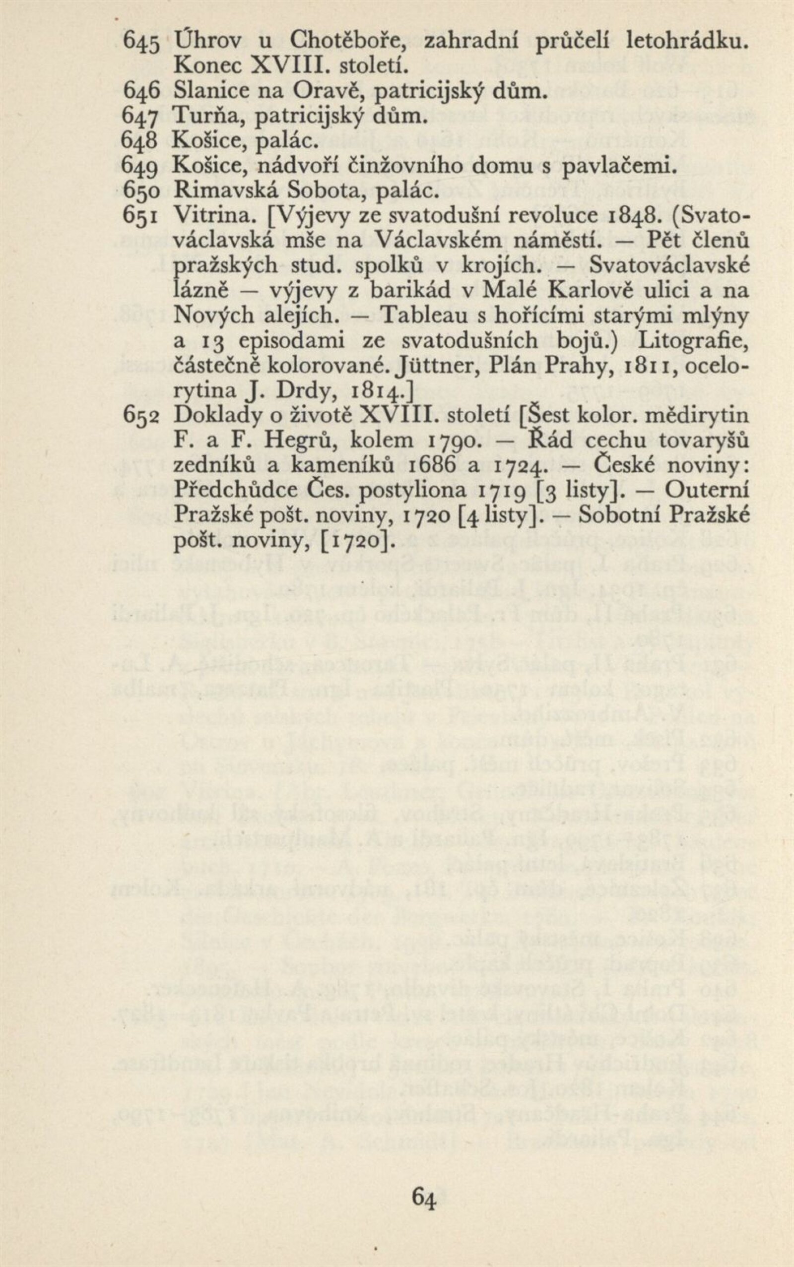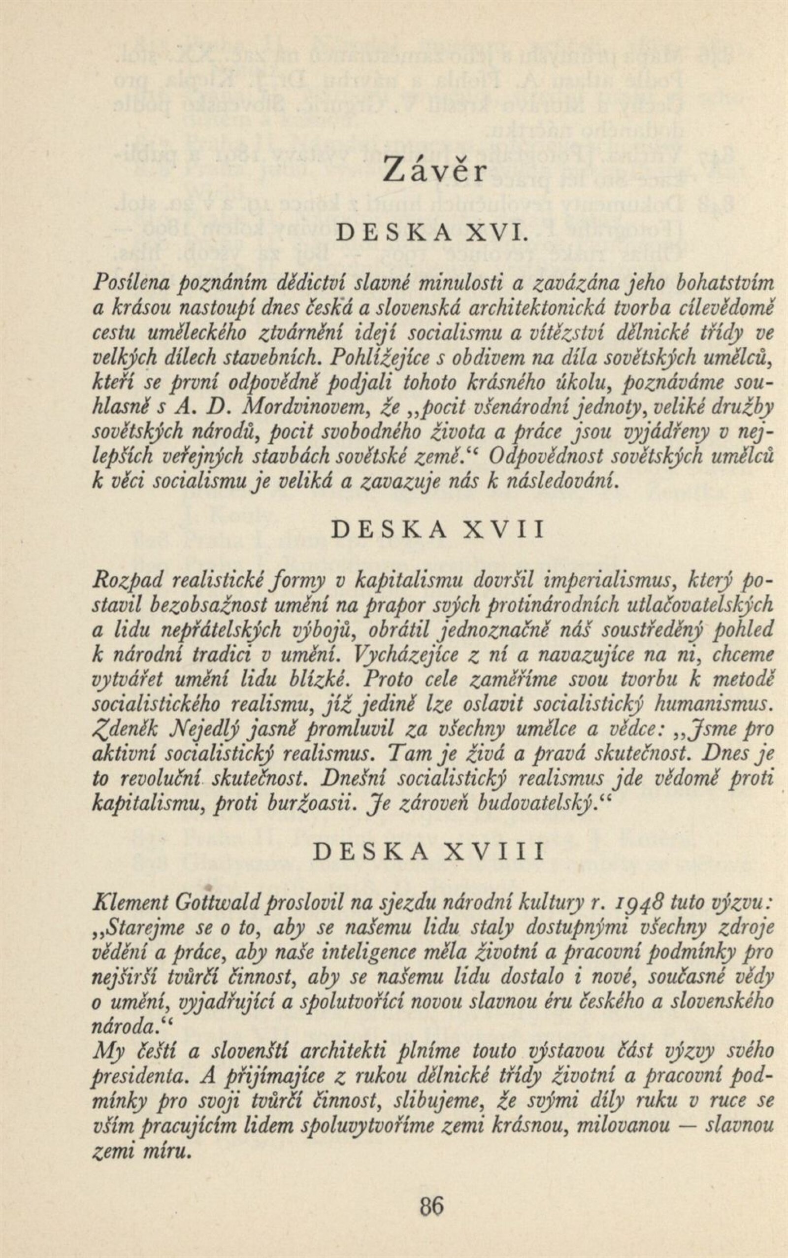 Architektura v českém a slovenském národním dědictví: Dům umění, 19. 9. – 2. 11. 1952 / Převzatý katalog. Architektura v českém a slovenském národním dědictví, palác u Hybernů, 1952 / Texty: Alžbeta Güntherová, František Kavka, Augusta Müllerová, I. Radkoš, Zdeněk Wirth. – Praha: Osvěta, 1952. – 90 s., 32 s. obr. příl., DU 177. – MZK; MG