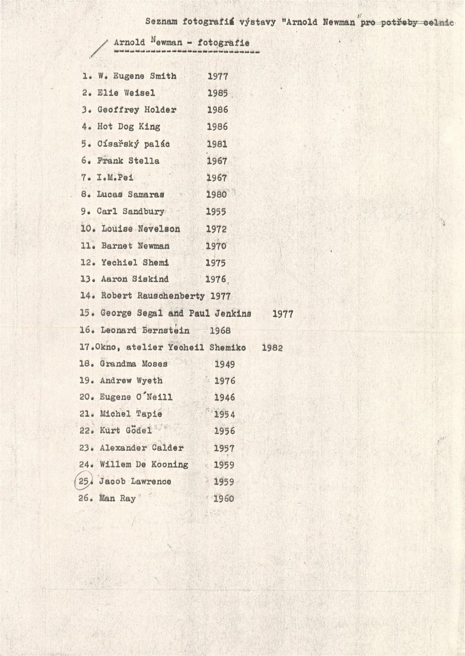 seznam fotografií výstavy, korespondence - DU a velvyslanectví USA v Praze, potvrzení o povolení výstavy, potvrzení o převzetí (Galerie hlavního města Bratislavy - 1990, Galerie hlavního města Prahy - 1989), recenze v tisku, pozvánka na výstavu v GHMP
