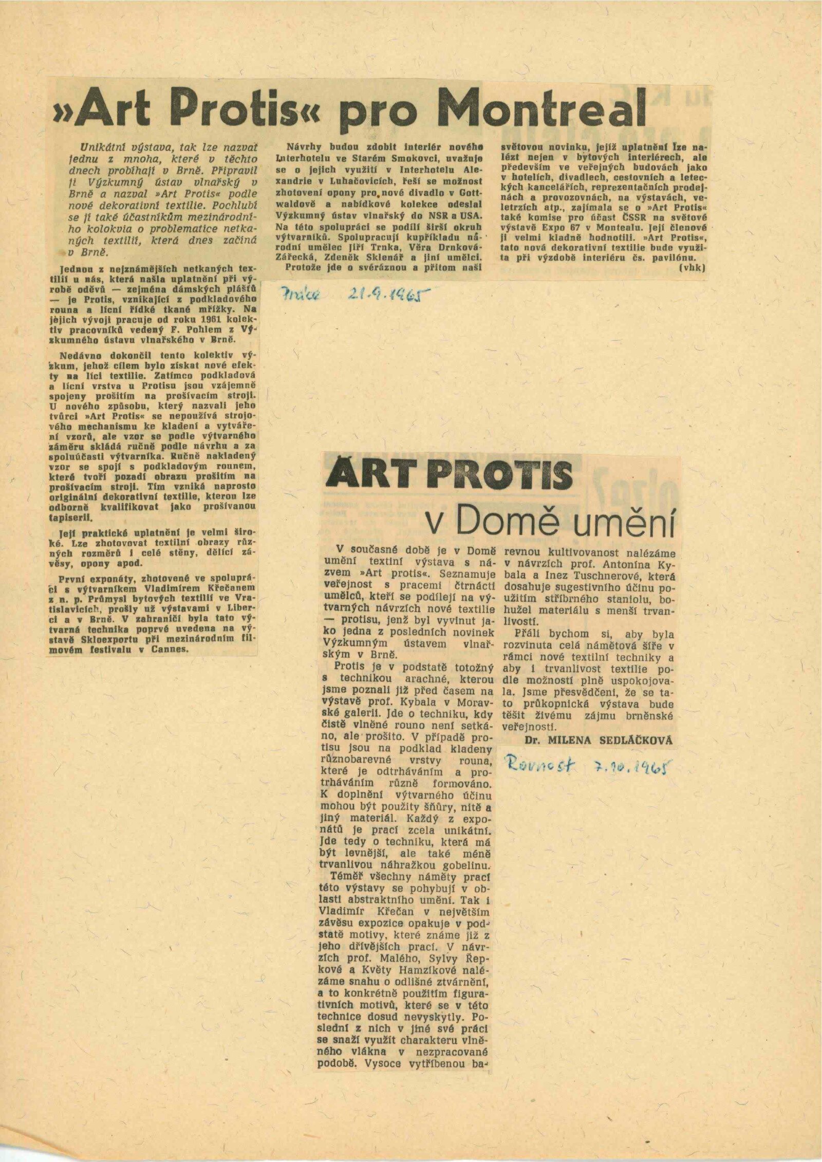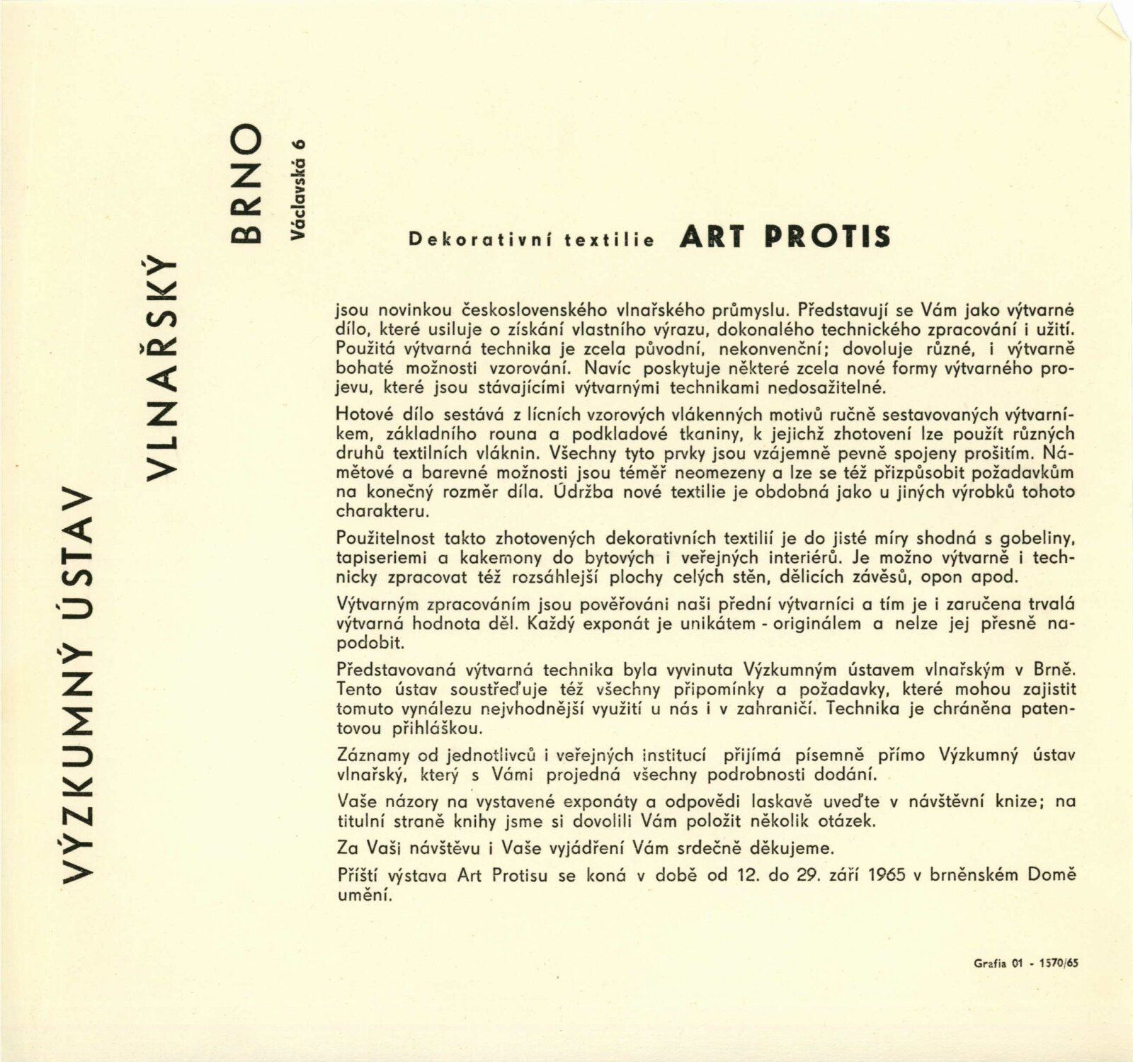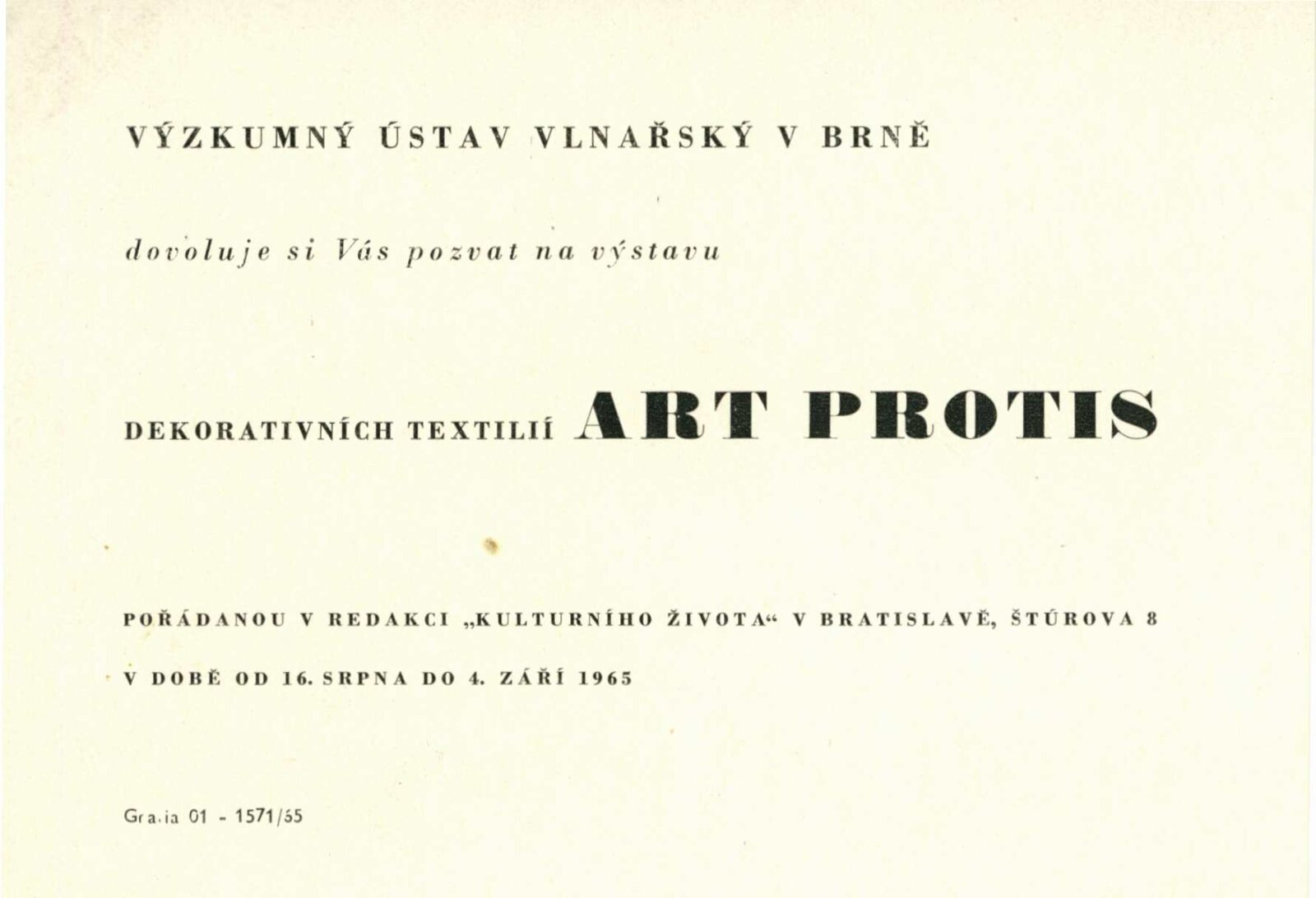 pozvánka, text o art protis, recenze v tisku, pozvánka na výstavu v Bratislavě