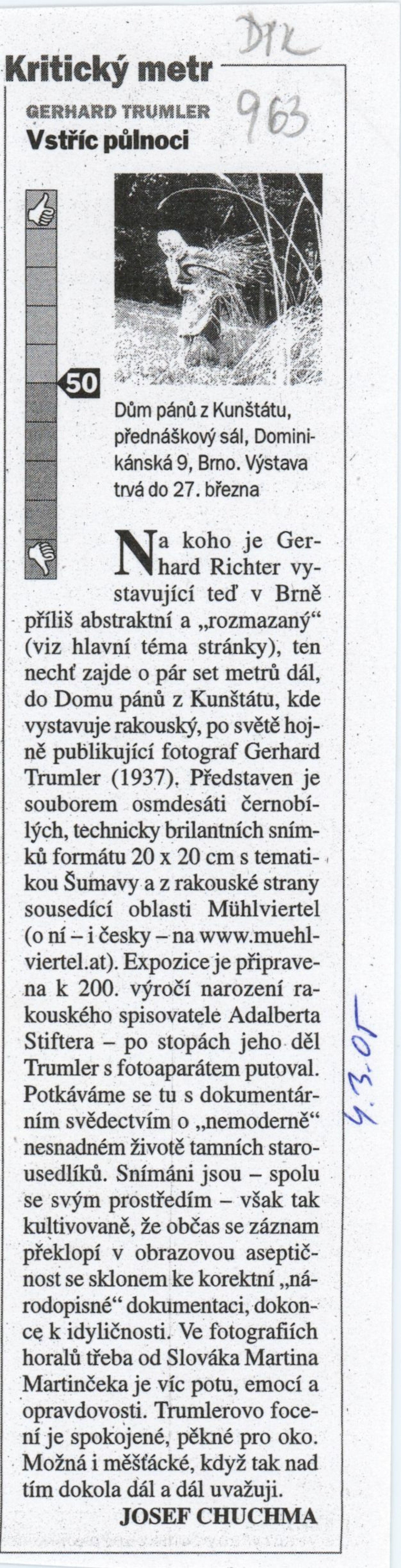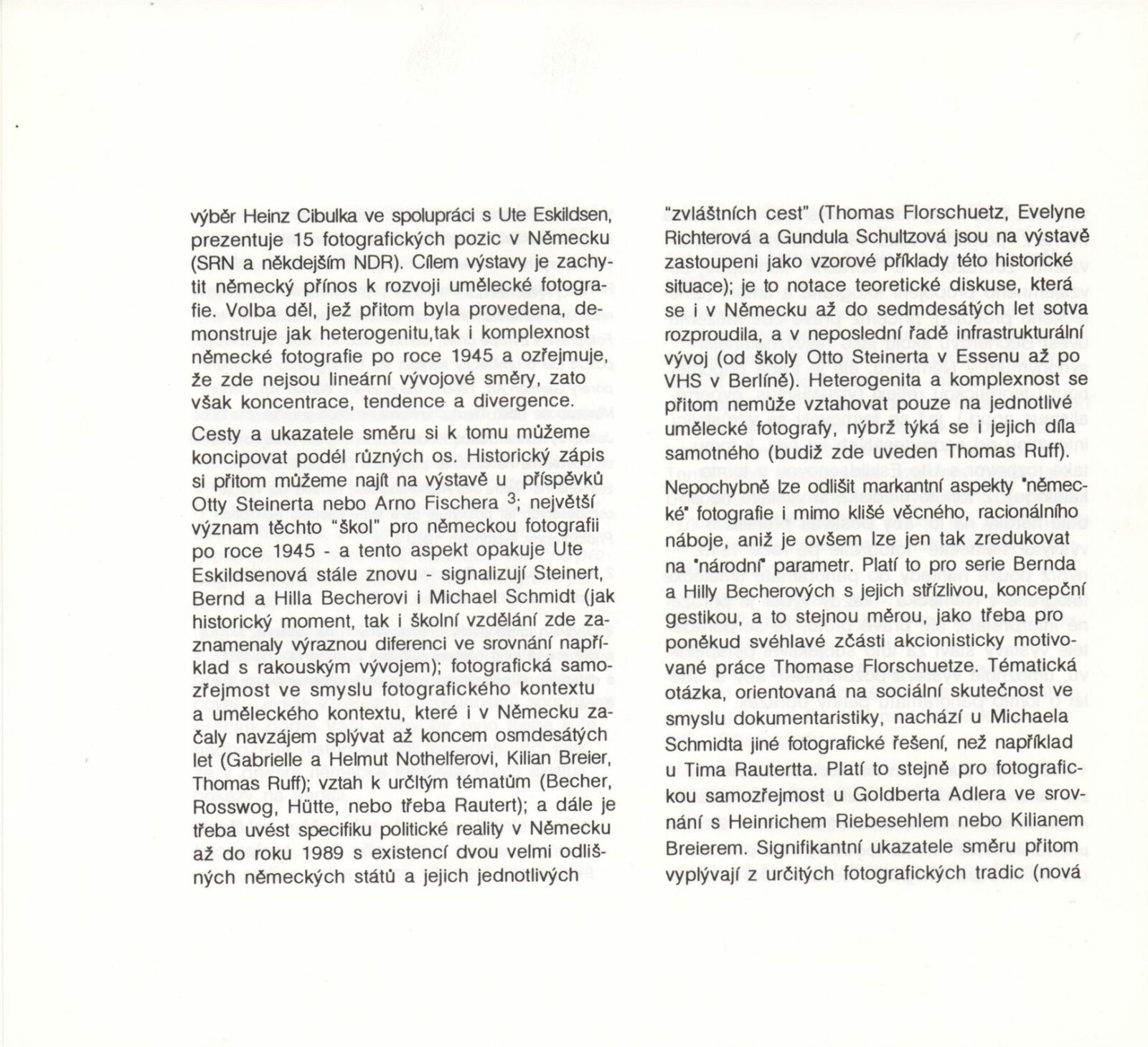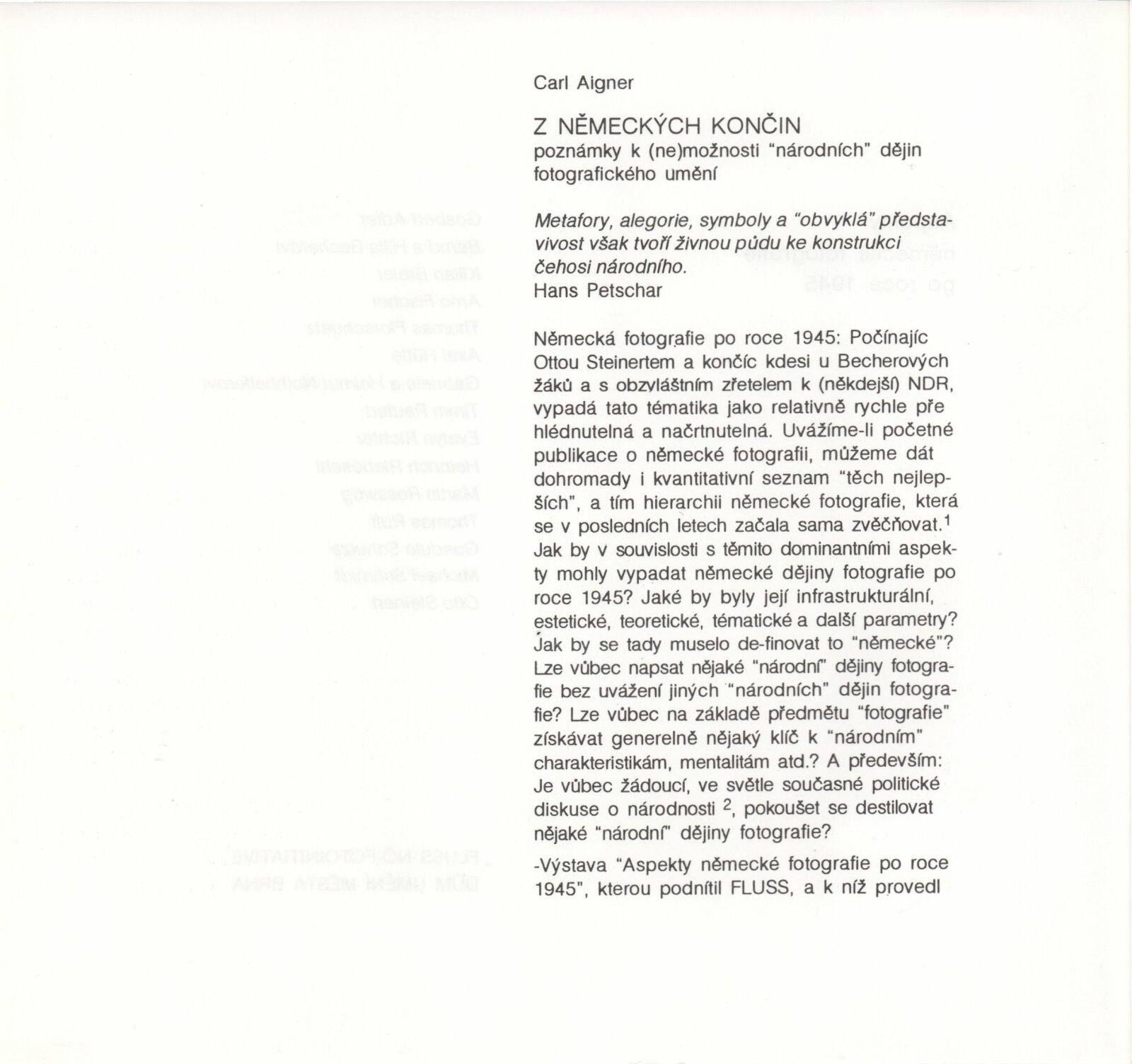 Aspekty německé fotografie po 1945: hala DU 8. 3. – 3. 4. 1994 Převzatý katalog Aspekte deutscher Fotografie nach 45 / Texty Carl Aigner, Ute Eskildsen. - Wien: FLUSS NÖ-Fotoinitiative - [82] s., obr., jako vložka český překlad textů Aspekty německé fotografie po roce 1945 [8] s. DU 963