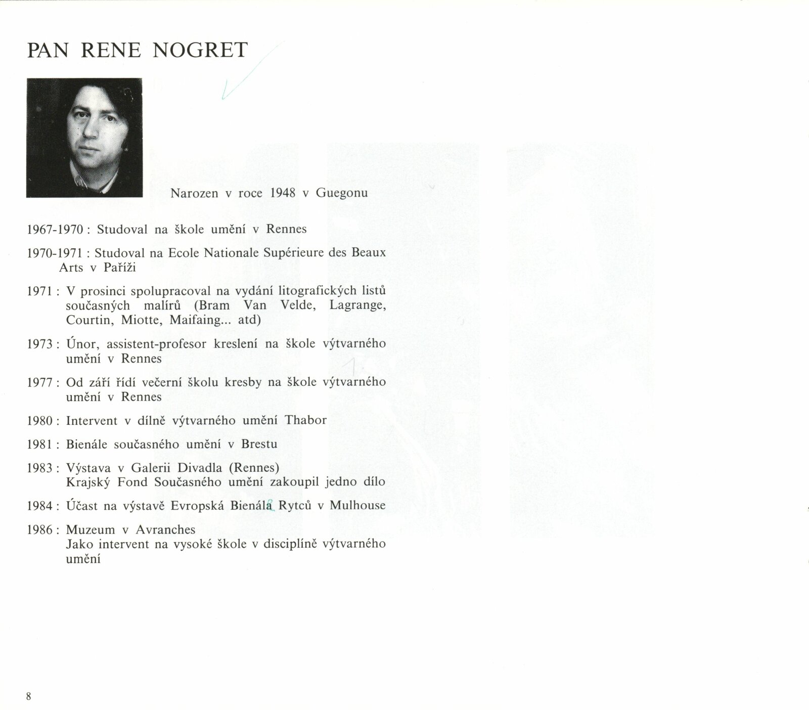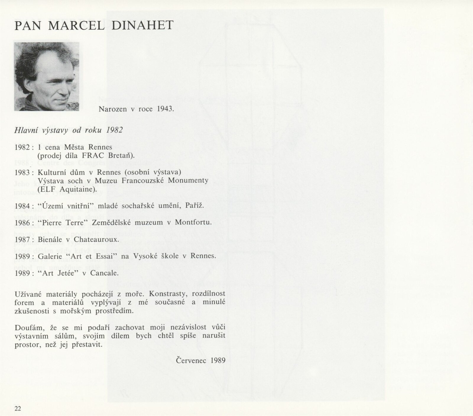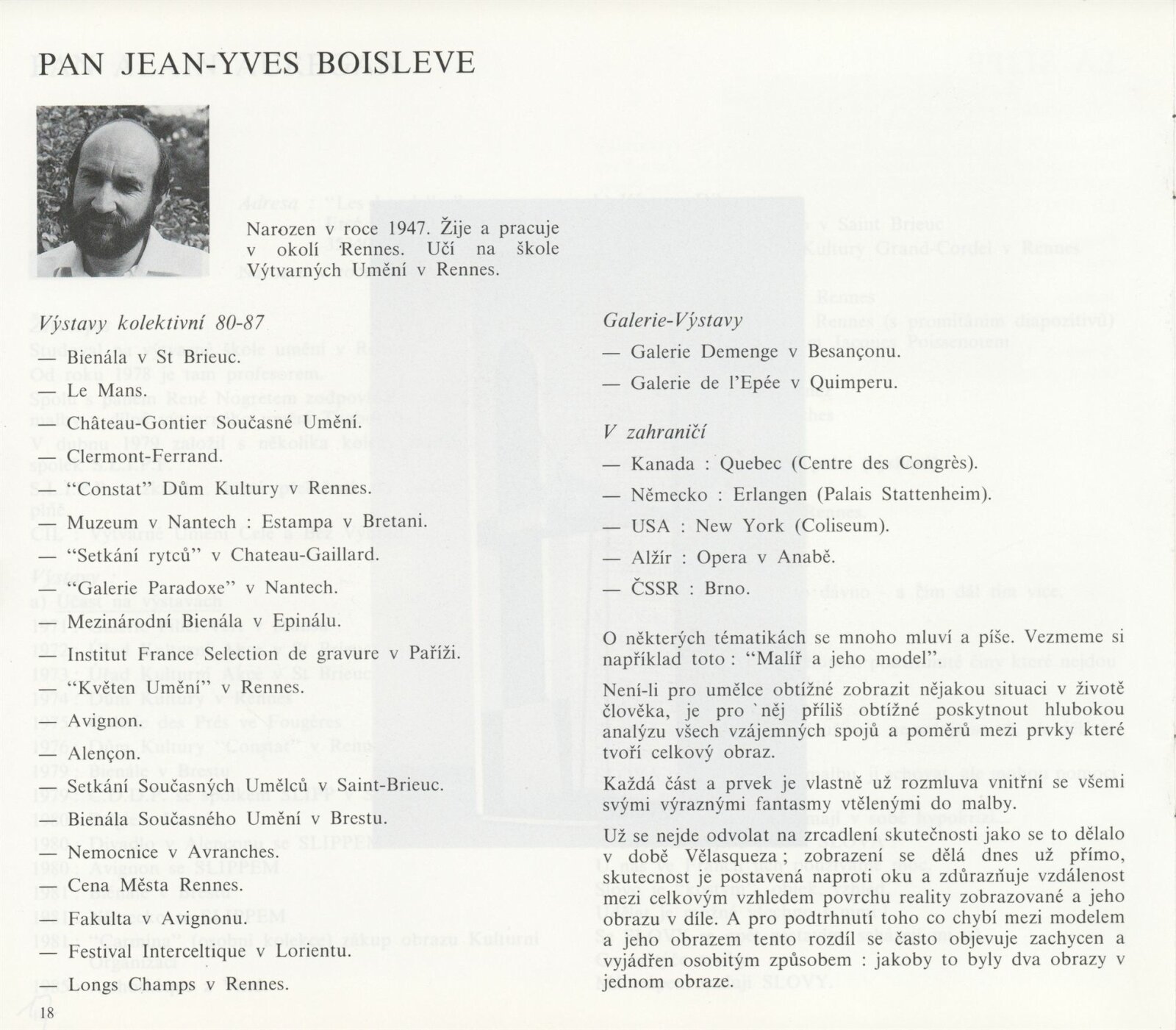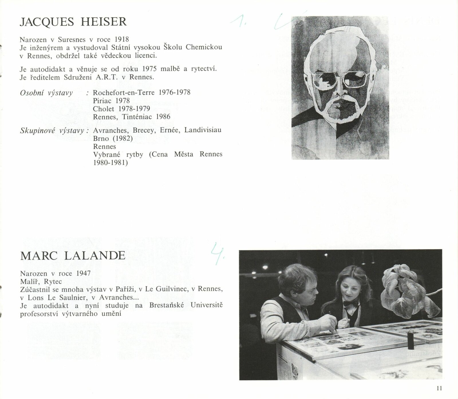 Pozvánka (5 ks, Thabor 2 ks, S.L.I.P.P), katalog (2 ks, Umělci z Rennes - dohromady oba ateliéry), plakát (2 ks), strojopis pozvánek (2 ks), pozvánka na tiskovou konferenci (strojopis), fotografie z vernisáže, seznam exponátů výstavy (ručně), pojistný seznam (FR), korespondence, zápisy o přípravě výstavy, rozhodnutí o konání výstavy, seznam vystavujících umělců (FR), recenze v tisku, poznámky k výstavě, informace o Atelier du Thabor, katalog La S.L.I.P.P (1981)