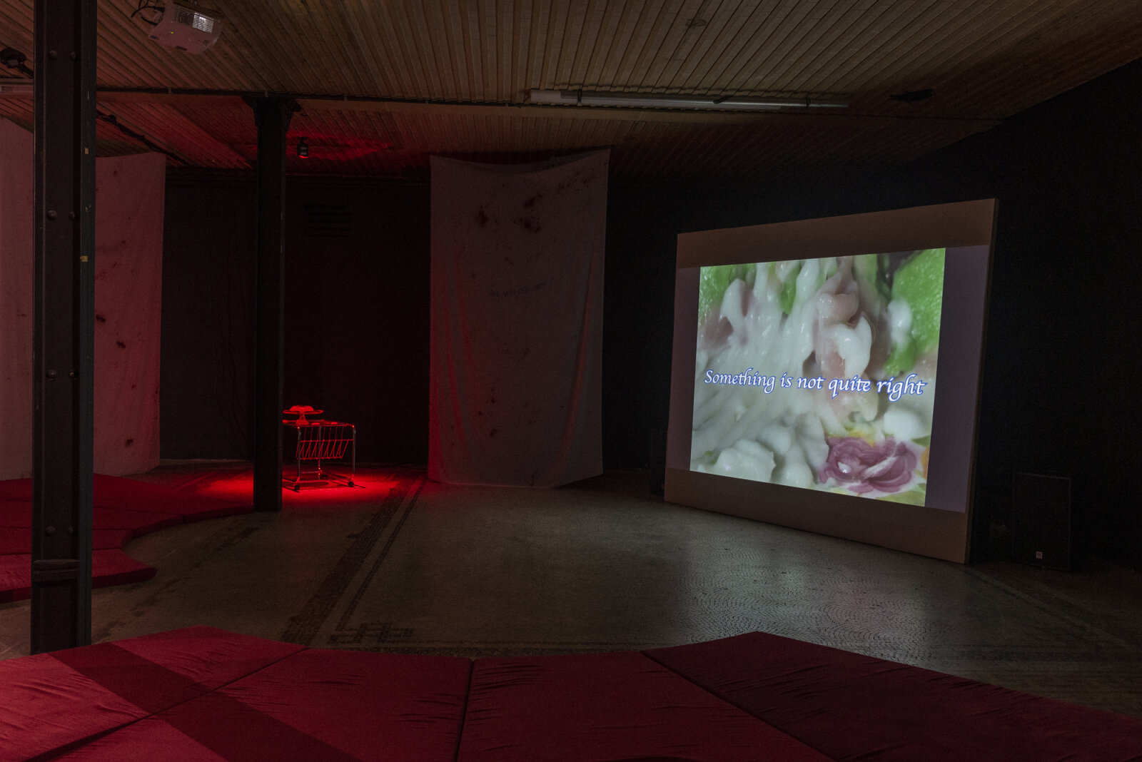 Návyková moc internetu je fakt a nikdo to neví líp než Aurélie Bayad. V postinternetovém světě, v němž se IRL čím dál tím víc překrývá s URL, prosakují nové možnosti bytí do našich běžných životů. Bayad ve své mnohostranné praxi využívá video, fotografii nebo performance, aby nás konfrontovala s chaotickými a špinavými touhami a myšlenkami našich hypereálných (co je reálné?) identit, pečlivě vykonstruovaných k naplňování nových životních pravidel a očekávání ustavených v digitálním prostředí falešných lajků a dark webové erotiky. Bayad používá kameru, své tělo jakož i těla ostatních a subjektivně laděné texty k vytváření nového estetického jazyka vyjadřujícího tužby současné kultury. Na pozadí pečlivě vystavěných prostředí – slizkých a mazlavých, škaredých a nechutných, laciných a třpytivých – postupně odkrývá charakter subjektů svých fotografií a filmů (často sama sebe). Schovává přitom tyto protagonisty za měkce nostalgické odstíny kýčovité vizuality 80. a 90. let, skládá své filmy z těkavě nepravidelných a extatických sekvencí, dává jim srdcervoucí soundtrack, a nebojácně hledí zpátky do objektivu, jako by se ptala: ‘Jaká je tvá opravdová osobnost? Co je opravdová krása? Po čem doopravdy toužíš, jaký je tvůj fetiš? Koho chceš, abych viděla?’ Se svými nadpozemskými normami krásy, vyvrhnutým a vyhřezlým, avšak pestrobarevným nakládání s jídlem a dalšími substancemi denního užitku, s jejími upřímnými vyznáními intimity, dávající i přijímající, milující i zneužívající – tak výstižně, že vámi mohou otřást pochyby o sobě samých – Aurélie Bayad sdílí s diváky své hledání osobního ukotvení v tomto matoucím, propojeném světě.