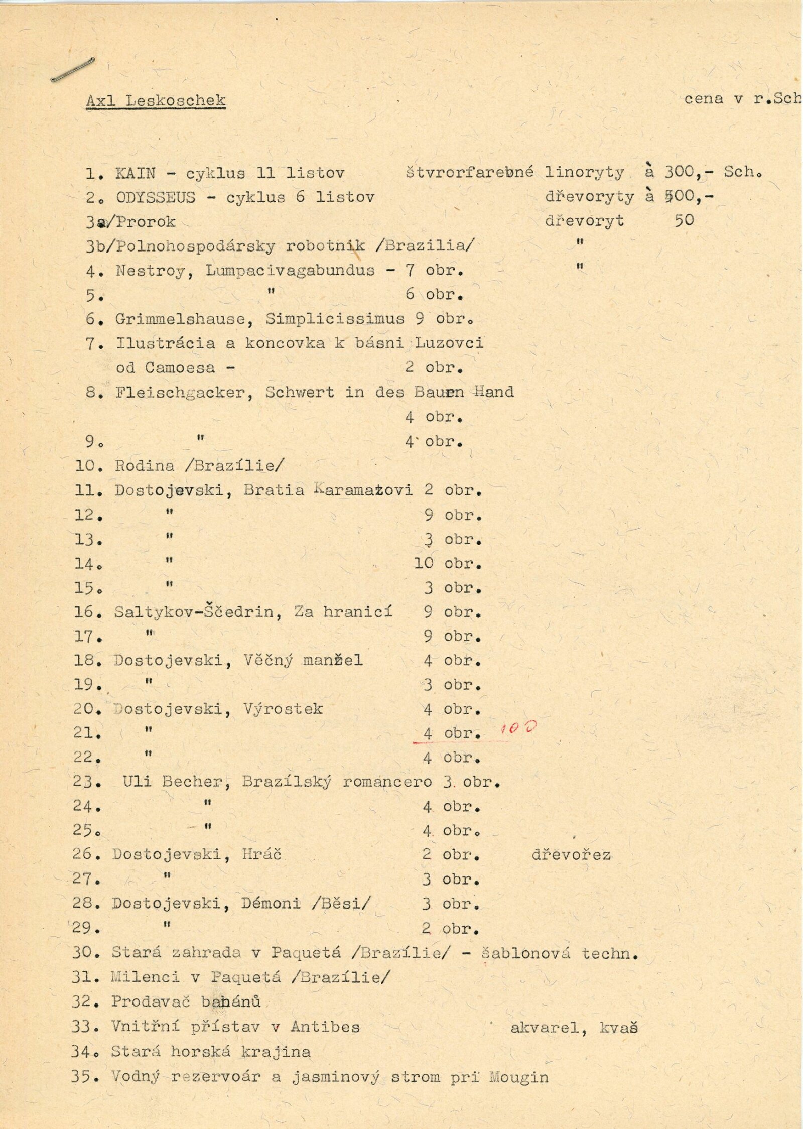 pozvánka, plakát, strojopis k výstavě (Milada Nováková), strojopis k vystaveným cyklům (Axl Leskoschek), seznam vystavených děl, korespondence (DU s Rakousko-českou společností), provozní korespondence, recenze v tisku