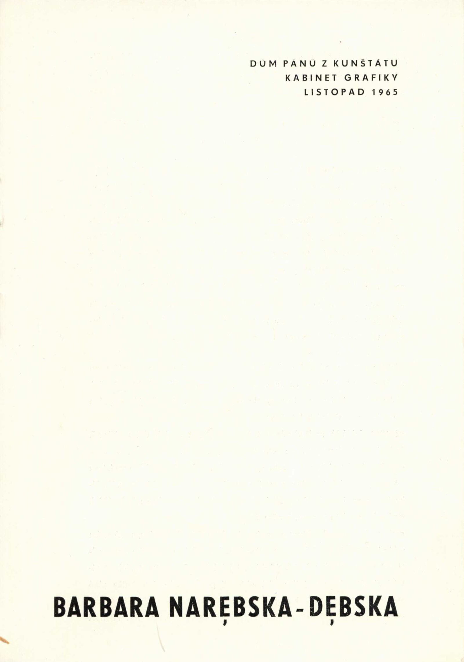 Barbara Narebska-Debska: Dům umění města Brna / Dům pánů z Kunštátu, 70. výstava Kabinetu grafiky, 5. 11. – 28. 11. 1965 / Text: Helena Kusáková-Knozová. – Brno: DUmB, 1965. – 8 s., obr., DPK 284. – MZK; MG; MMB