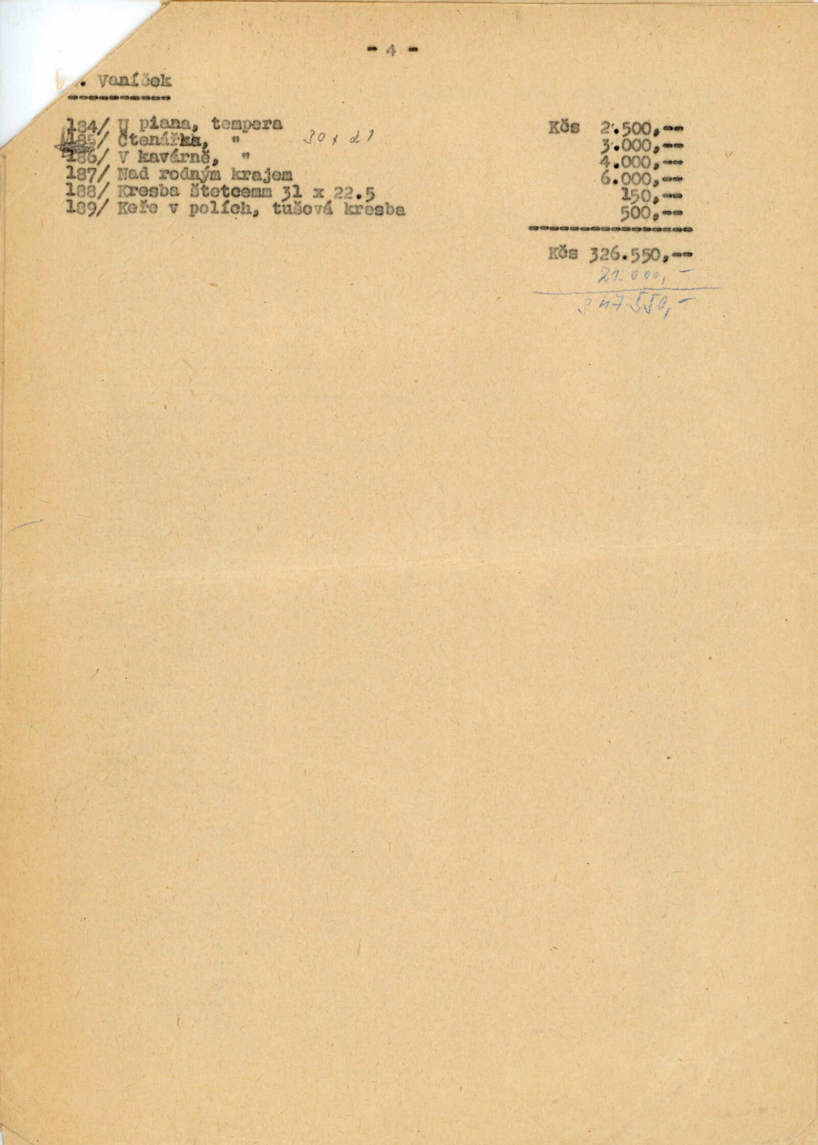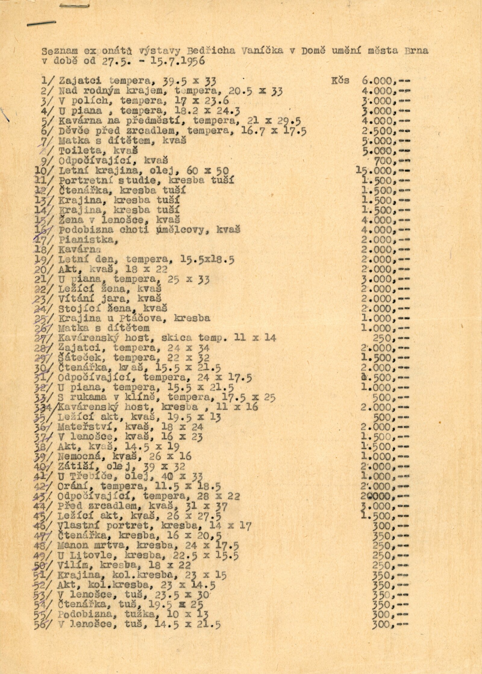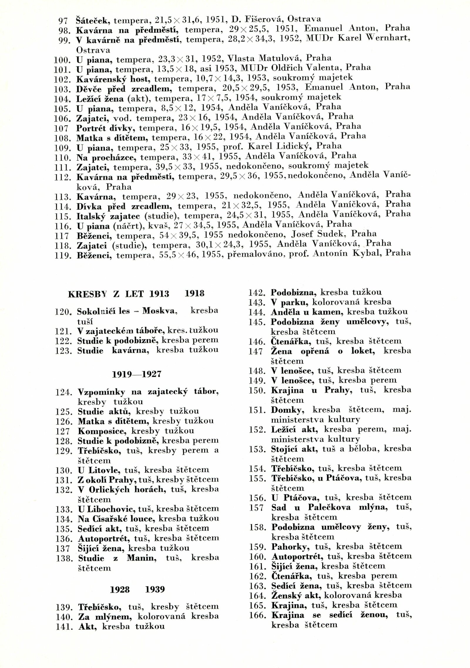 pozvánka (společná pro DU 253–256), katalog, seznam děl výstavy DU, seznamy majitelů, reversy, provozní korespondence, poděkování (Anděla Vaníčková), pozvánka k výstavě (Alšova síň UB)