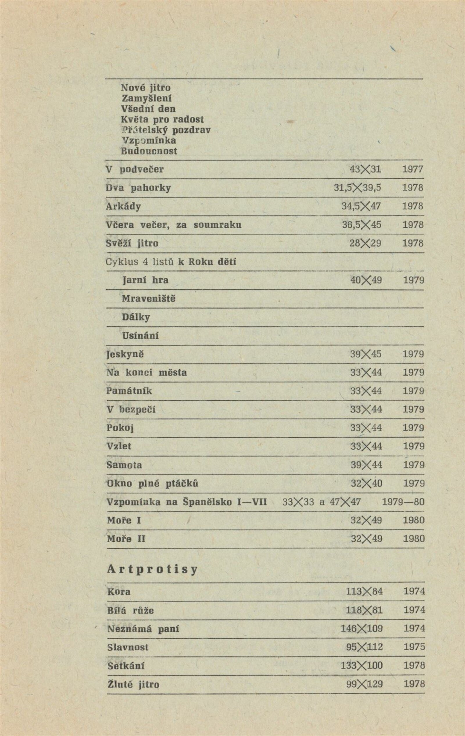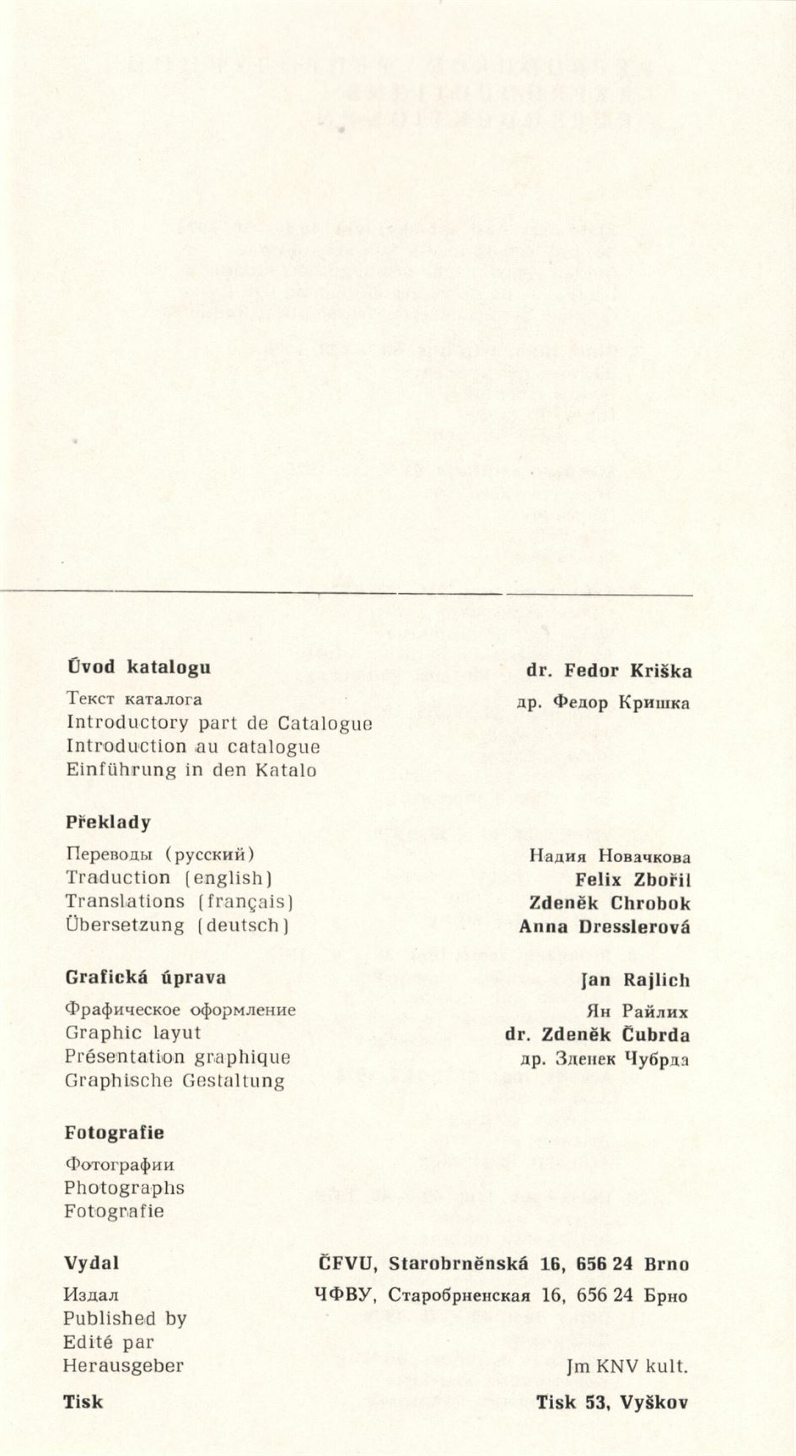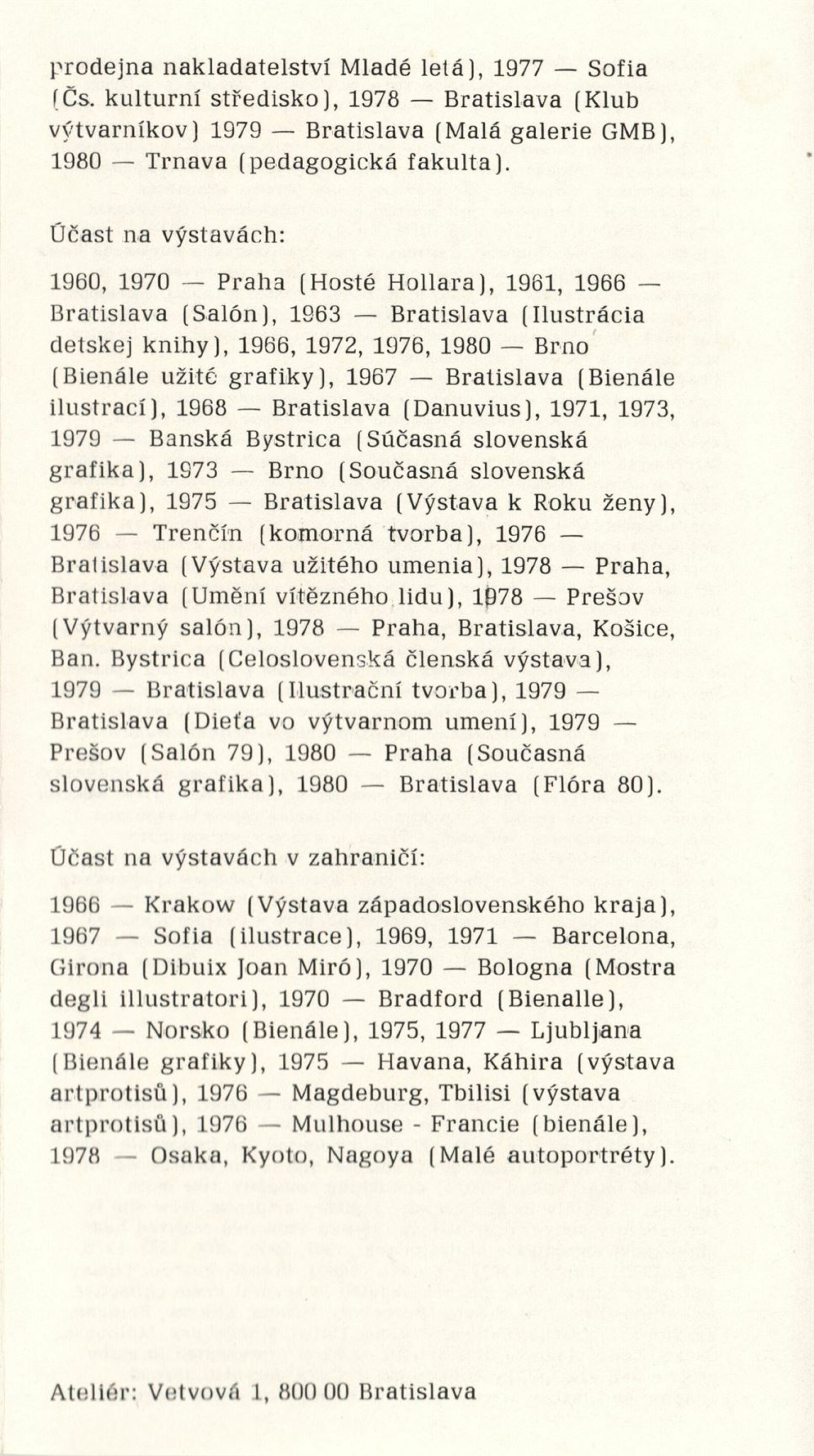 Blanka Votavová. Grafika, art protis: Dům umění, 100. výstava v Galerii Jaroslava Krále, 21. 10.– 23. 11. 1980. / Text: Fedor Kriška. – Brno: ČFVU, 1980. – 10 s., obr., seznam vystavených prací 2 s., portrét, životní data, výstavy, DU 717. – MMB
