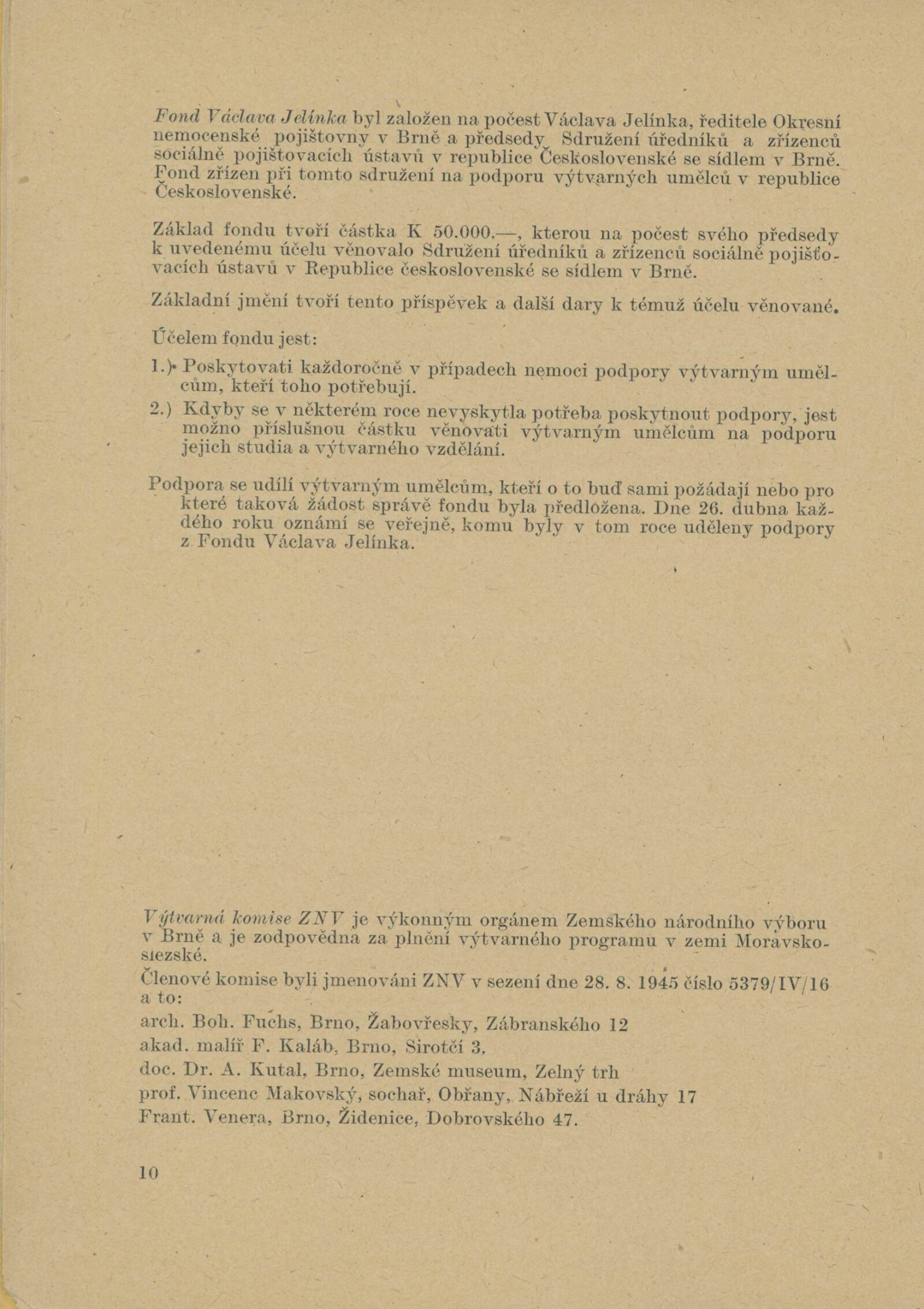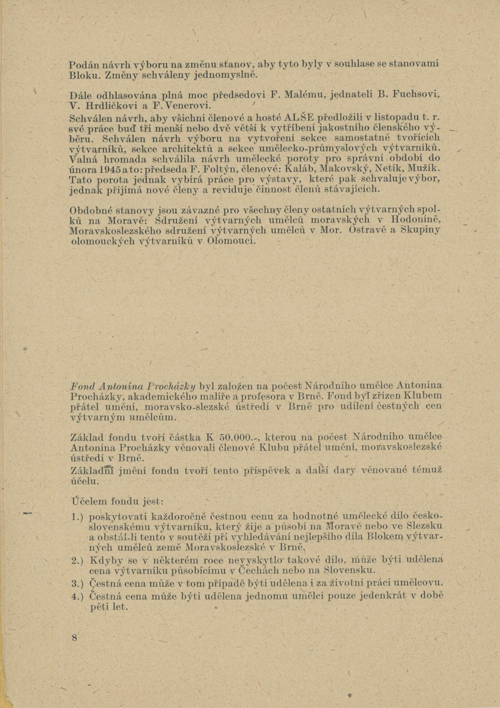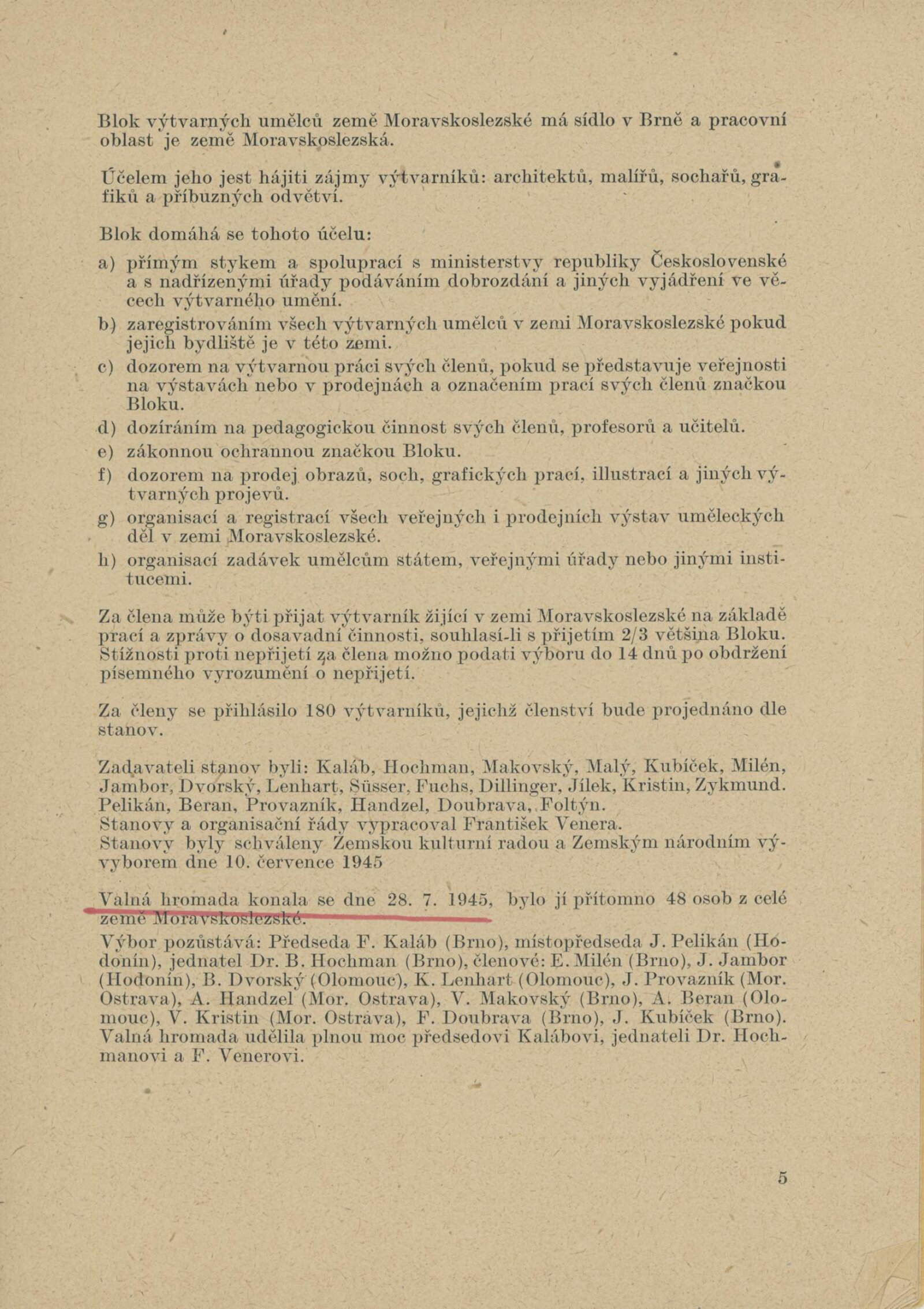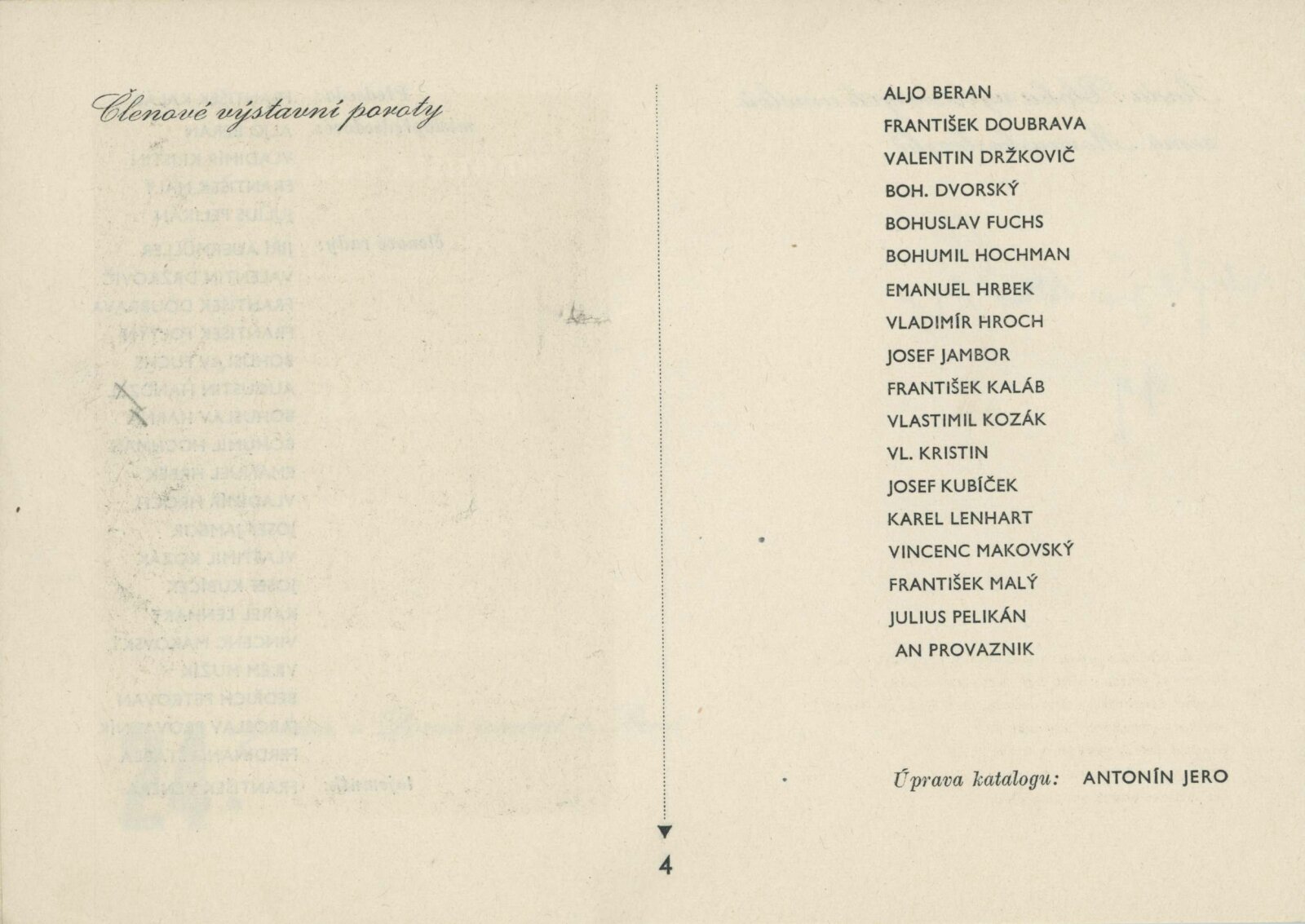 Josef Baják, Taťána Bakalová, Aljo Beran, Josef Bezděk, Jan Blažek, Helena Bochořáková, Alois Bokůvka, O. Bolom-Kotari, Jan Brukner, Richard Brun, Rudolf Doležal, František Doubrava, Valentin Držkovič, Bohumír Dvorský, Jaroslav Dvořáček, Ladislav Dydek, Marie Ehlerová, František Fiala, Vlastimil Fiala, Karel Formánek, Jan T. Fischer, Miroslav Fridrich, Olga Fridrichová Steinzová, Bohuslav Fuchs, Rudolf Gajdoš, František L. Gahura, Luděk Havelka, Robert Hliněnský, Karel Hofman, Bohumil Hochman, Karel Homola, František Hoplíček, František Hořava, Vojtěch Hořínek, Vladimír Hroch, Bohumil Jahoda, Josef Jambor, Jan Janča, Jiří Jaška, Jan Jílek, Karel Jílek, Eugenie Jurečková, František Kaláb, Josef Kamenický, Josef Kousal, Jaroslav Král, Jánuš Kubíček, Josef Kubíček, František Kocourek, Josef Konečný, Eduard S. Kostrhon, Adolf V. Kovanič, Vlastimil Kozák, Stanislav Krátký, Eduard Krejčí, Vlastimil Kristin, Alois Kučera, Rudolf Kučera, Božena Kuhnová, Bohdan Lacina, Jindřich Lenhart, Karel Lenhart, Zdeněk Máčel, Vincenc Makovský, František Malý, Bohumír Matal, Jiří Marek, Stanislav Menšík, Augustin Mervart, Eduard Milén, Vilém Mužík, Jan M. Najmr, Vladimír Navrátil, Miroslav Netík, Jaroslav Pacák, Julius Pelikán, Bedřich Petrovan, František Povolný, Antonín Procházka, Linka Procházková, Jan Provazník, František Rek, Bedřich Rozehnal, Marie Rodingerová, Marta Rožánková-Drábková, Helena Salichová, Alois Schneiderka, Jan V. Sládek, Jan Smital, Miloslav Smutný, Svatopluk Souček, Jaroslav V. Staněk, František Süsser, František Šenk, Evžen Škarda, Čestmír Šlapeta, Lubomír Šlapeta, František Šnajdr, Ára Šolc, Josef Šrámek, Ferda Štábla, Josef Šťastný, František Švéda, Karel Těšík, Jan Tříska, Vladislav Vaculka, Bohumil Večeřa, Zdeňka Vorlová, Josef Vrzal, Vilém Wünsche, Josef Zamazal, Oldřich Zezula, Milan Zezula, Václav Zykmund