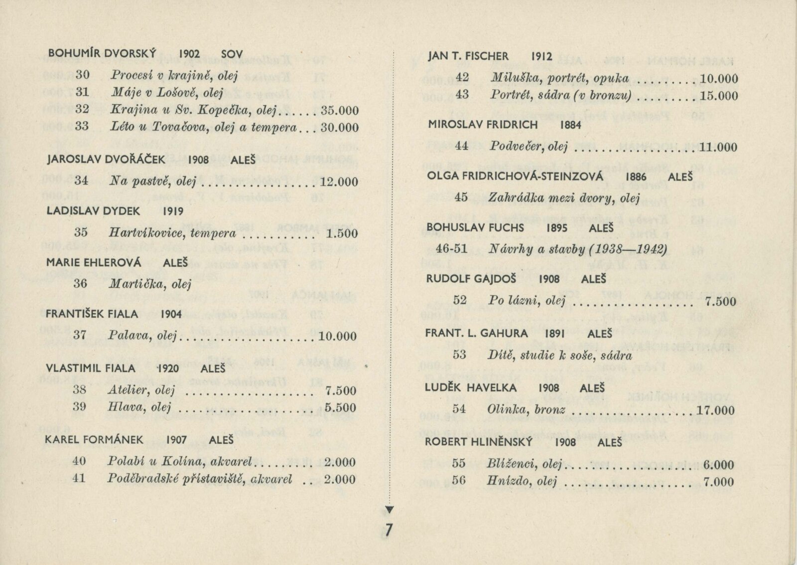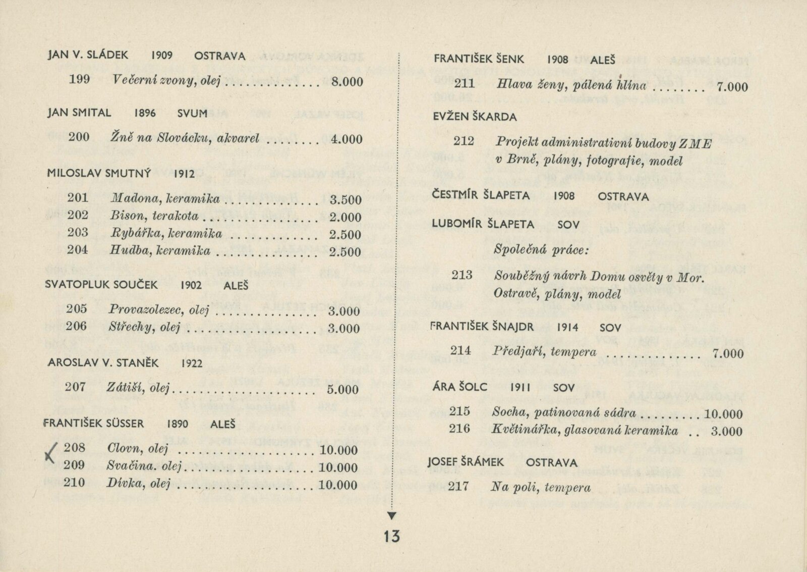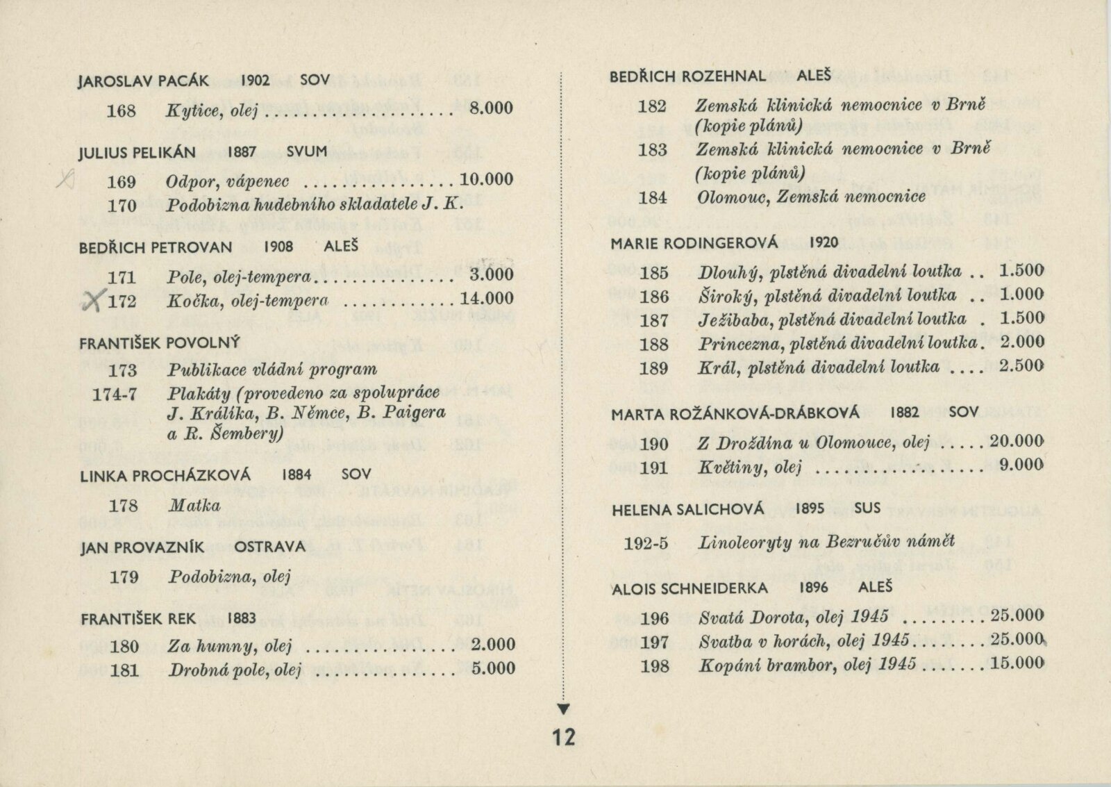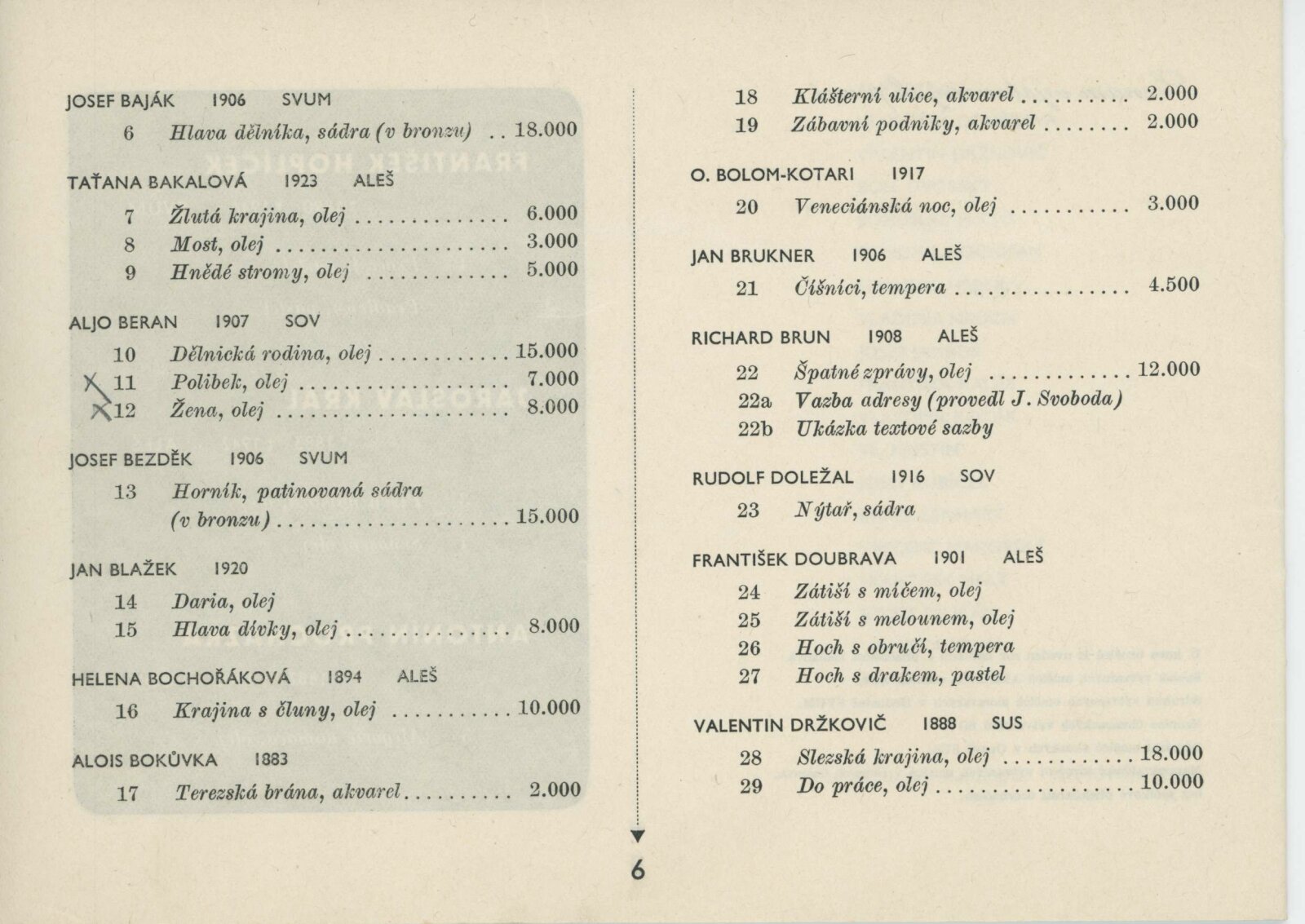 Blok 1946. SVU Aleš Brno, SVUM Hodonín, SOV Olomouc, SUS Opava, MSVU Ostrava. XXIV. výstava: Dům umění v Brně, od 22. 9. 1946 / Brno: Blok výtvarných umělců země Moravskoslezské, 1946. – 14 s., seznam vystavených děl s cenou, DU 24. – Kubíček 7523; MZK; MG; MMB
