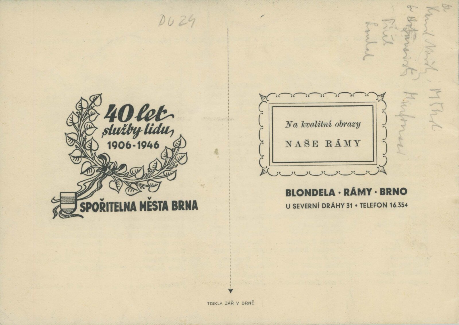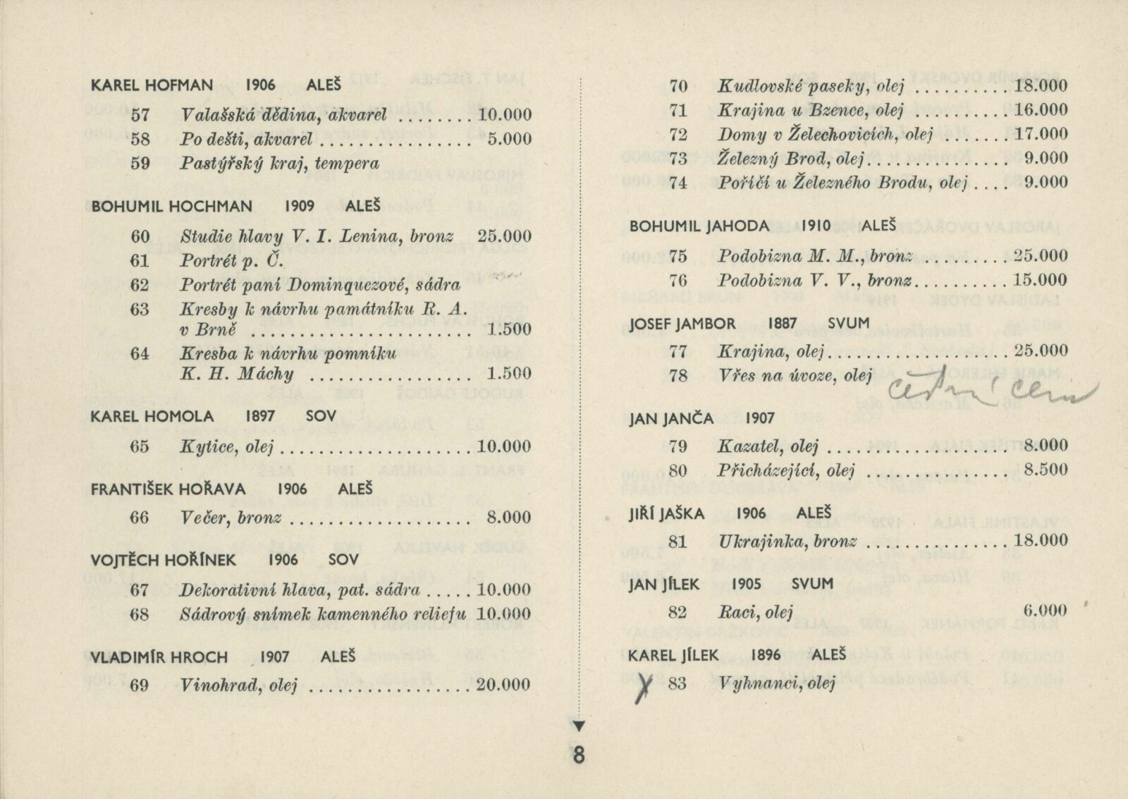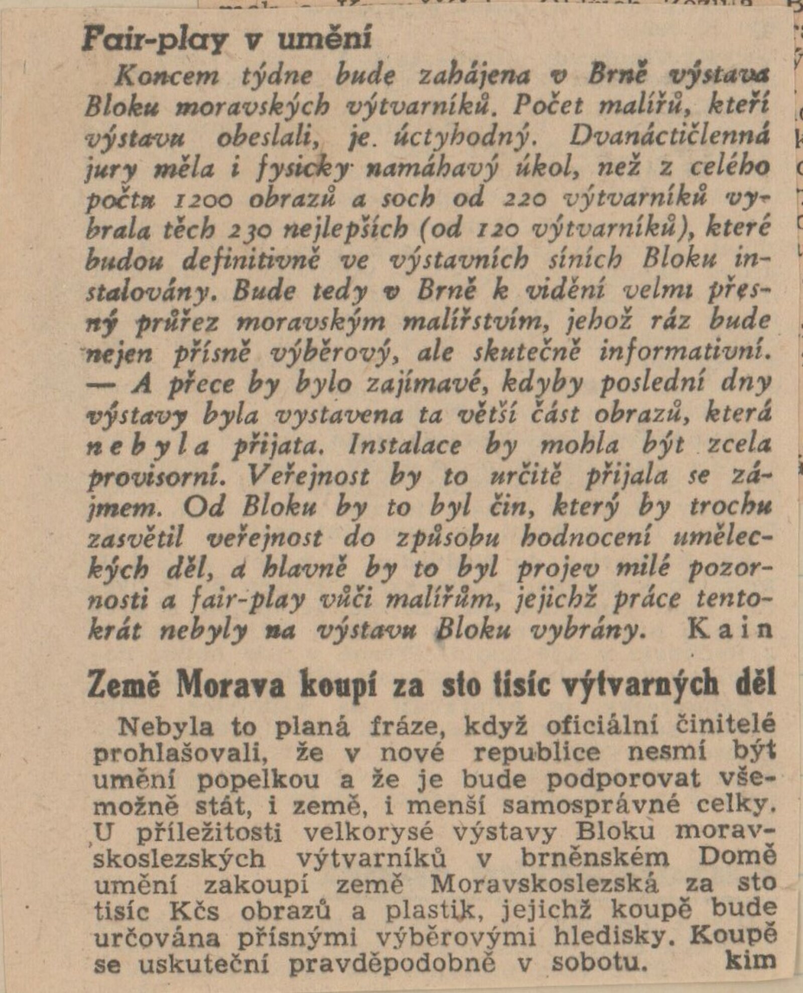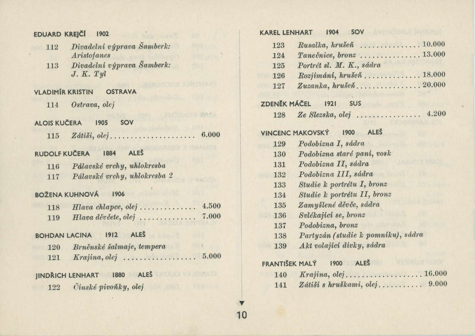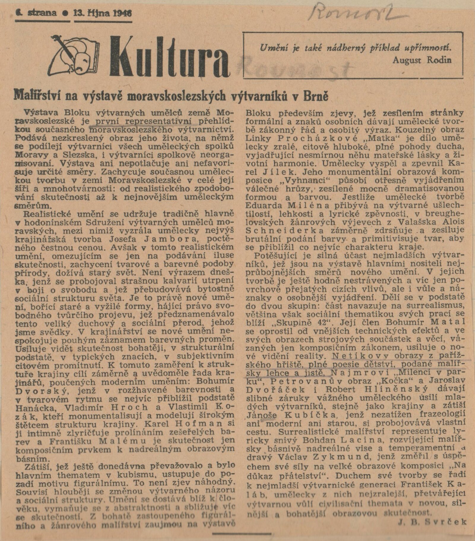 Blok 1946. SVU Aleš Brno, SVUM Hodonín, SOV Olomouc, SUS Opava, MSVU Ostrava. XXIV. výstava: Dům umění v Brně, od 22. 9. 1946 / Brno: Blok výtvarných umělců země Moravskoslezské, 1946. – 14 s., seznam vystavených děl s cenou, DU 24. – Kubíček 7523; MZK; MG; MMB