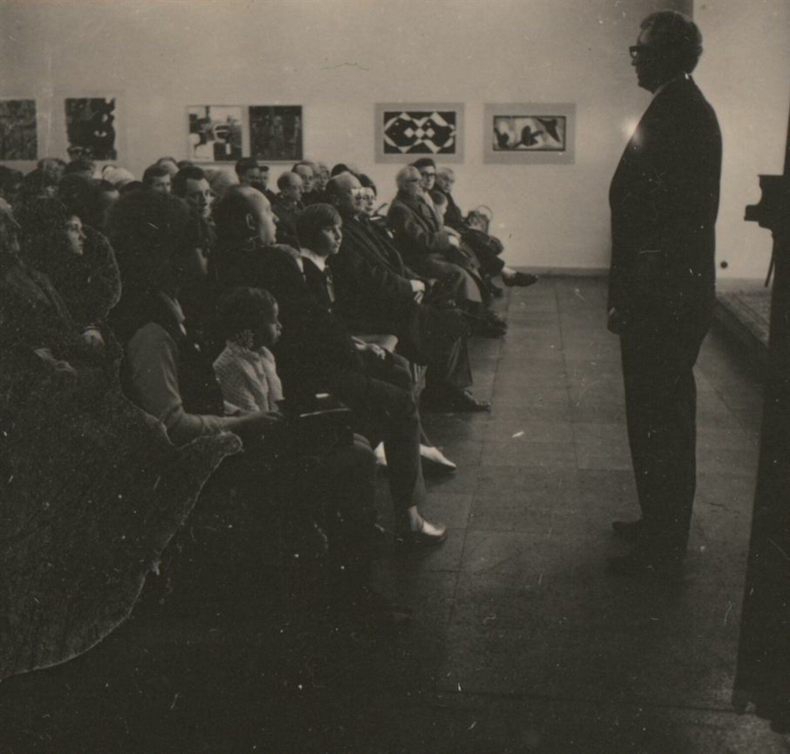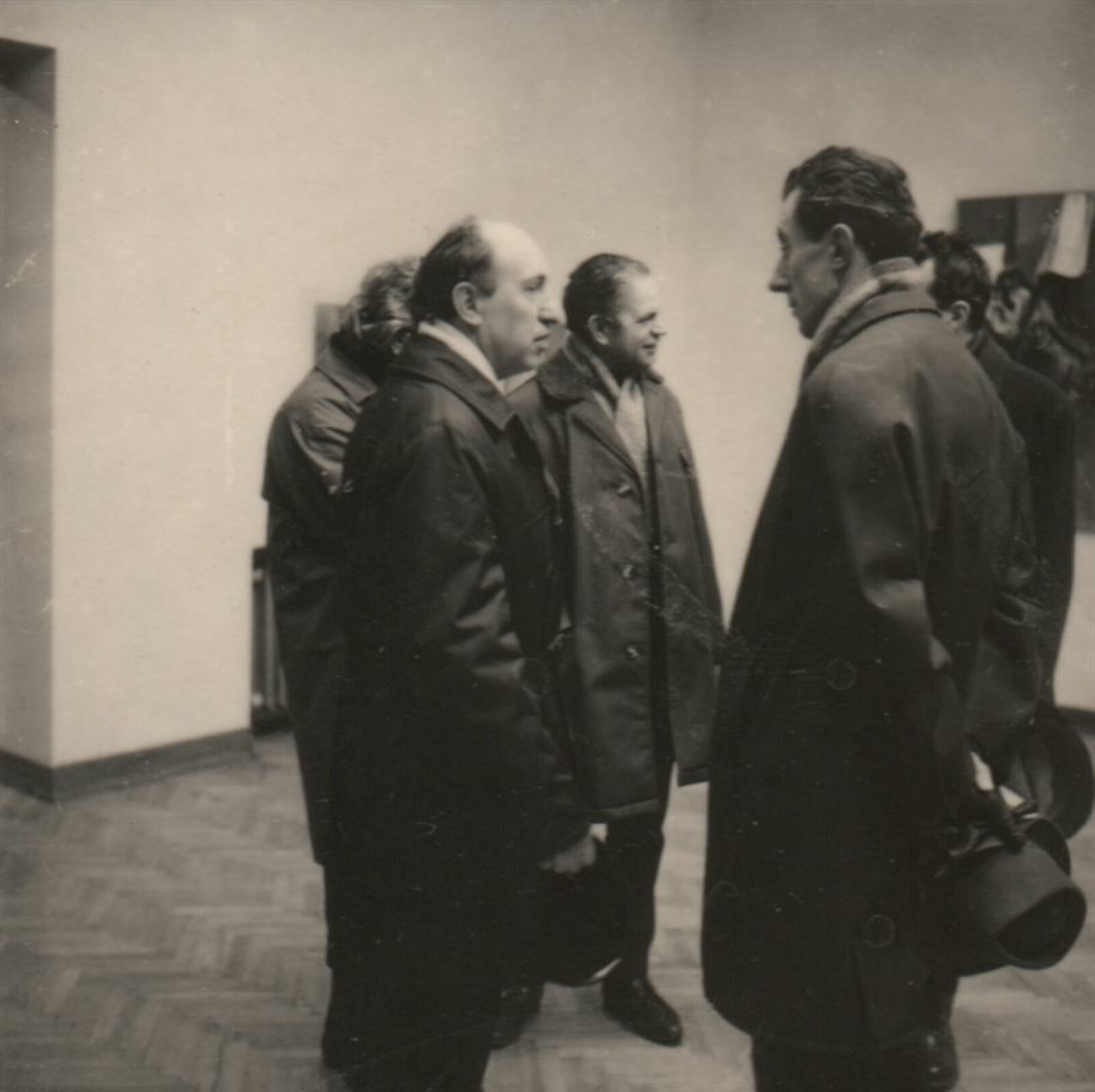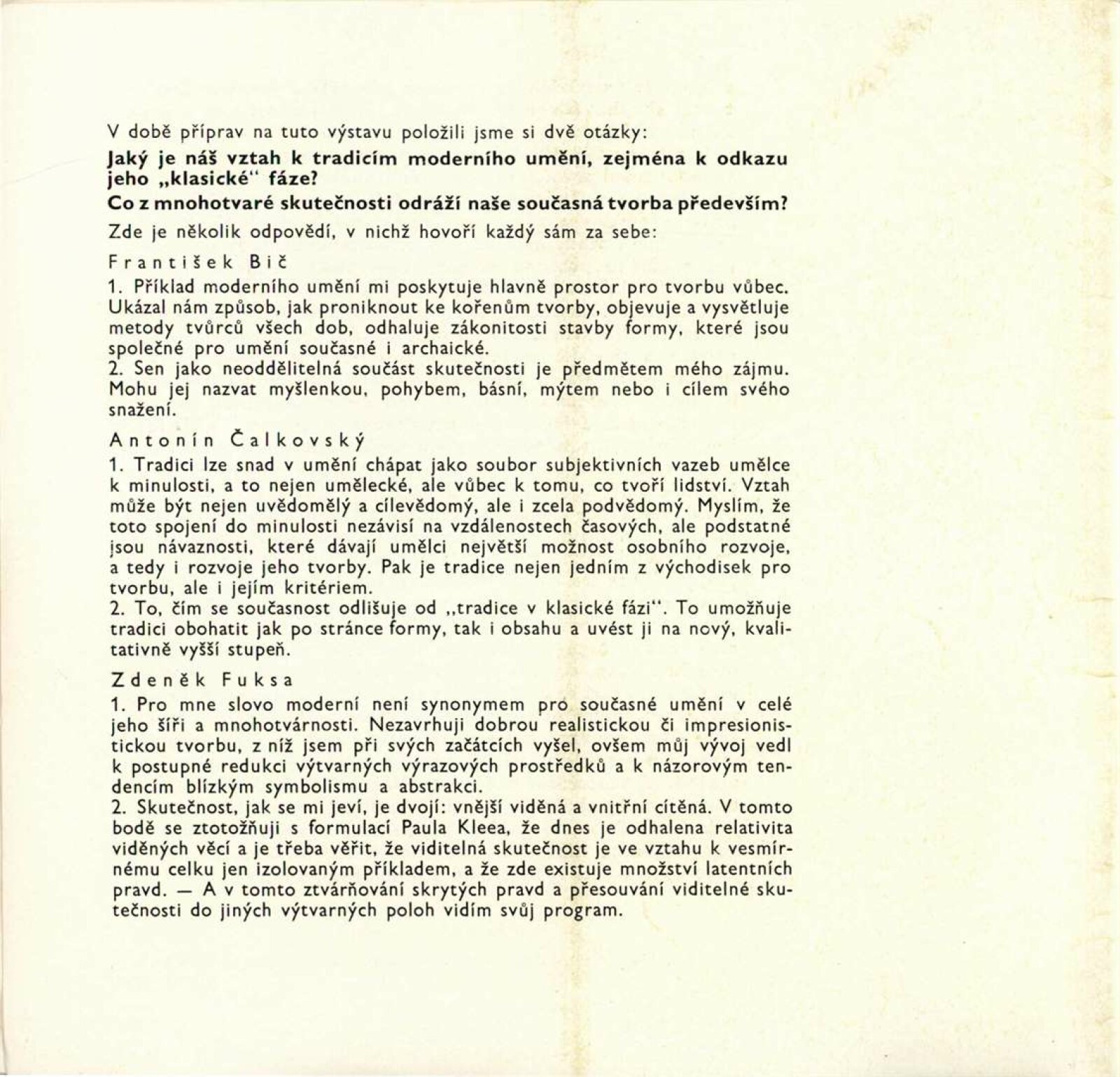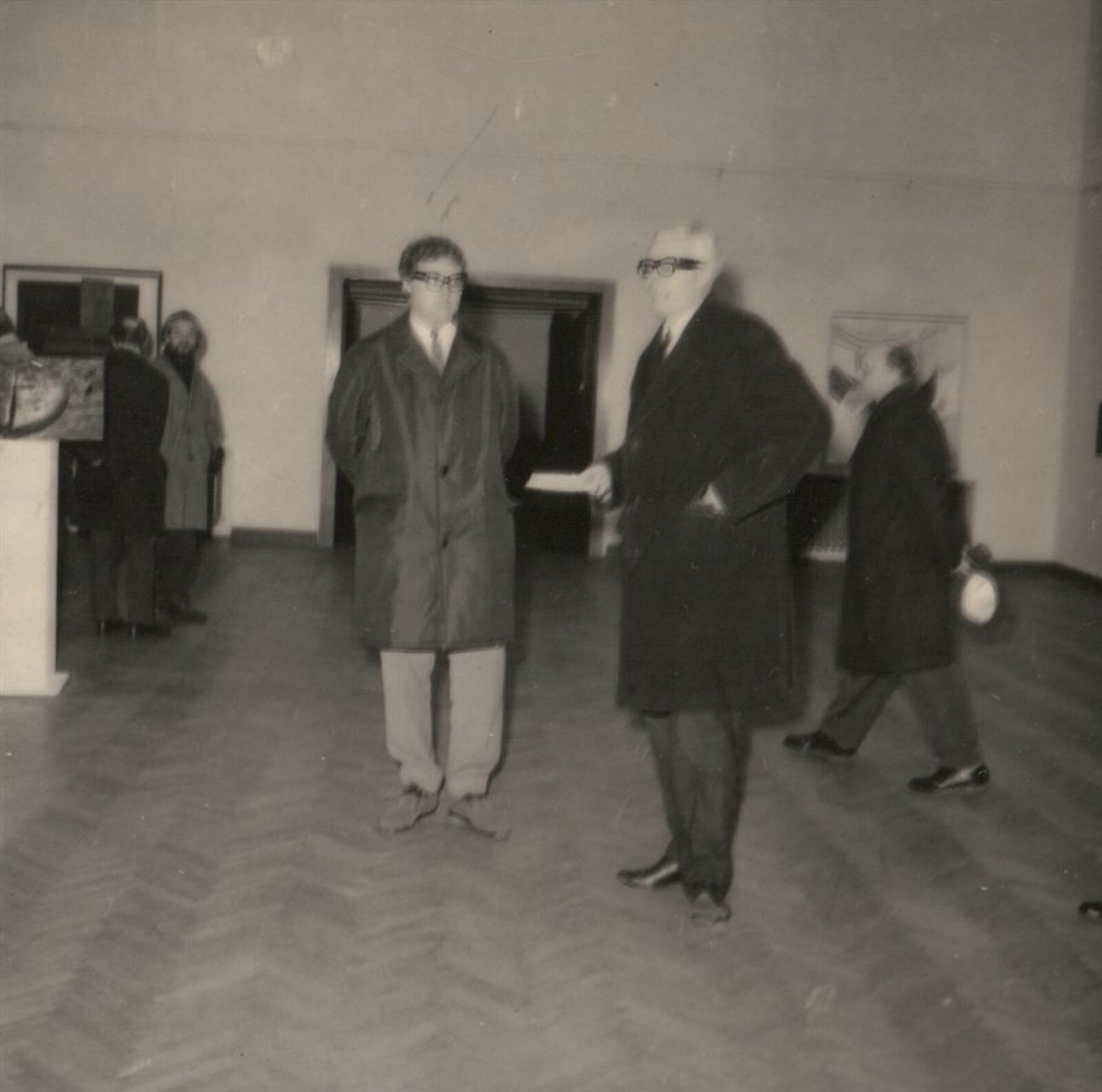 pozvánka na výstavu a na matiné „Mezi obrazy“, katalog, fotografie vernisáže od Karla Kulatého (archiv Igora Zhoře), žádost o pořádání výstavy (od Igora Zhoře), prezenční listina tiskové konference (31. 1. 1969), provozní korespondence, recenze v tisku