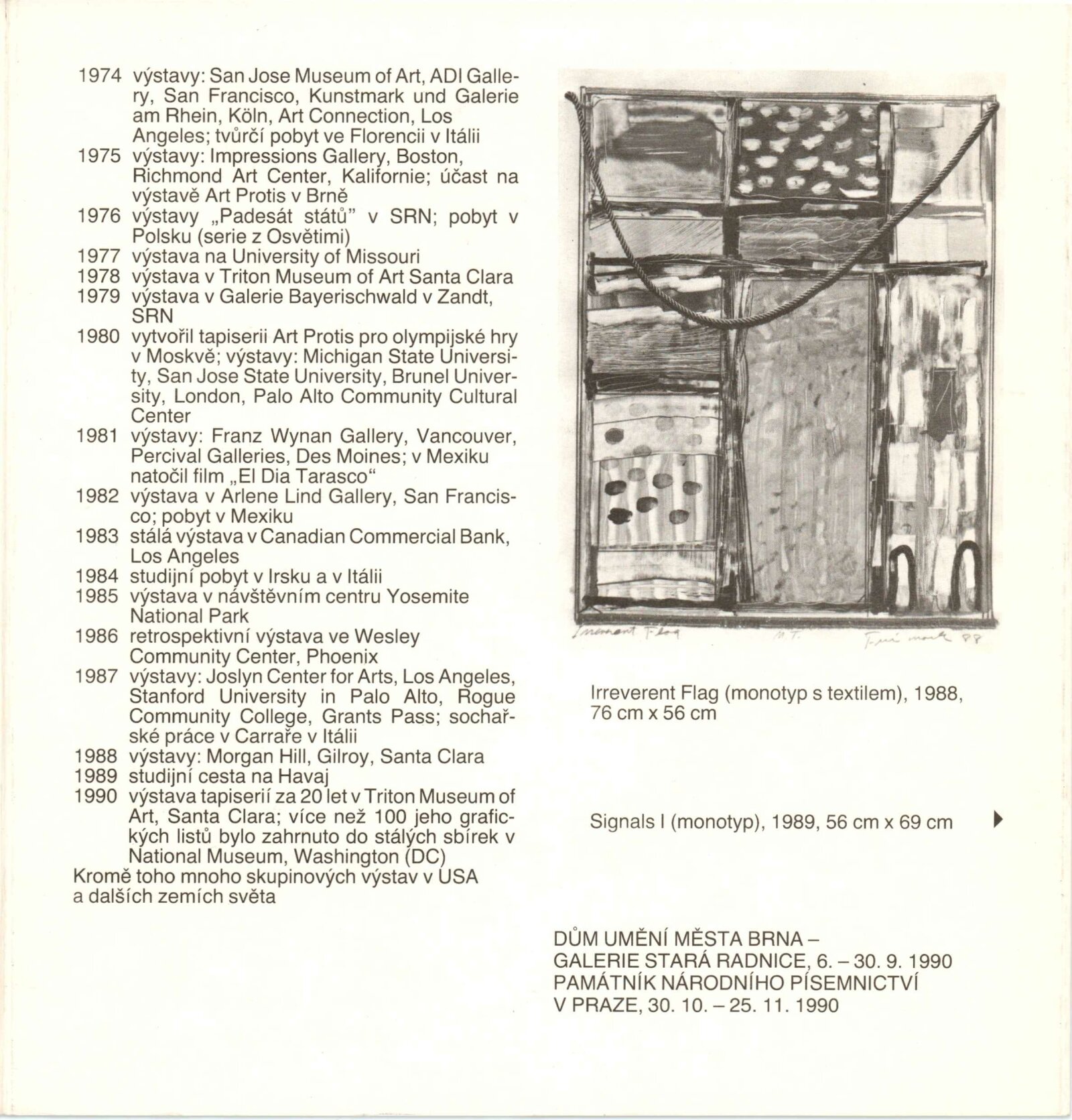 Bob Freimark. Monotypy: Galerie Stará radnice, 6. 9. – 30. 9. 1990 / Text: anonymní. – Brno: DUmB, 1990. – skládačka [6 s., obr.], portrét, životní data, GSR 77. – MZK; MG