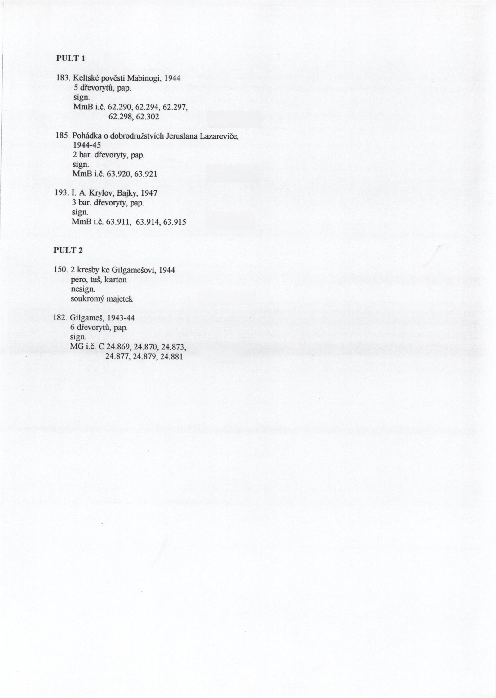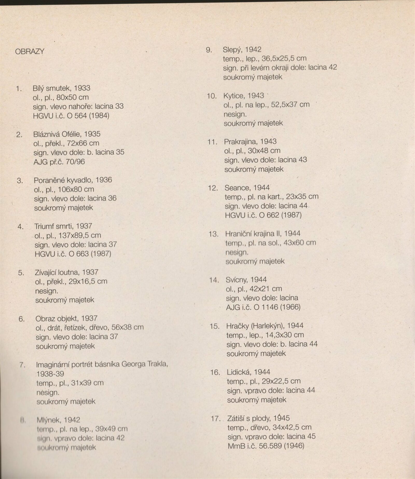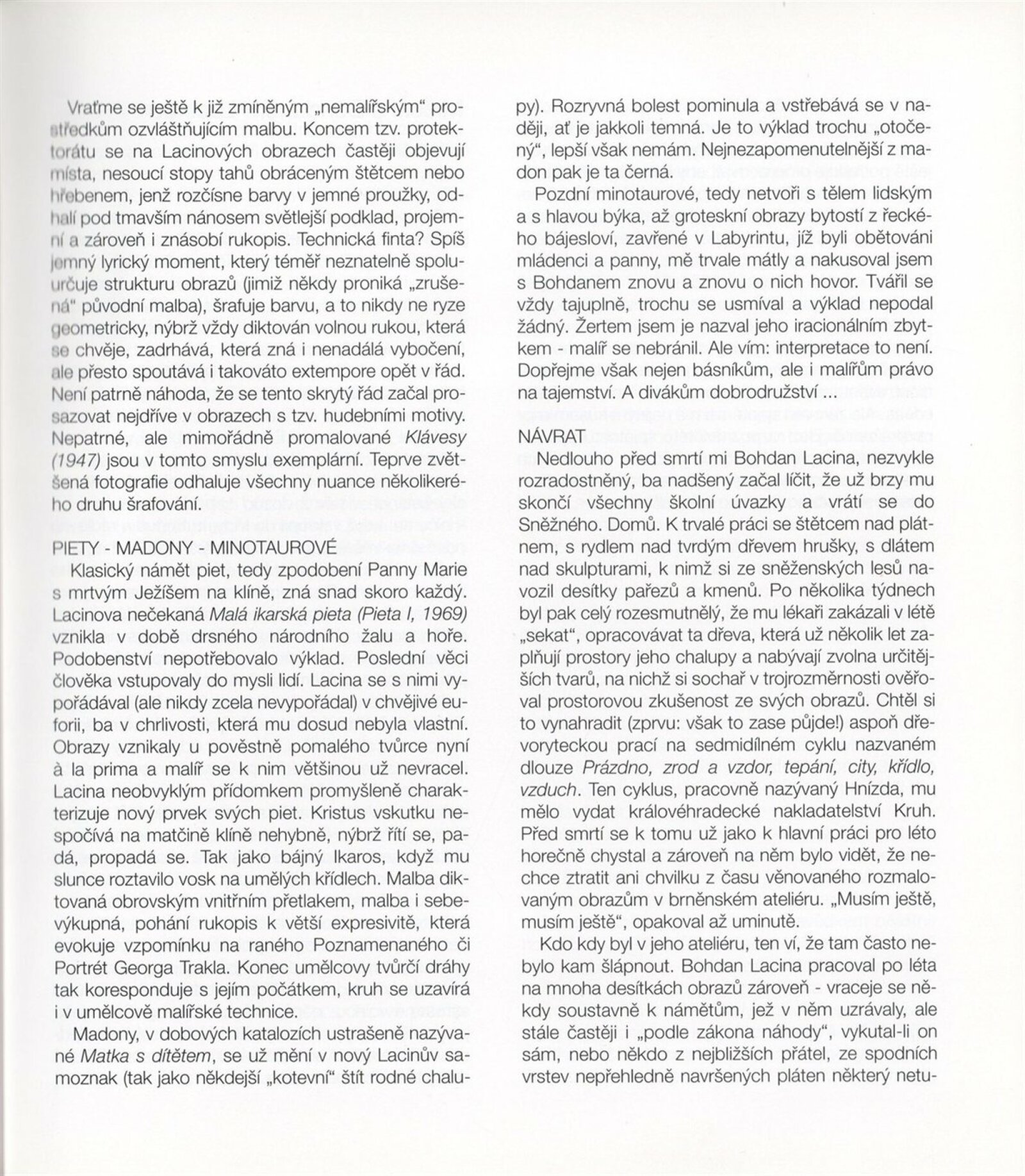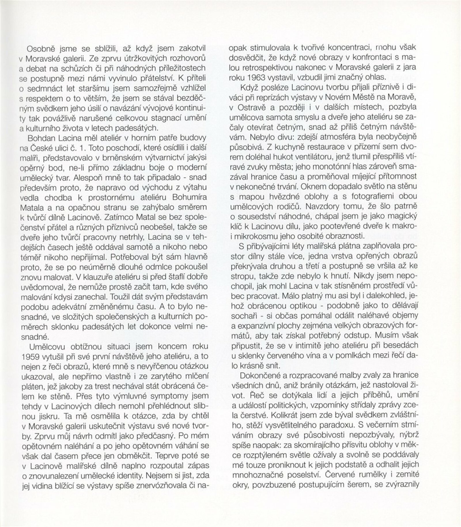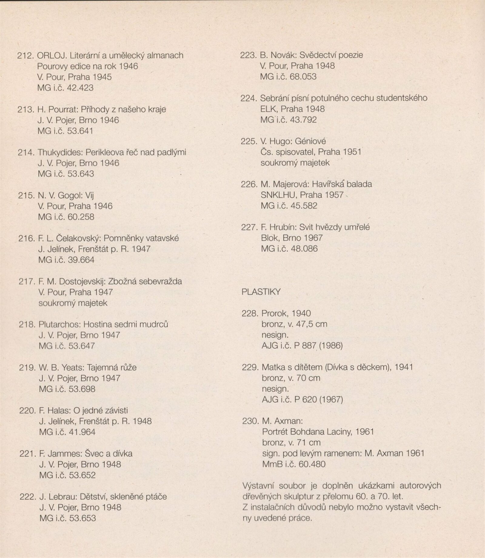 Bohdan Lacina (1912–1971): Dům umění města Brna, 24. 6. – 3. 8. 1997 / Text: Ludvík Kundera, Jiří Hlušička, Jan Lacina. – Brno: DUmB, 1997. – [44] s., obr., seznam vystavených prací [16] s., životní data, výstavy, zastoupení ve sbírkách / Bohdan Lacina (1912–1971): Dům umění města Brna, 24 .6. – 3. 8. 1997 / Text: Kateřina Svobodová. – Brno: Dům umění města Brna, 1997. – [4 s.], DU 1055. – MG