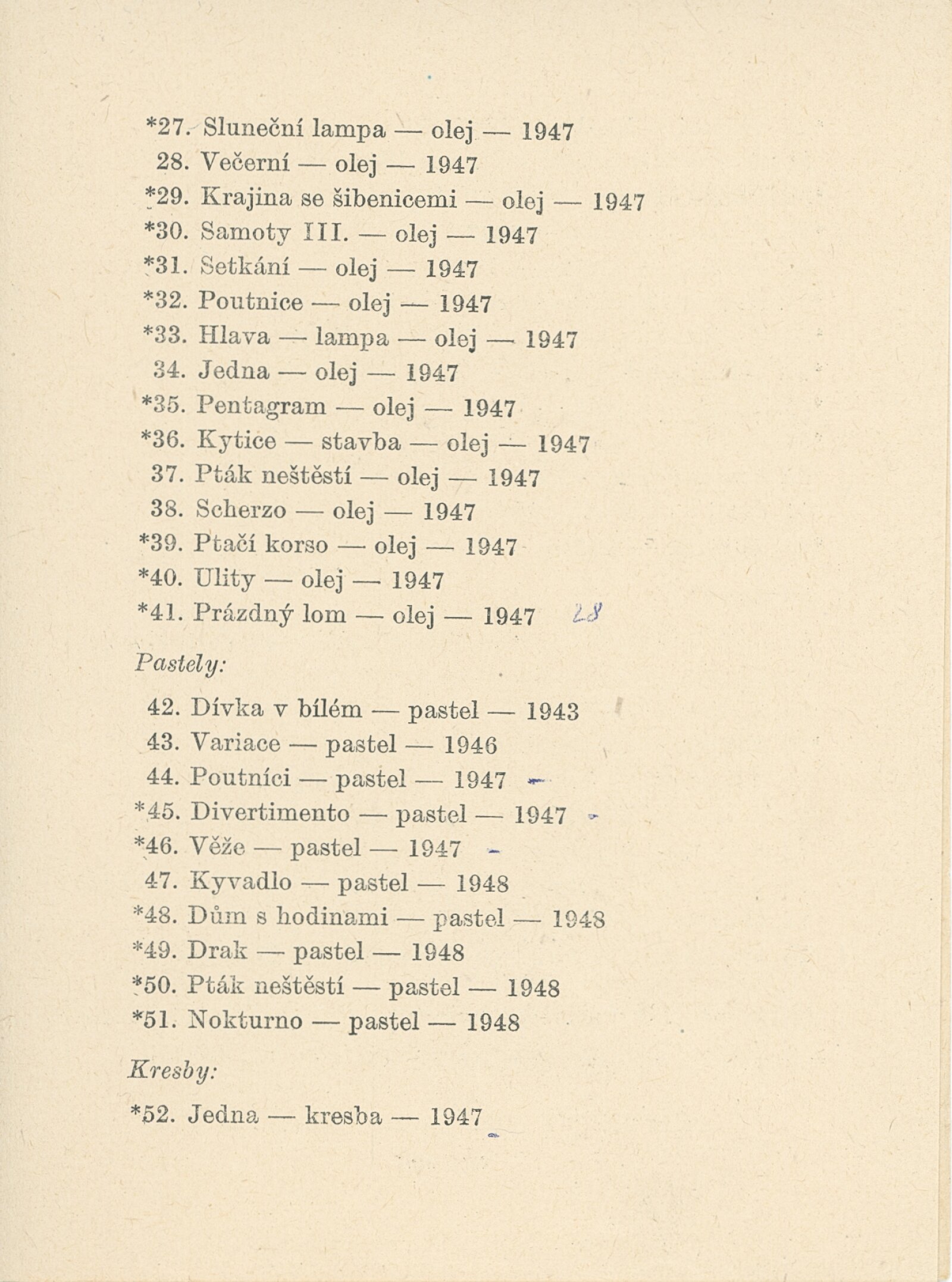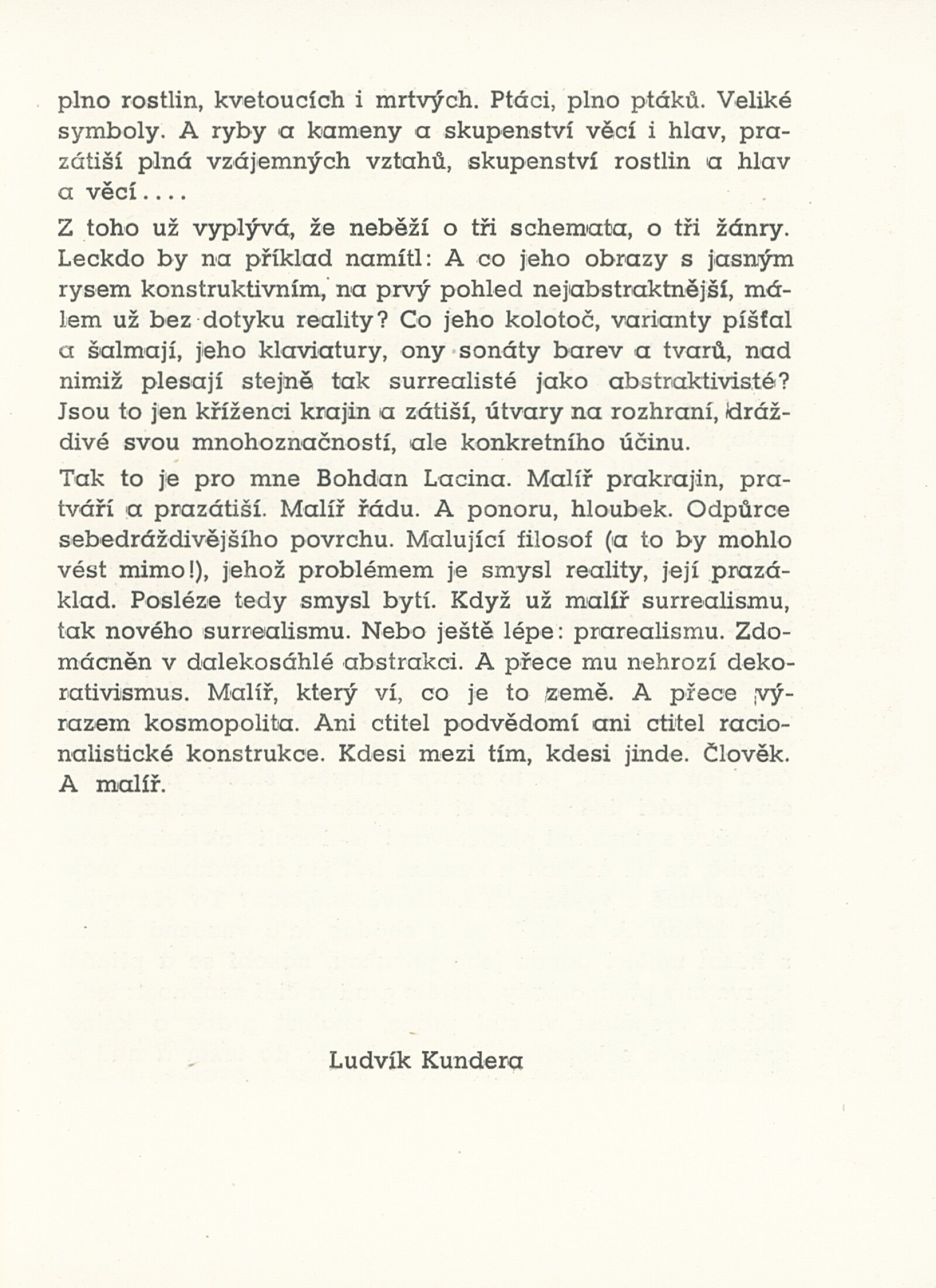 Bohdan Lacina: Dům umění, 16. 3. – 4. 4. 1948 / Převzatý katalog. Bohdan Lacina. 269. výstava, 3. 2. – 22. 2. 1948 / Texty: František Halas, Zdeněk Lorenc, Ludvík Kundera. – Praha, Topičův salon, 1948. – 44 s., portrét, seznam výstav, seznam knižní grafiky, DU 70. – MMB