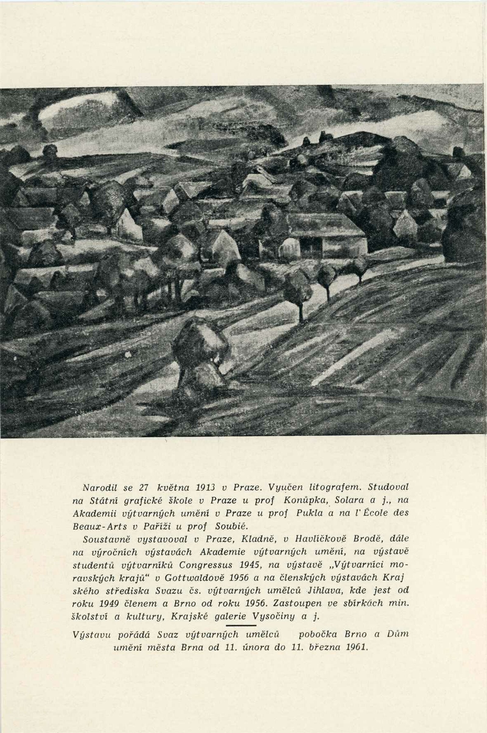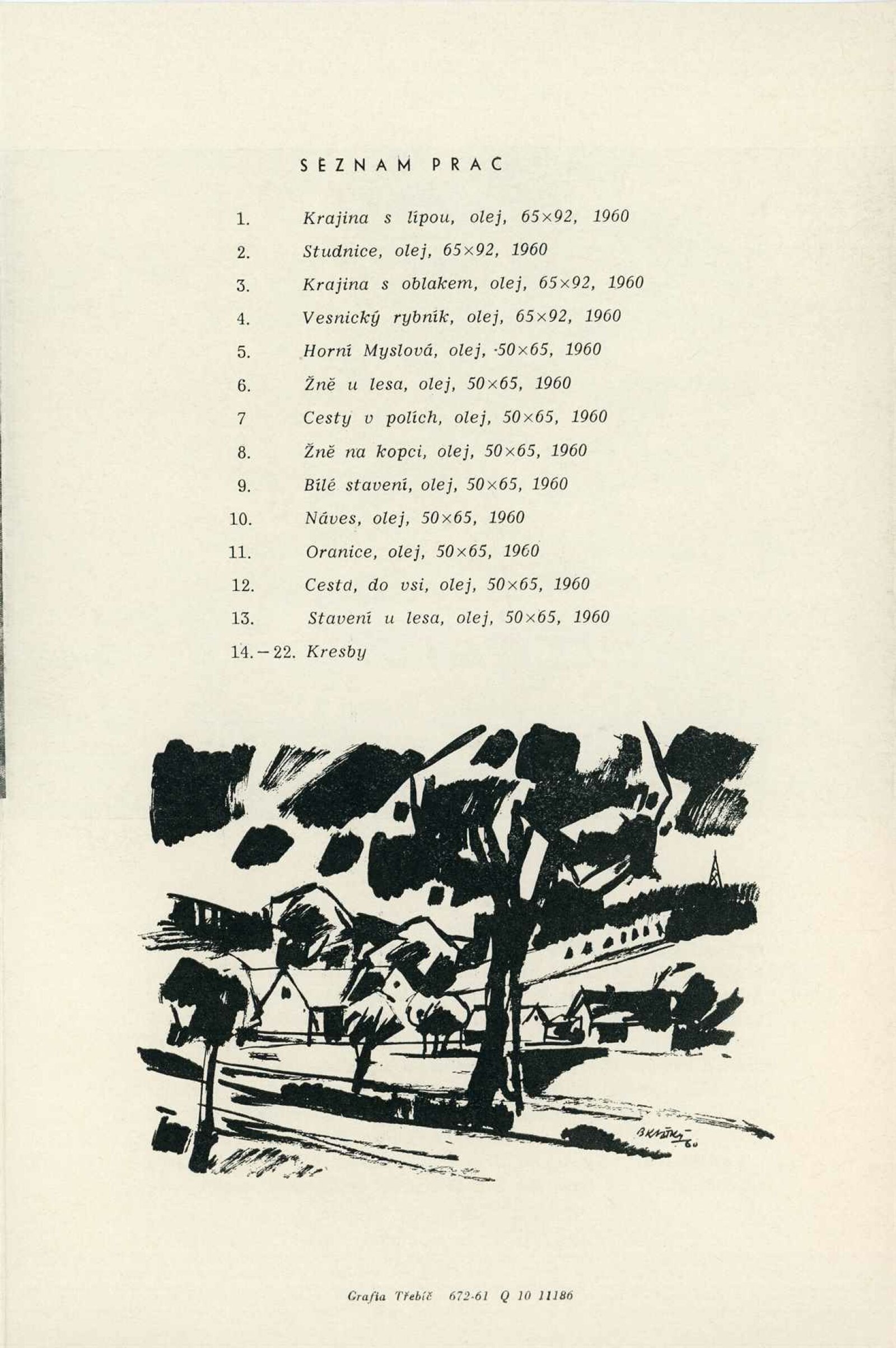 Bohumil Krátký. Krajiny Vysočiny. Obrazy a kresby: Dům umění města Brna, Malá galerie, 11. 2. – 18. 3. 1961 / Text: Helena Kusáková. – Brno: DUmB, 1961. – skládačka, 6 s., obr., DU 392. – MG; MMB