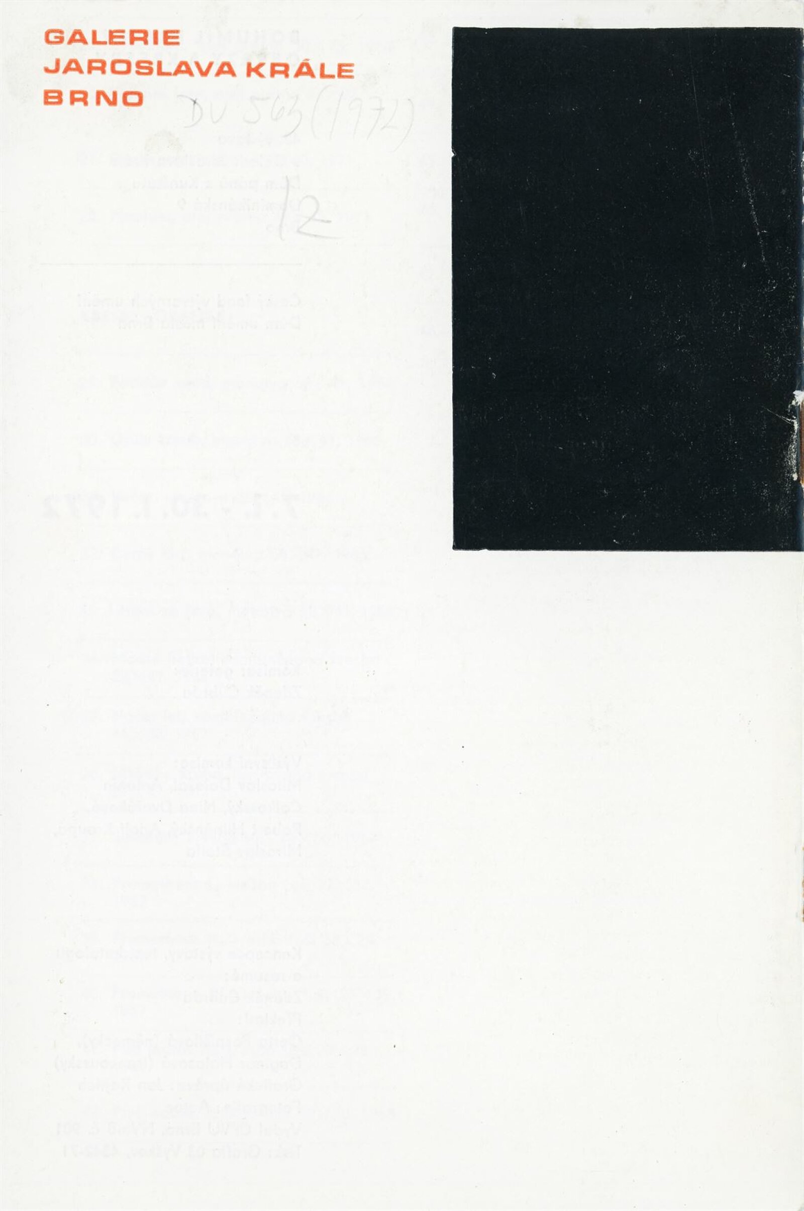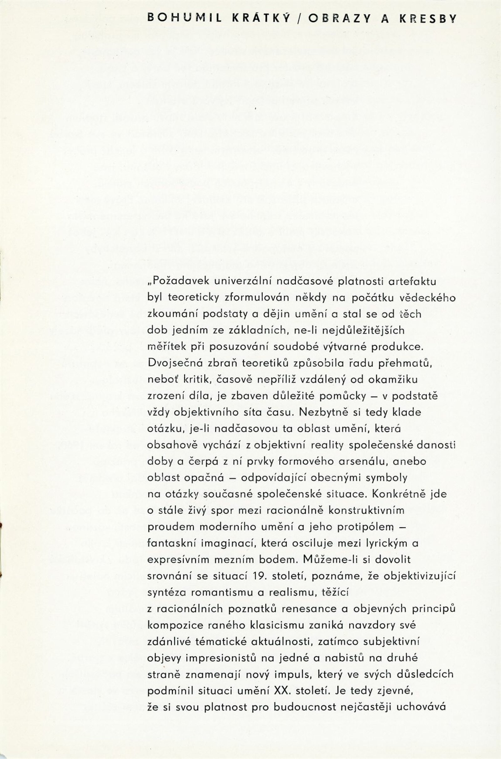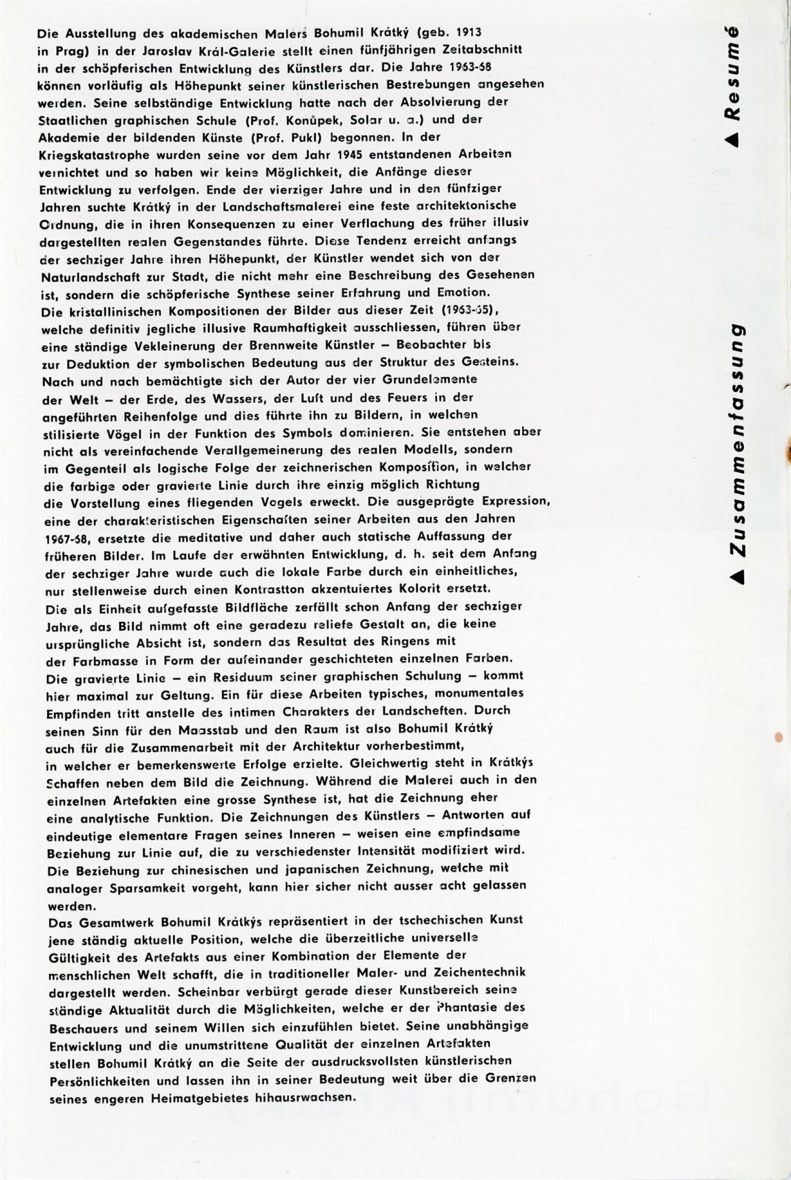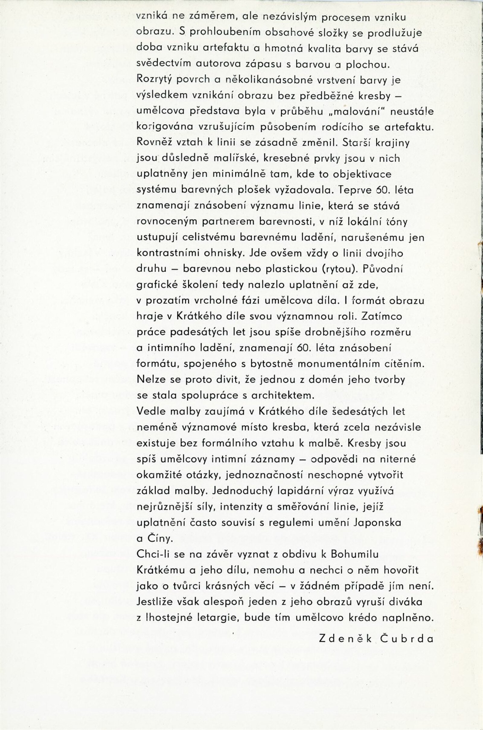 Bohumil Krátký. Obrazy a kresby: Dům umění města Brna, 42. výstava v Galerii Jaroslava Krále a Dům umění města Brna / Dům pánů z Kunštátu, 7. 1. – 30. 1. 1972 / Text: Zdeněk Čubrda. – Brno: ČFVU, 1972. – 12 s., obr., portrét, životní data, výstavy, DU 563. – MZK; MG; MMB