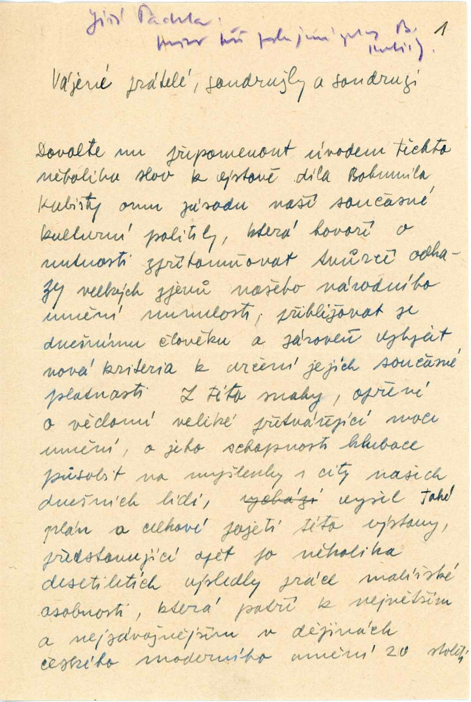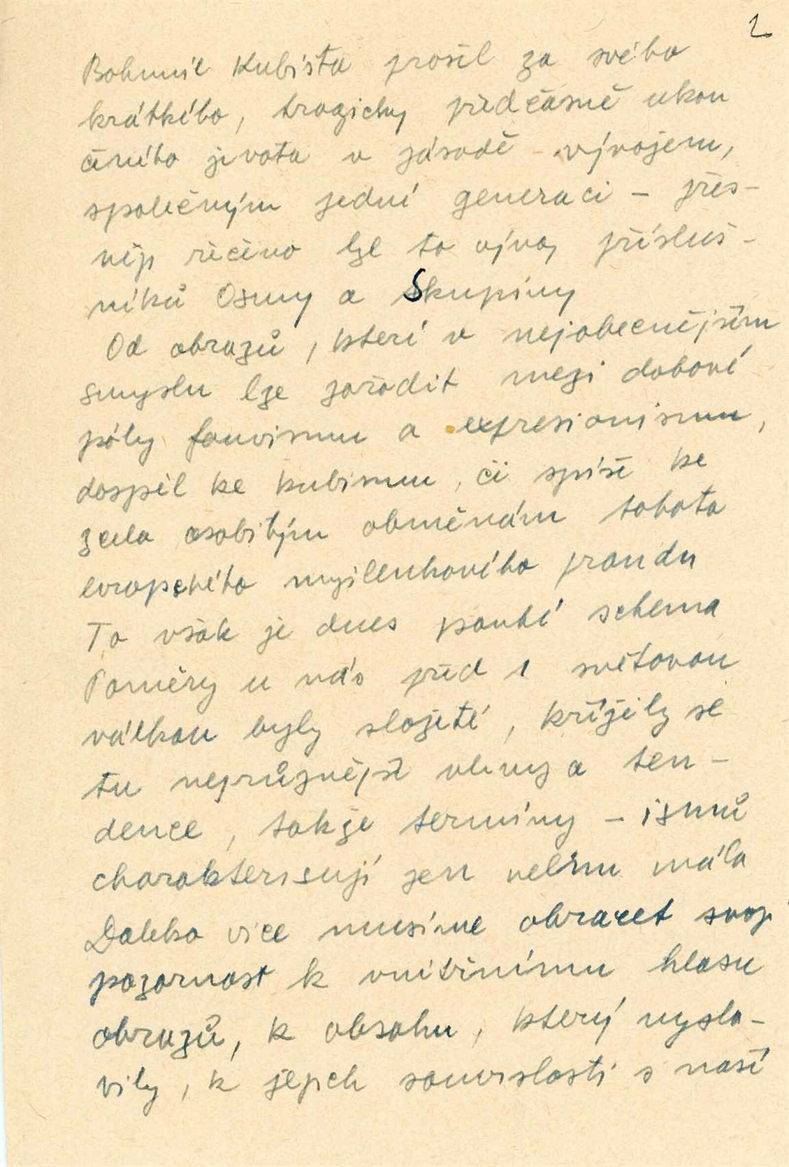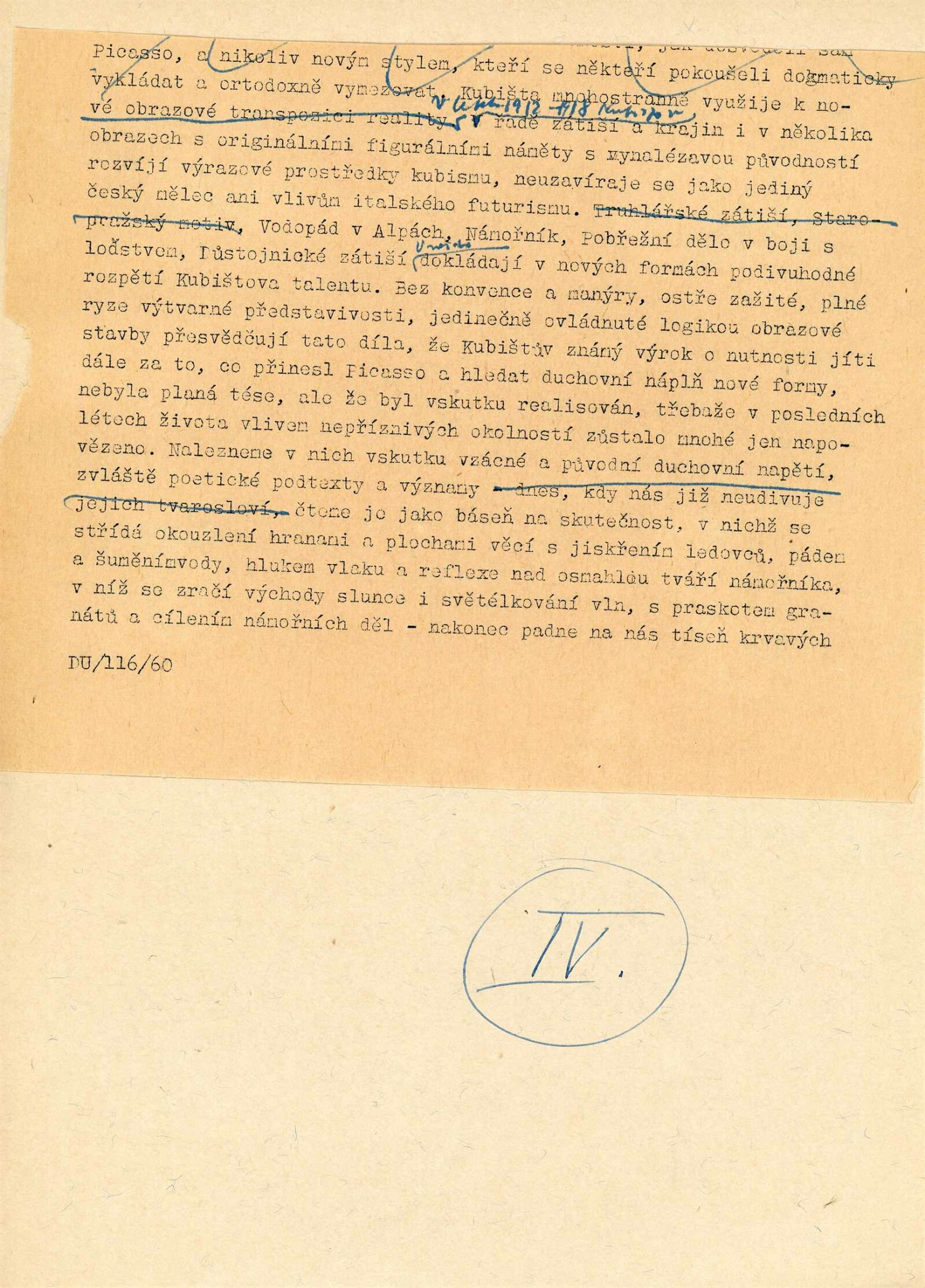 pozvánka, text (předmluva, rukopis projevu při zahájení), informace o výstavě pro OŠK MěNV, korespondence (o zápůjčkách, dopis Jana Zrzavého, Olgy Scheinpflugové, Jarmily Čapkové), reverzy, seznam obrazů z Mánesa s adresami majitelů děl, recenze v tisku